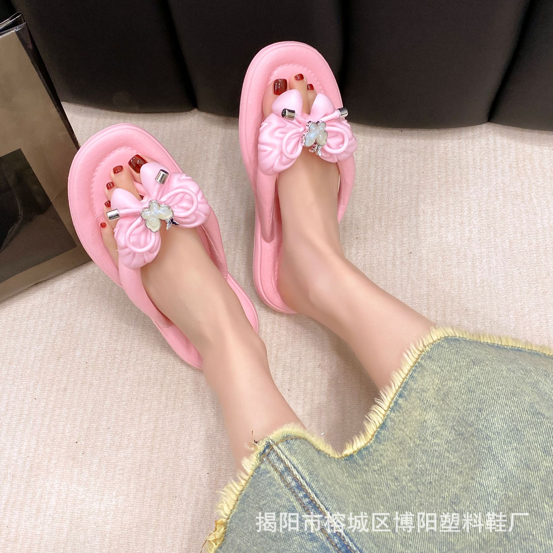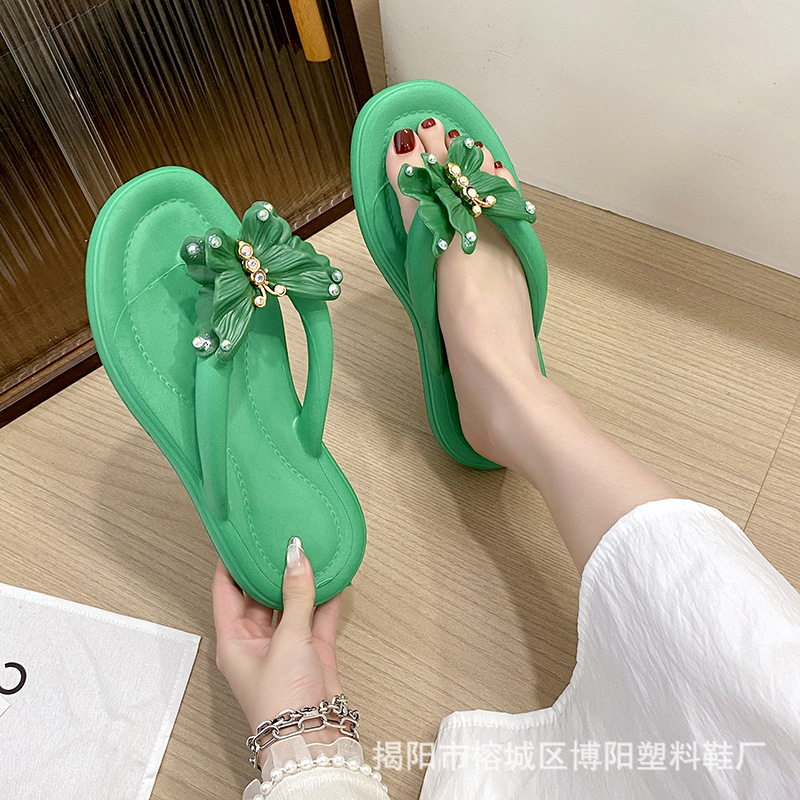 여름 새로운 EVA Bowknot ins 플립 플롭 해변 해변 요정 스타일 슬리퍼 여성 크로스 보더 도매스토어 가기