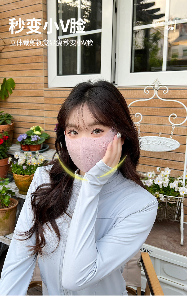 여름 레이스 자외선 차단 마스크, 자외선 차단, 얼음 실크 입체 얇은 마스크, 고급스러운 눈 보호, 통기성 차양