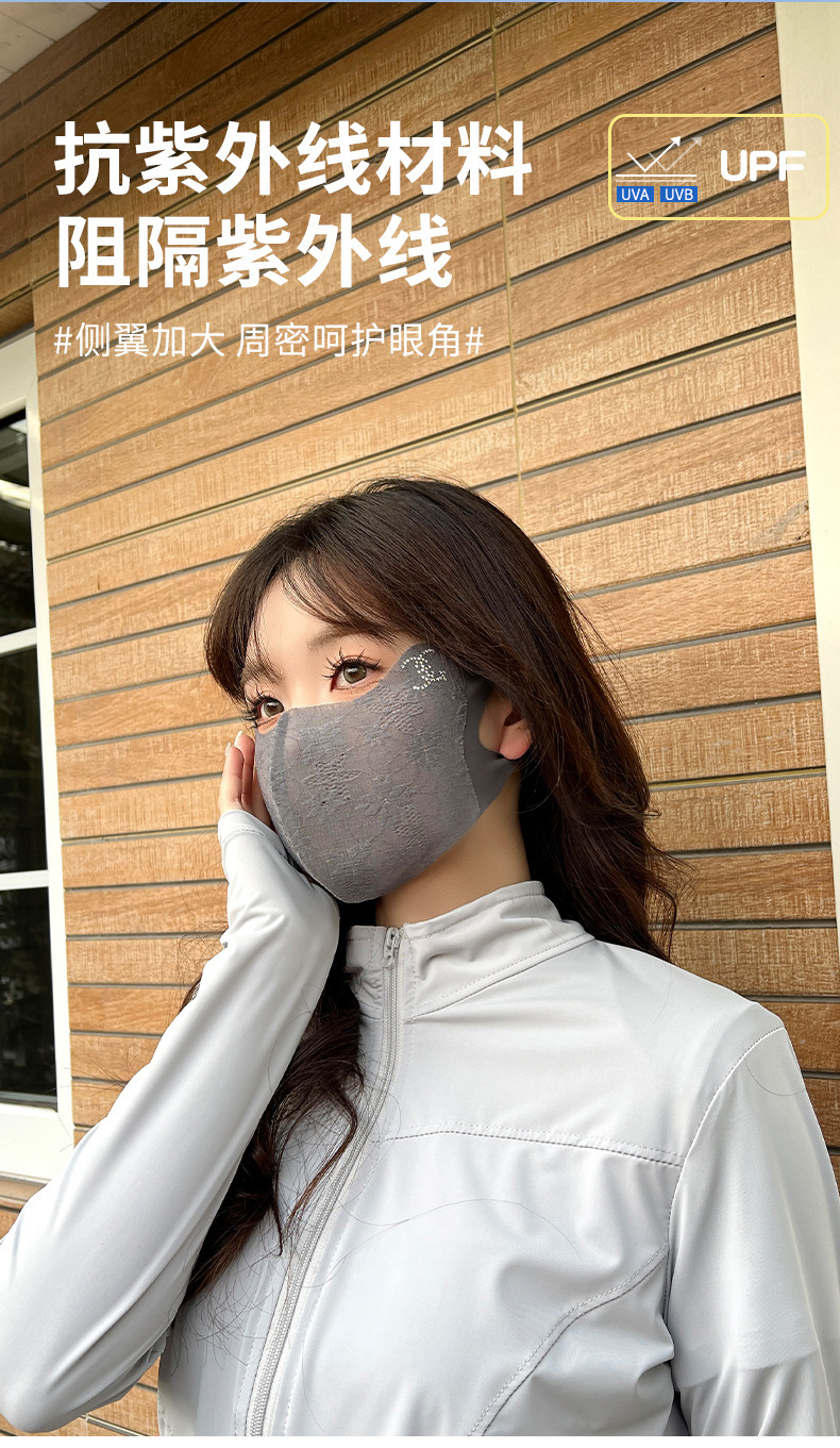 • 레이스 자외선 차단 목 마스크 다크 그레이