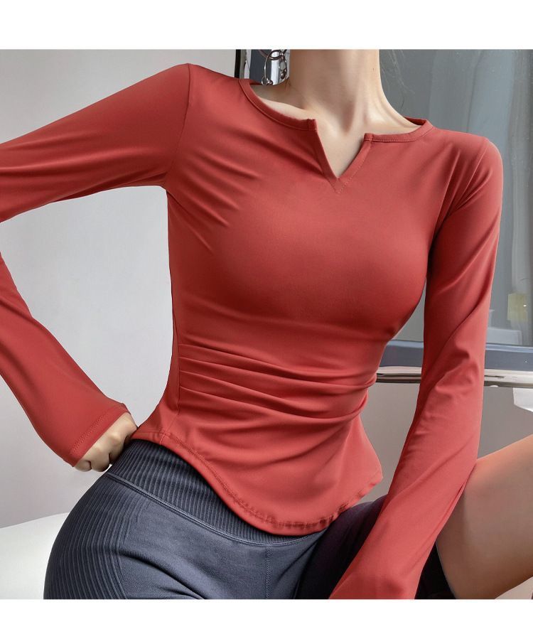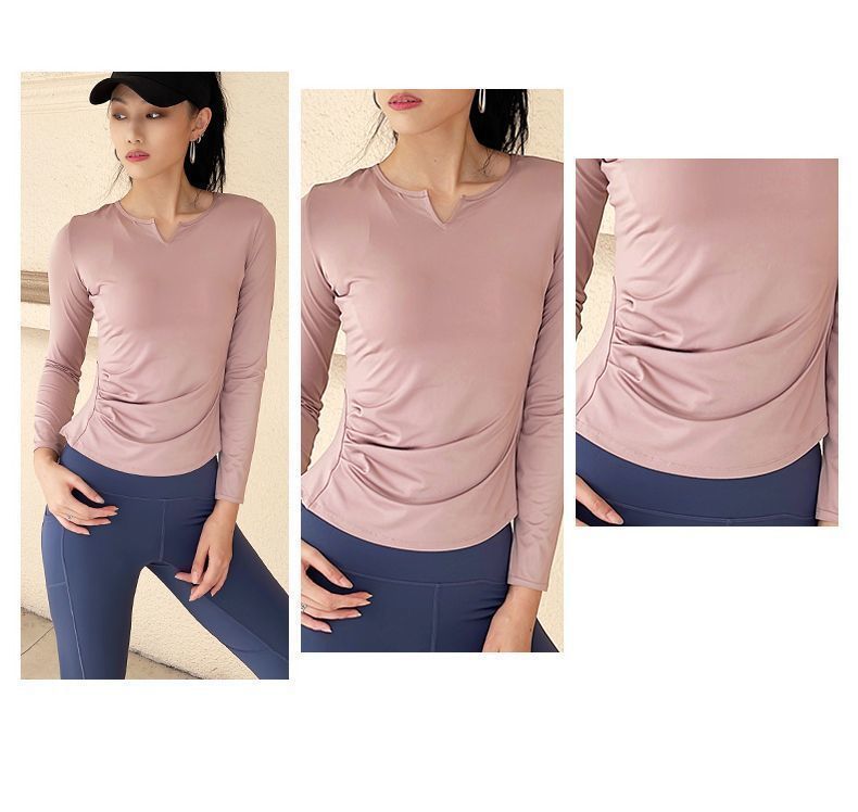 인터넷 연예인 스포츠 긴팔 여성의 빠른 건조 슬리밍 높은 탄성 칼라 피트니스 보팅 외부 착용 요가 옷 봄과 여름 작은스토어 가기