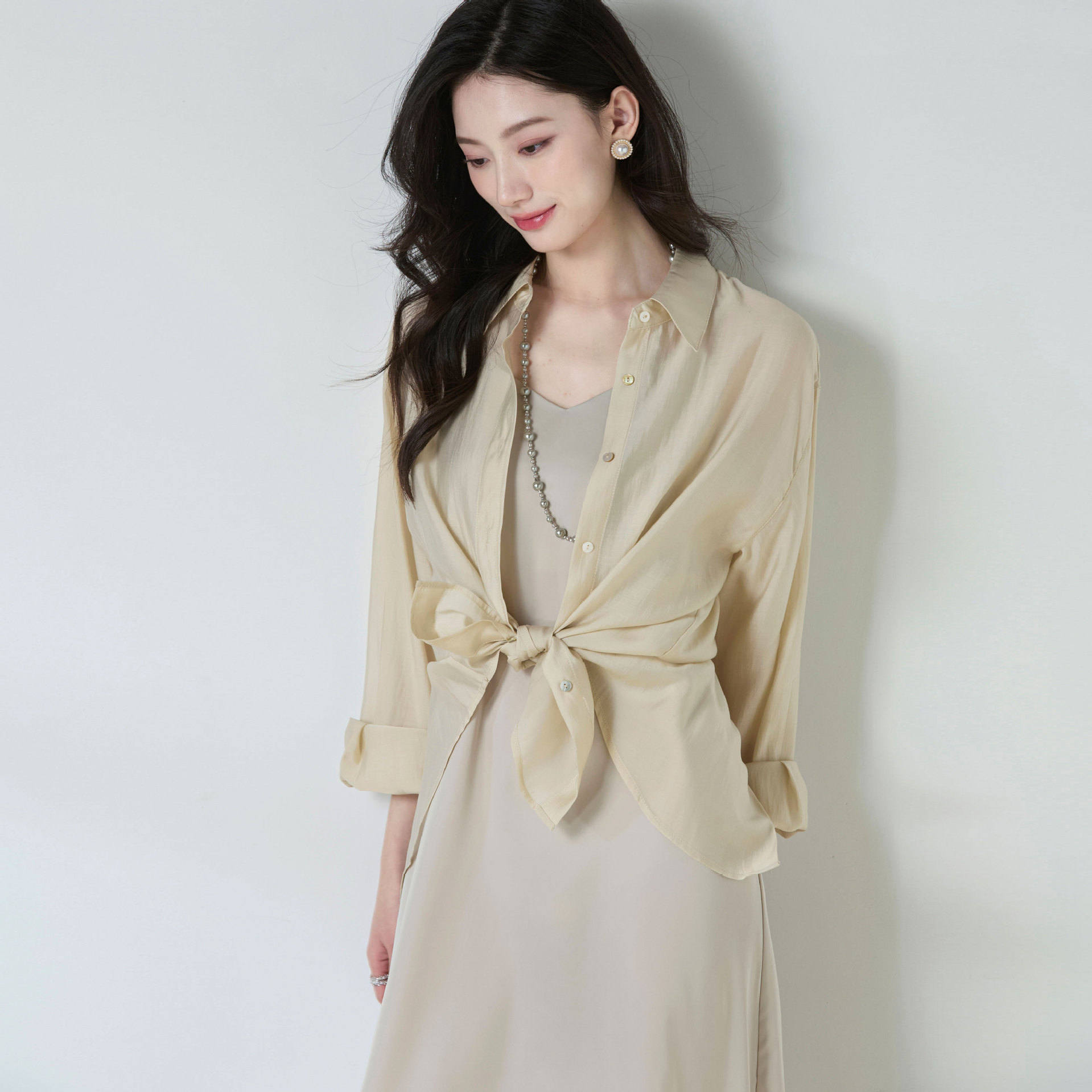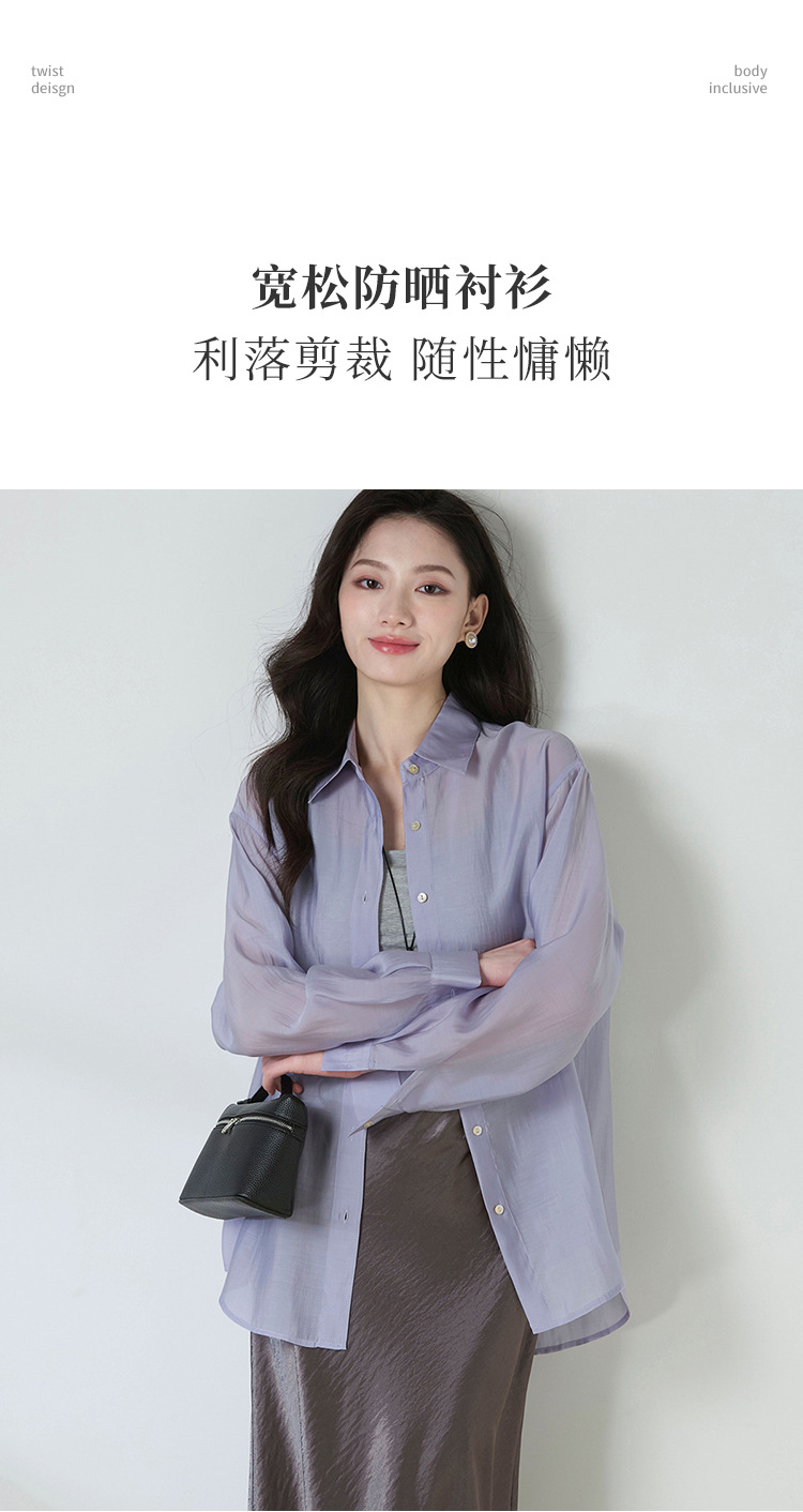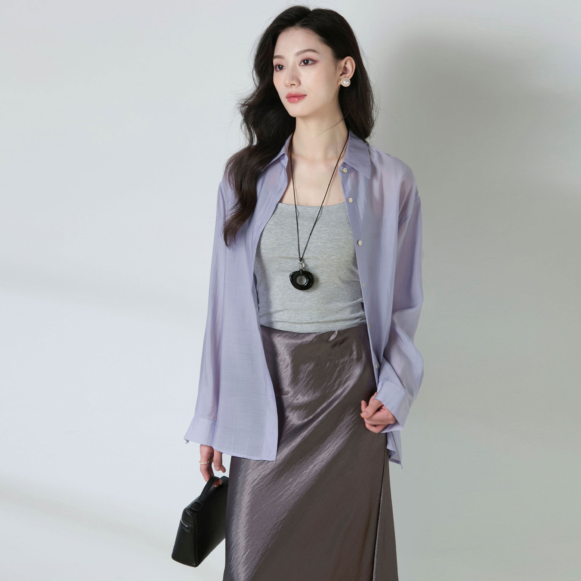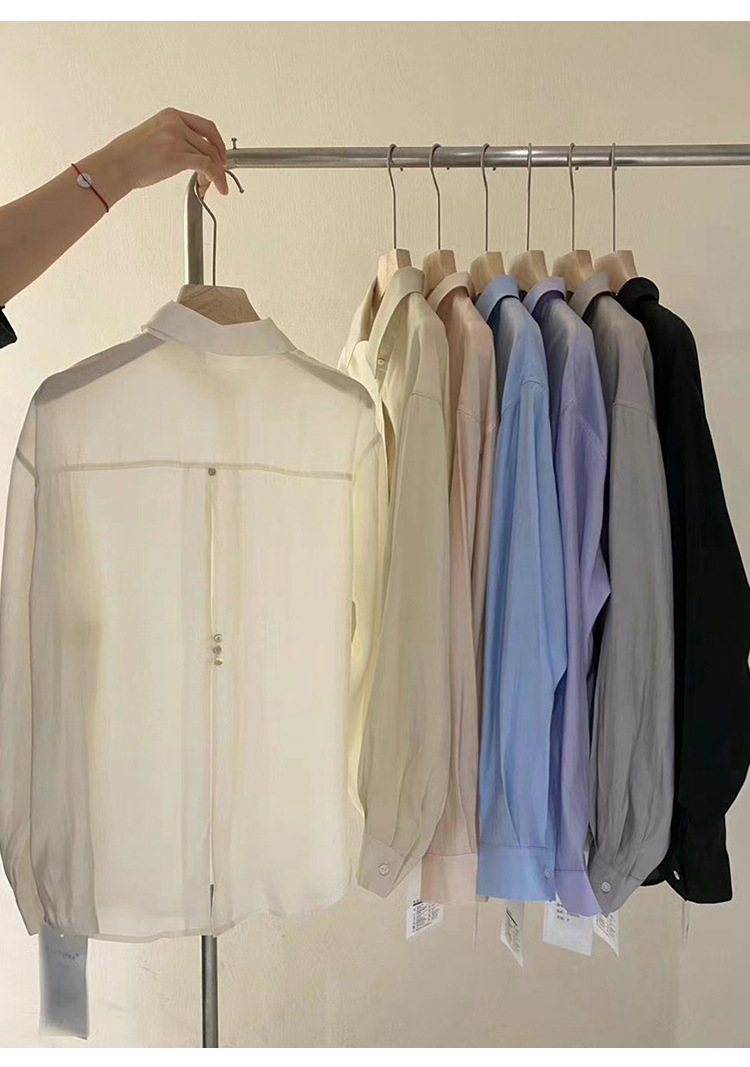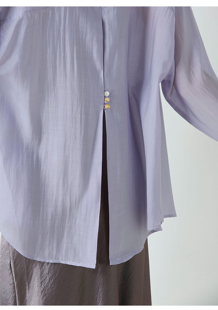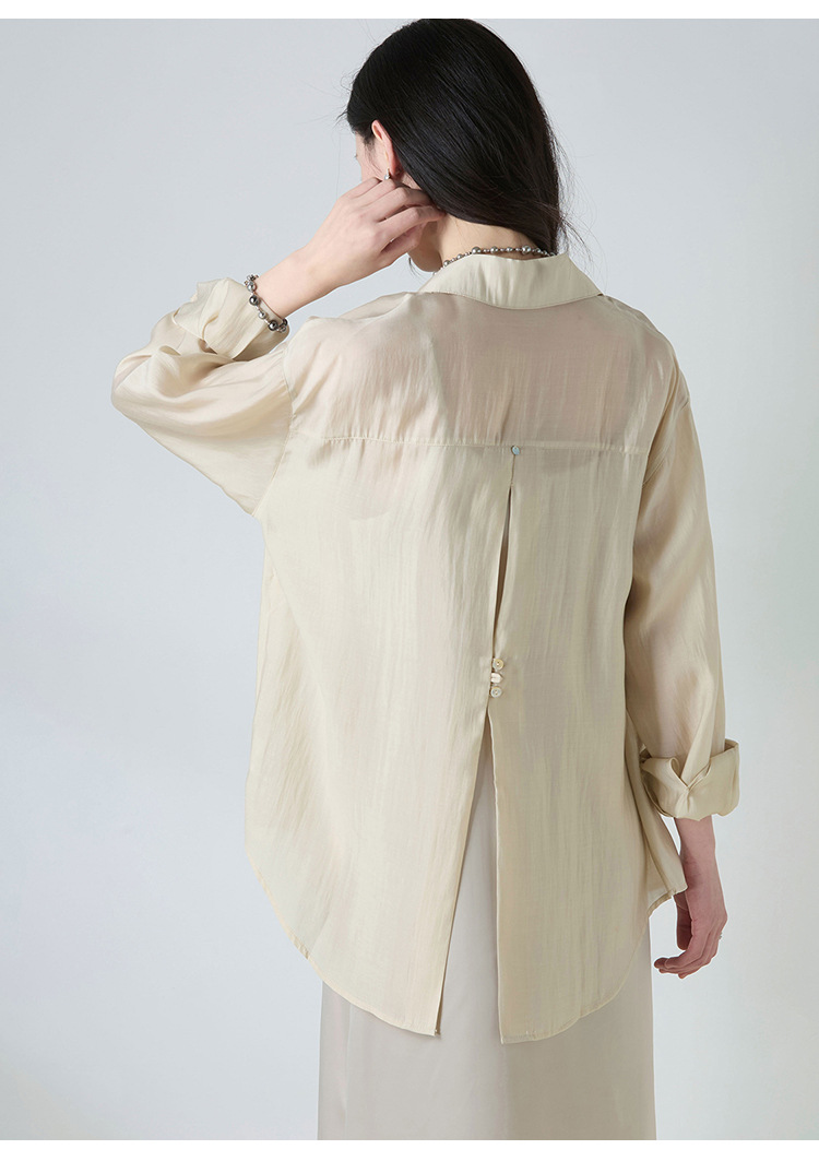 25 봄과 여름 다시 슬릿 디자인 텐셀 Lyocell 셔츠 단색 느슨한 편안한 올 매치 선 스크린 25175