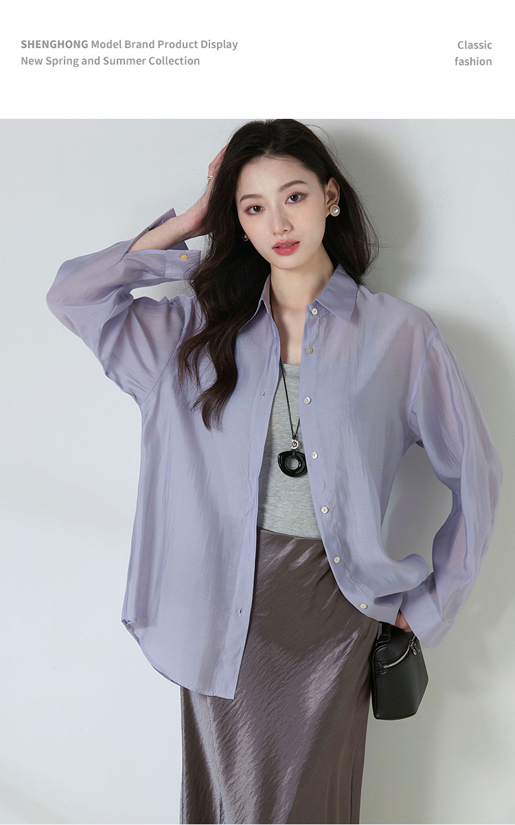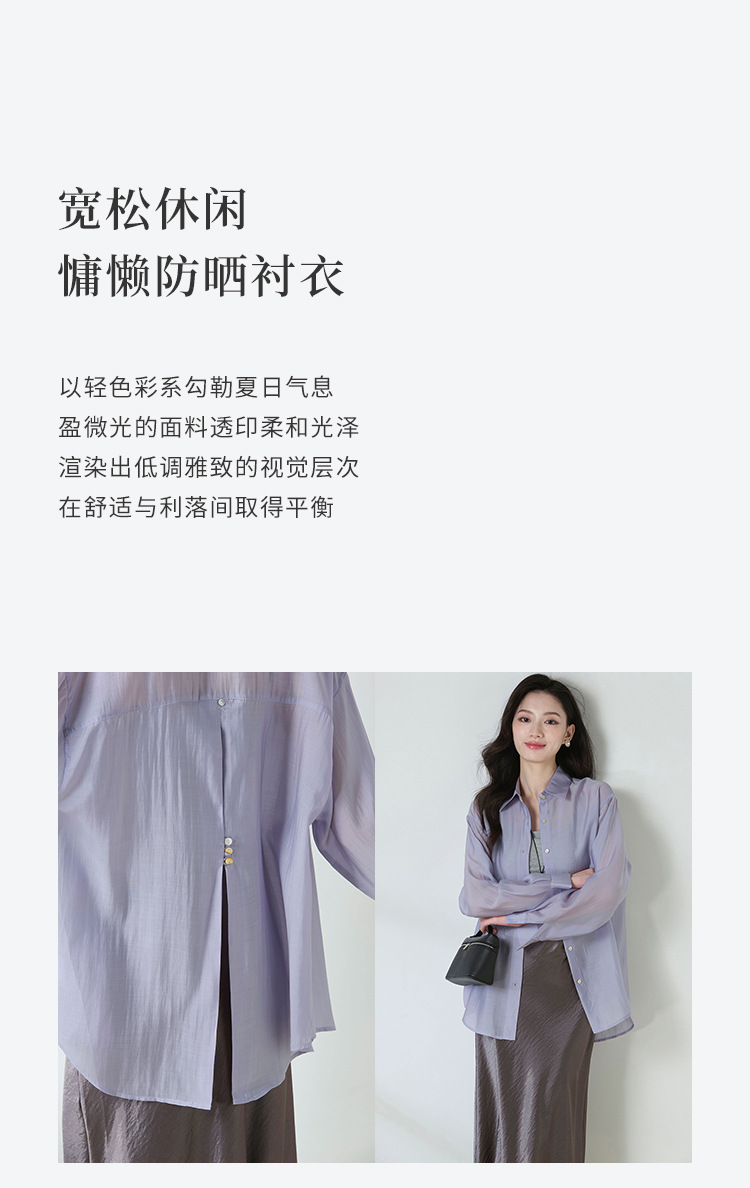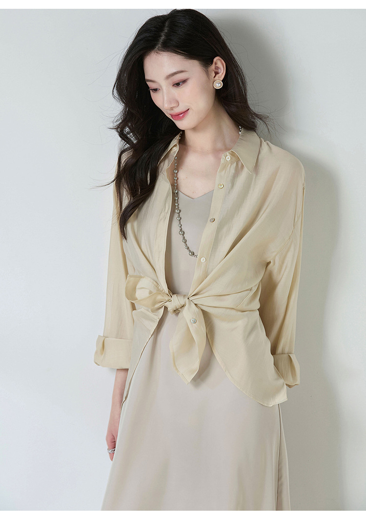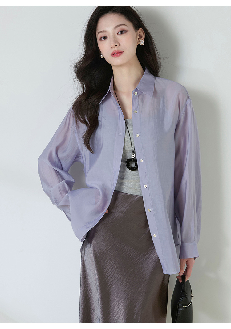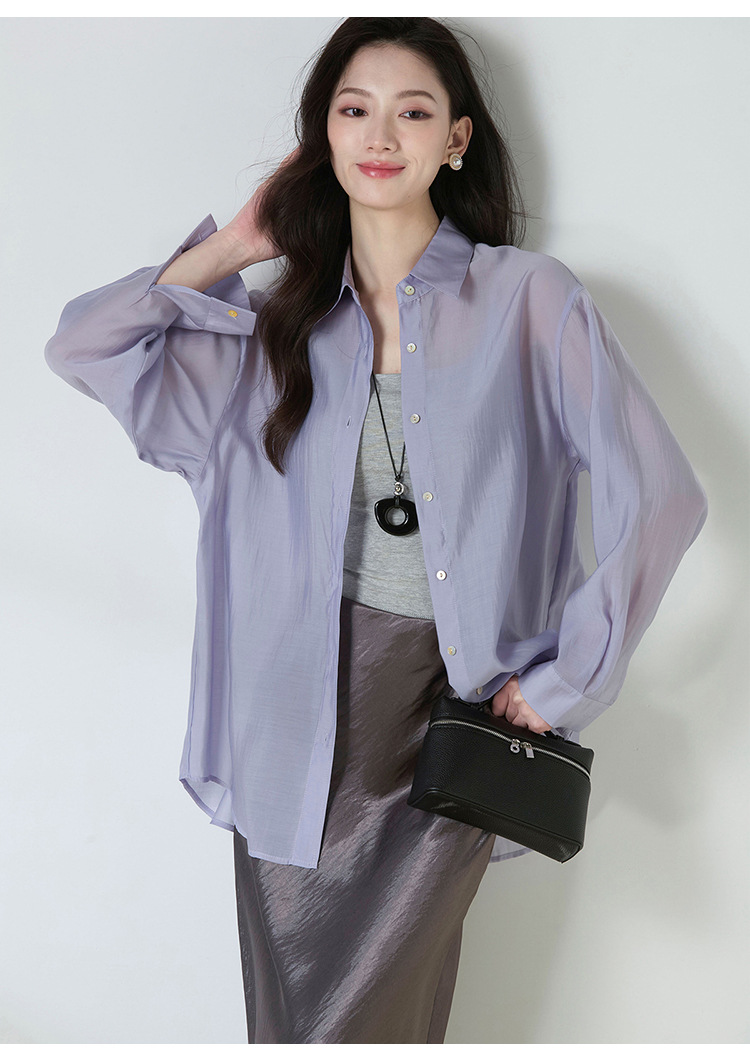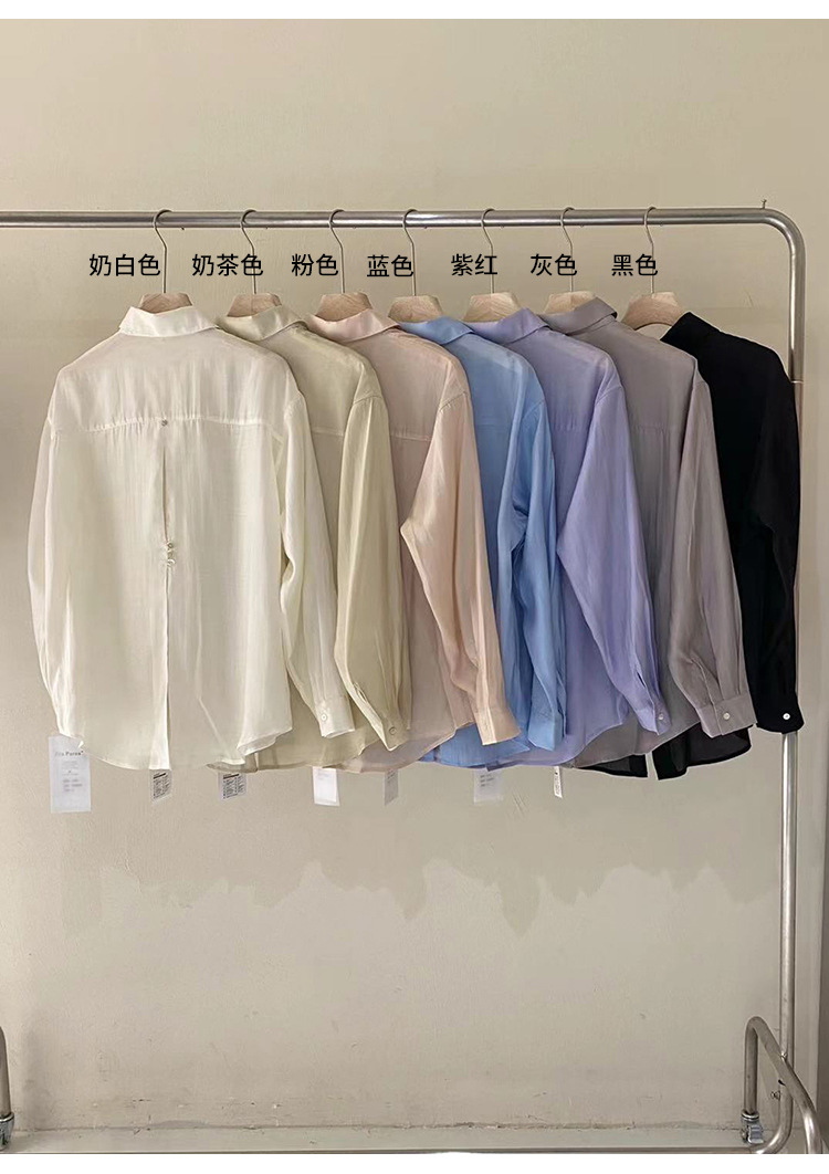25 봄과 여름 다시 슬릿 디자인 텐셀 Lyocell 셔츠 단색 느슨한 편안한 올 매치 선 스크린 25175