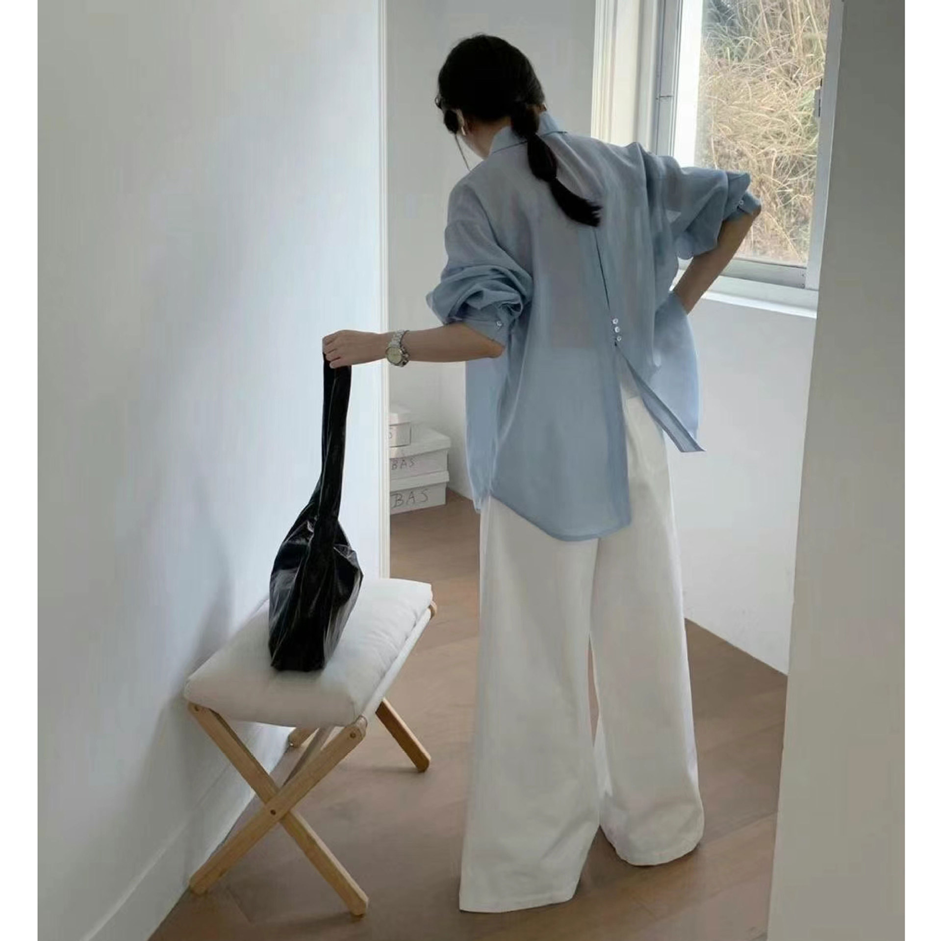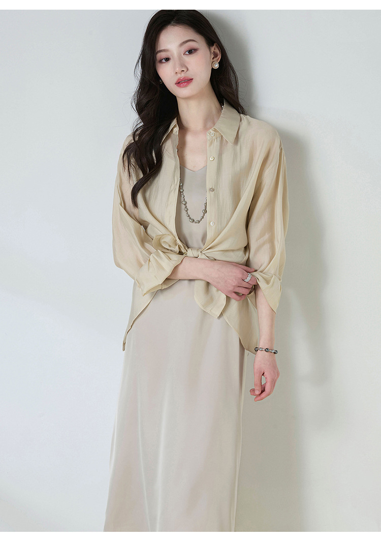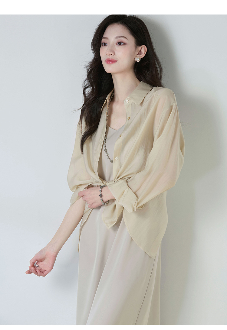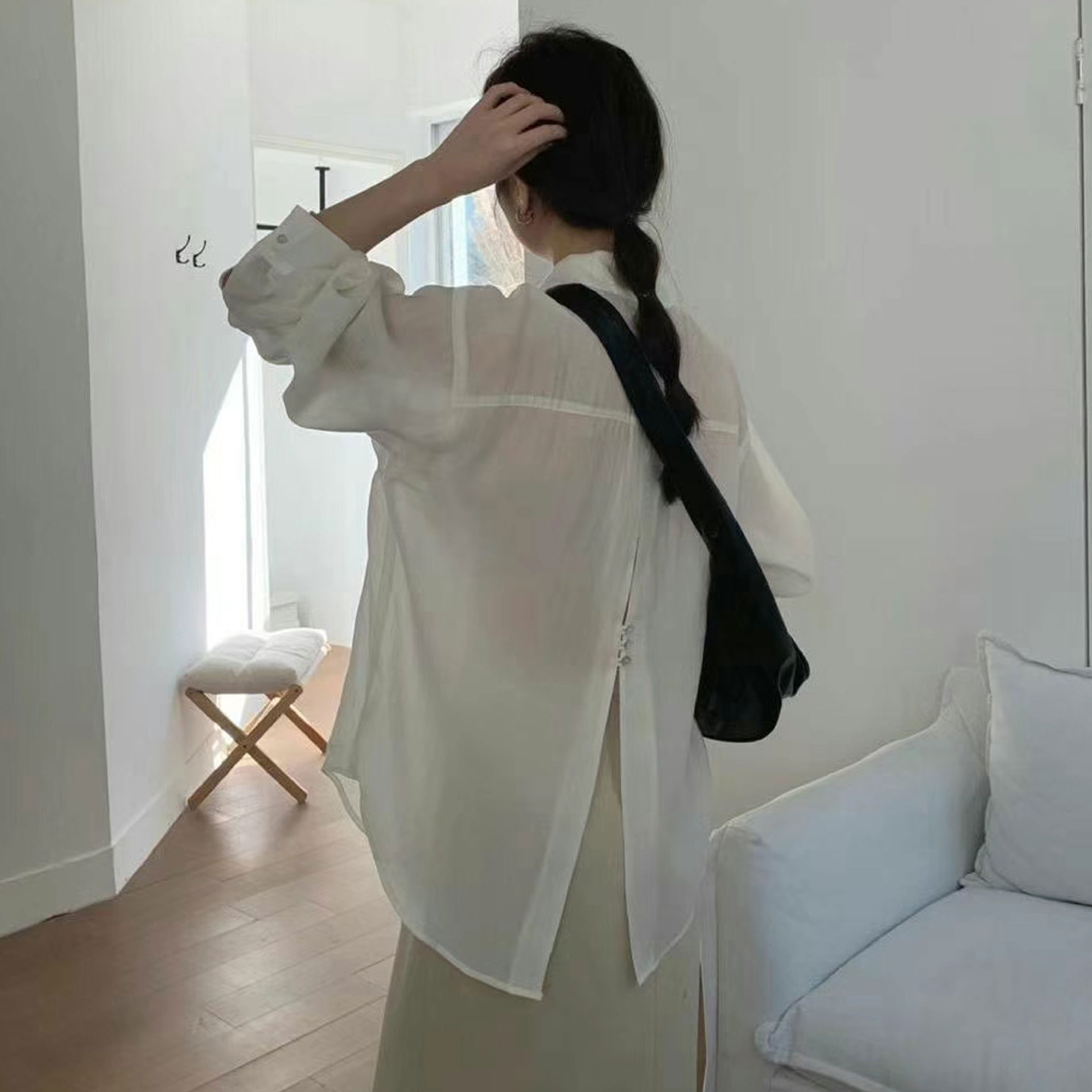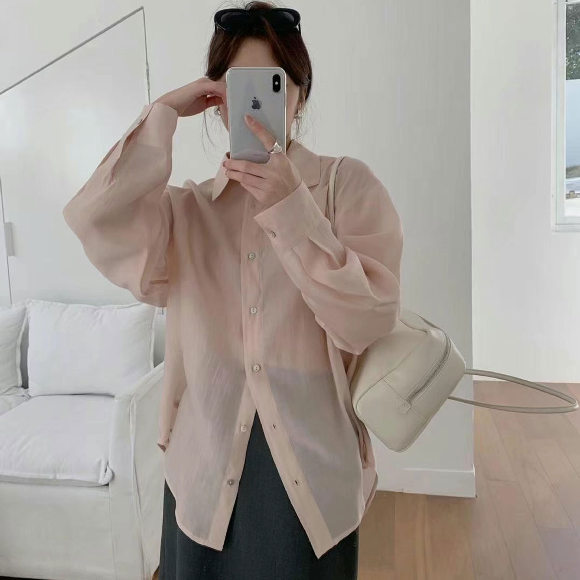 25 봄과 여름 다시 슬릿 디자인 텐셀 Lyocell 셔츠 단색 느슨한 편안한 올 매치 선 스크린 25175