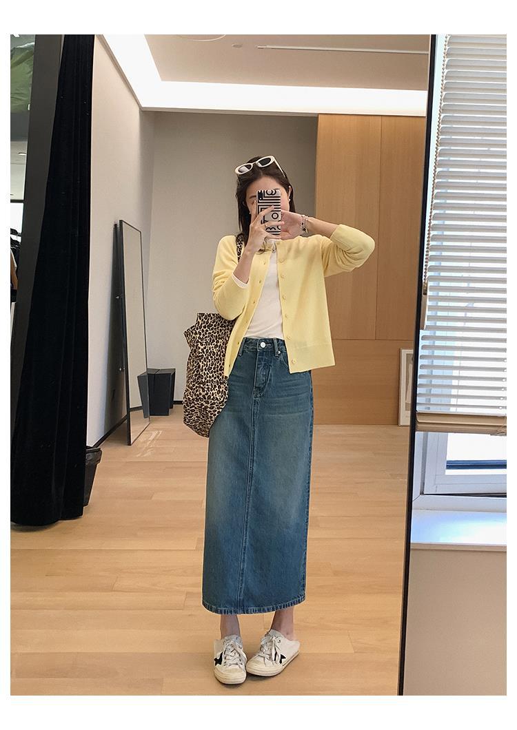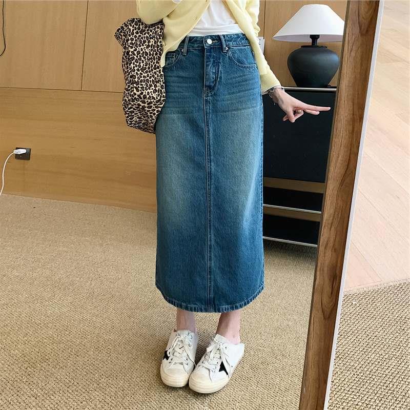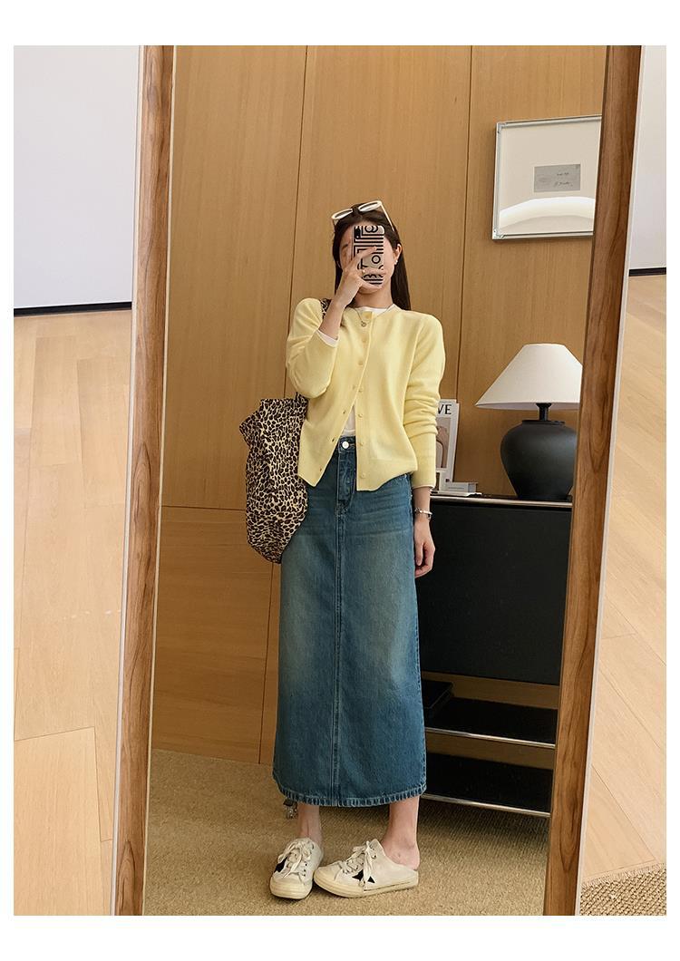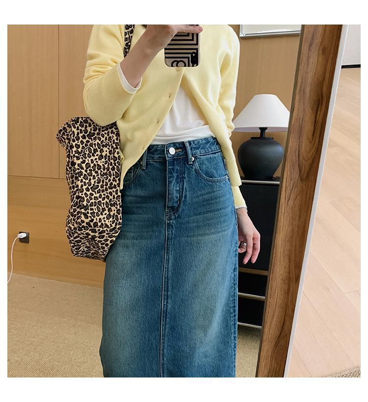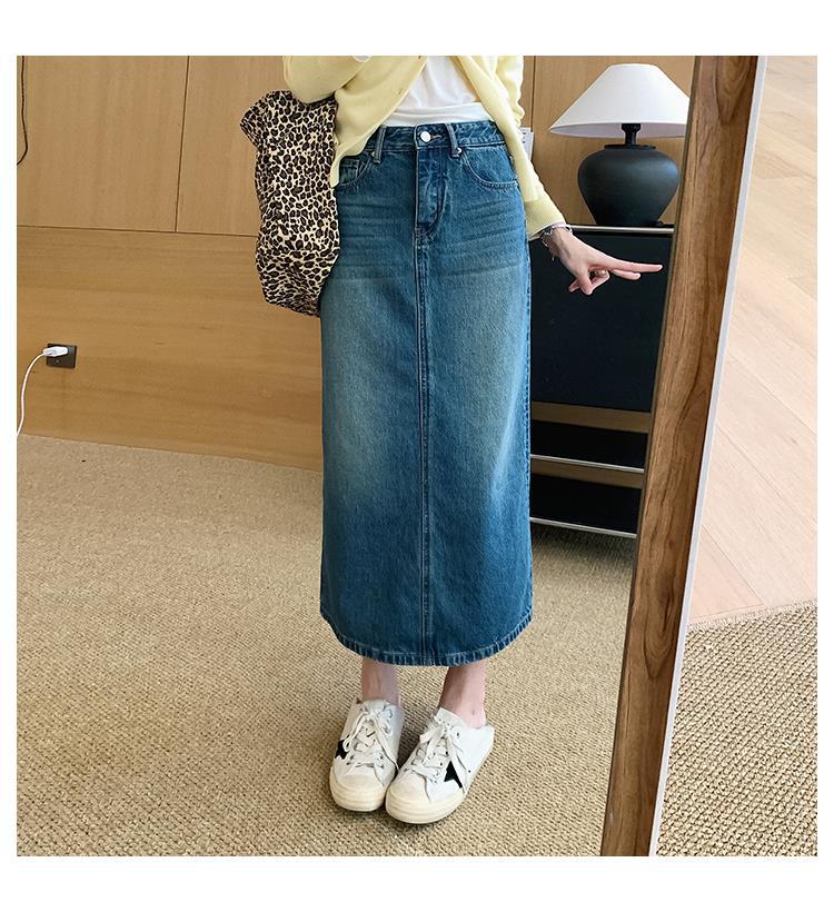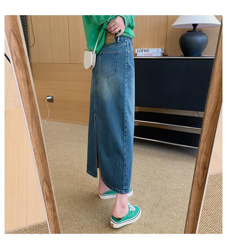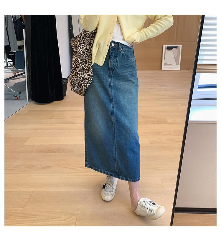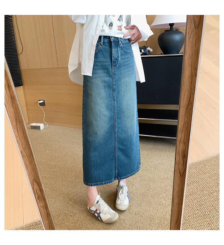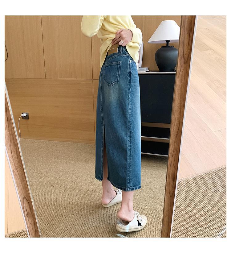 收胯显瘦复古石磨水洗后开叉牛仔半裙!#