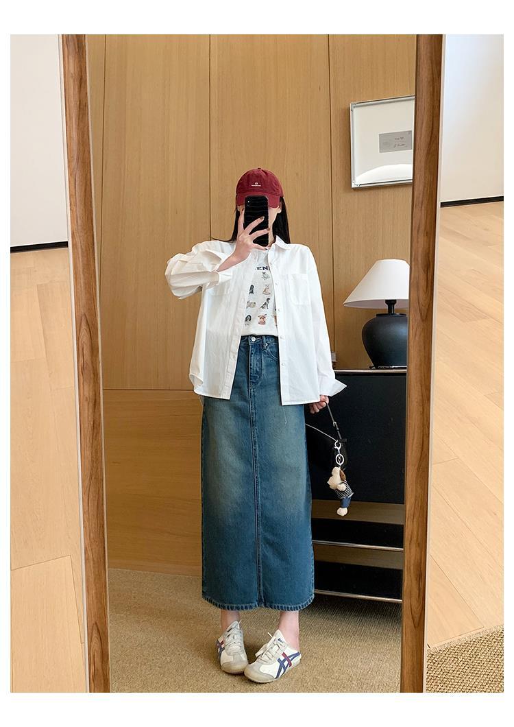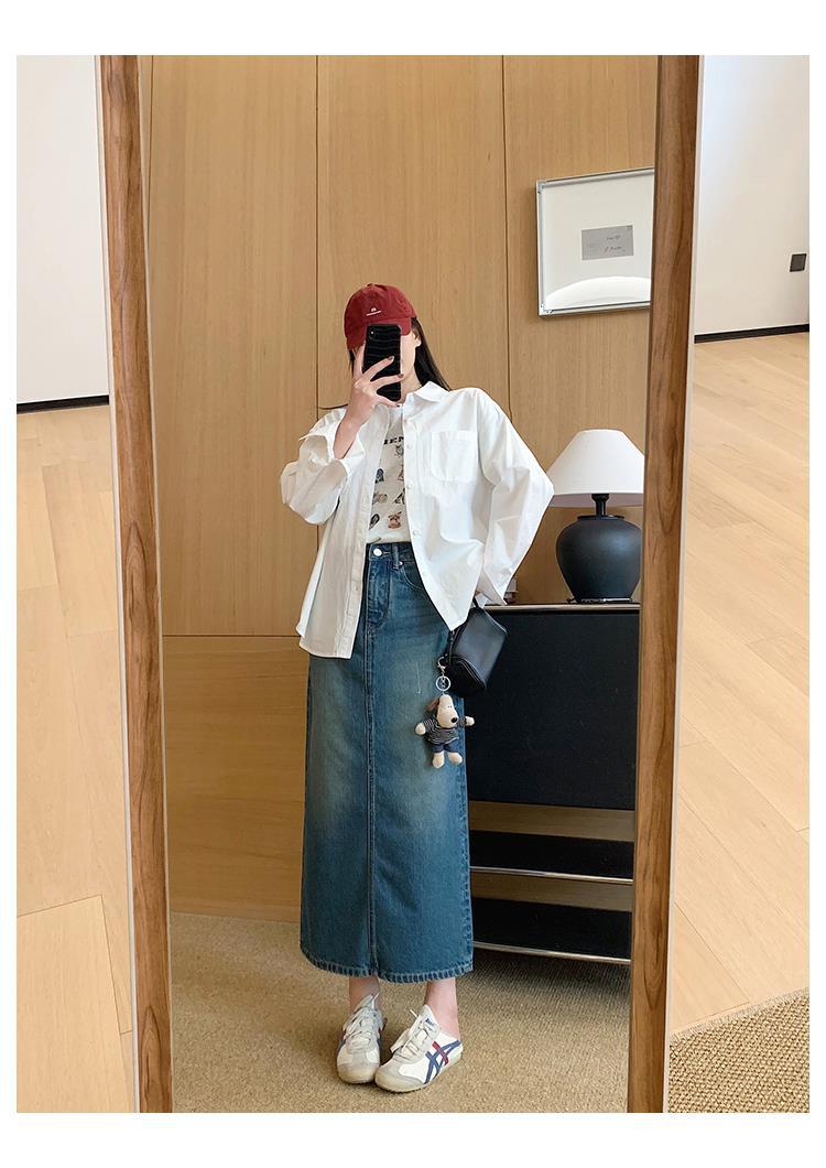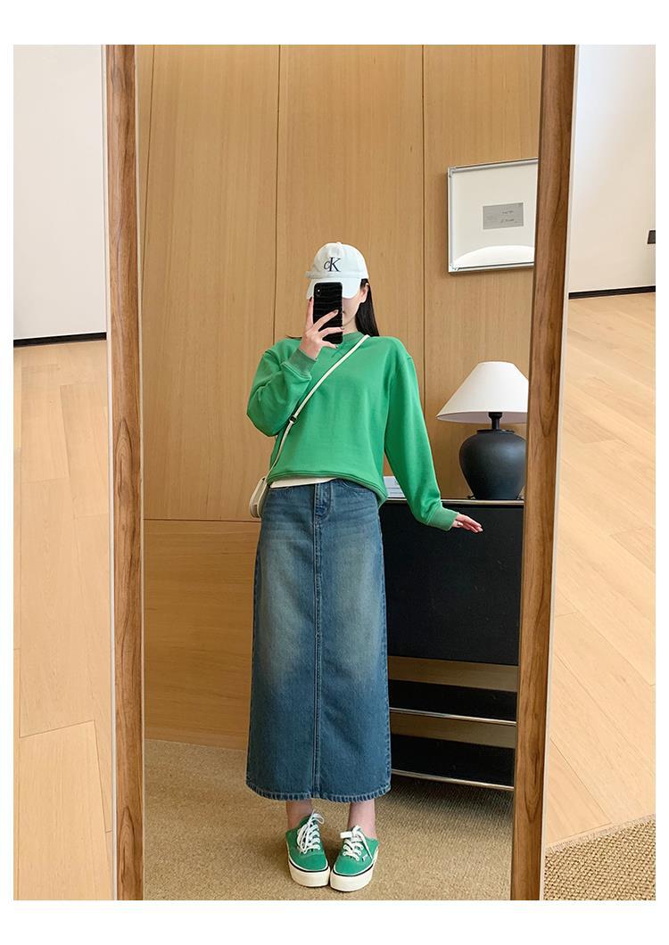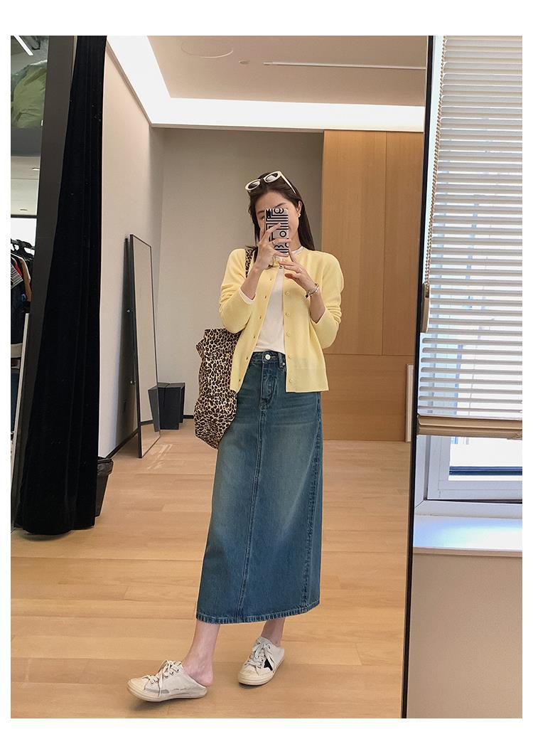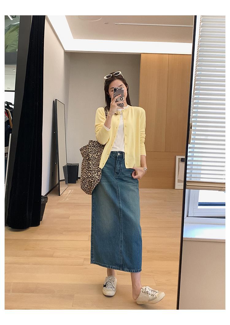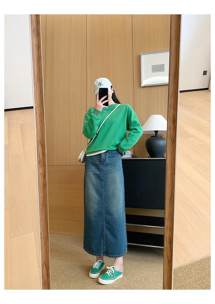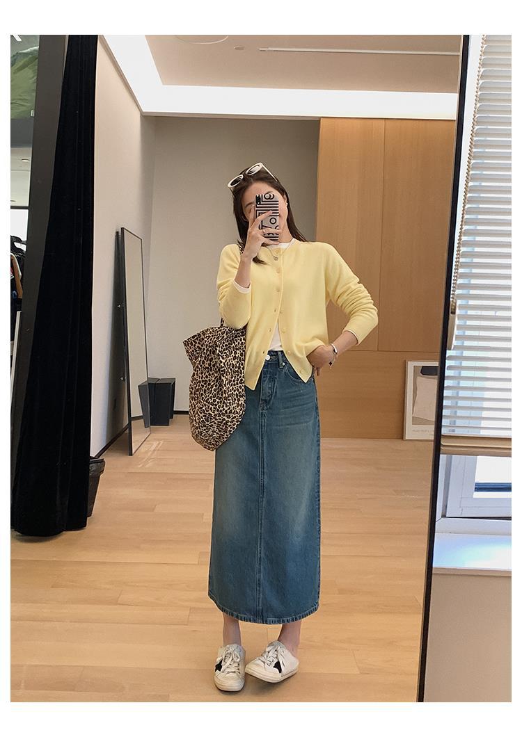 收胯显瘦复古石磨水洗后开叉牛仔半裙!#