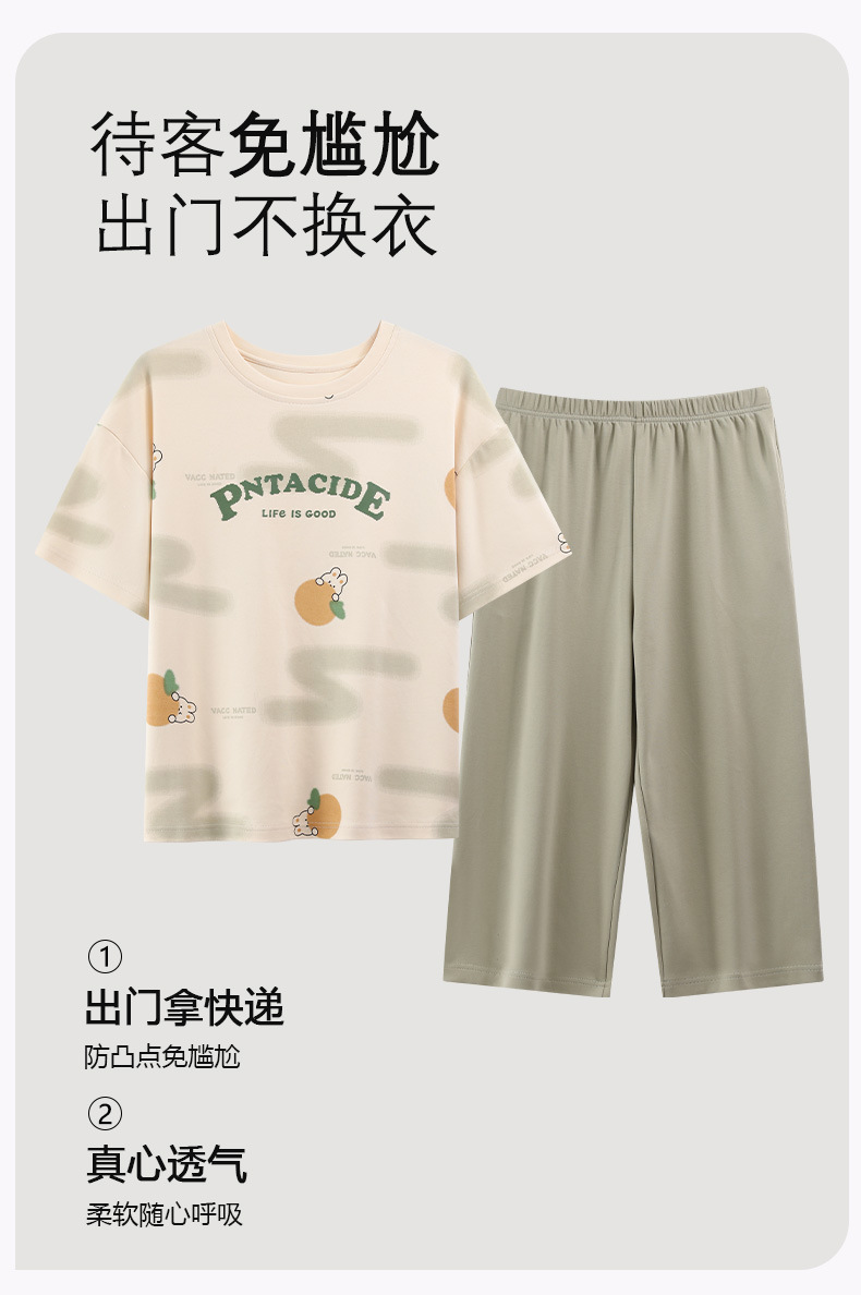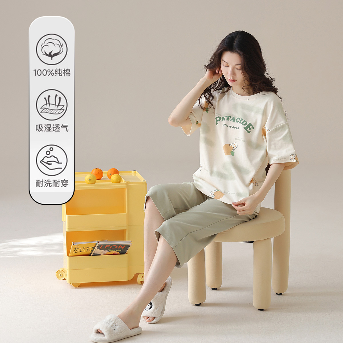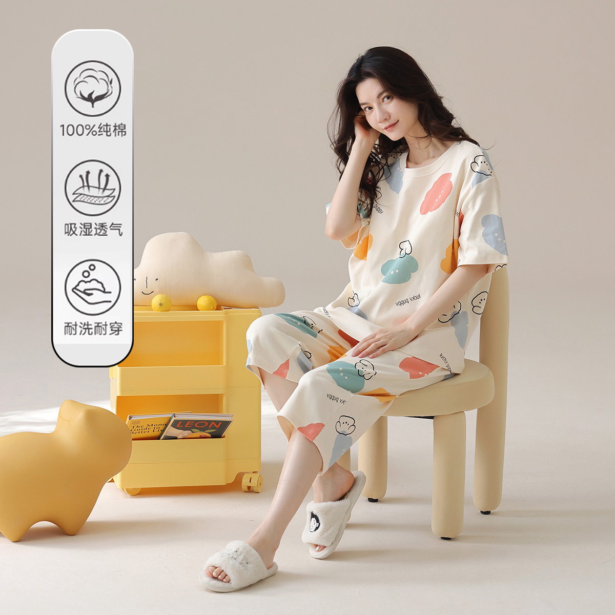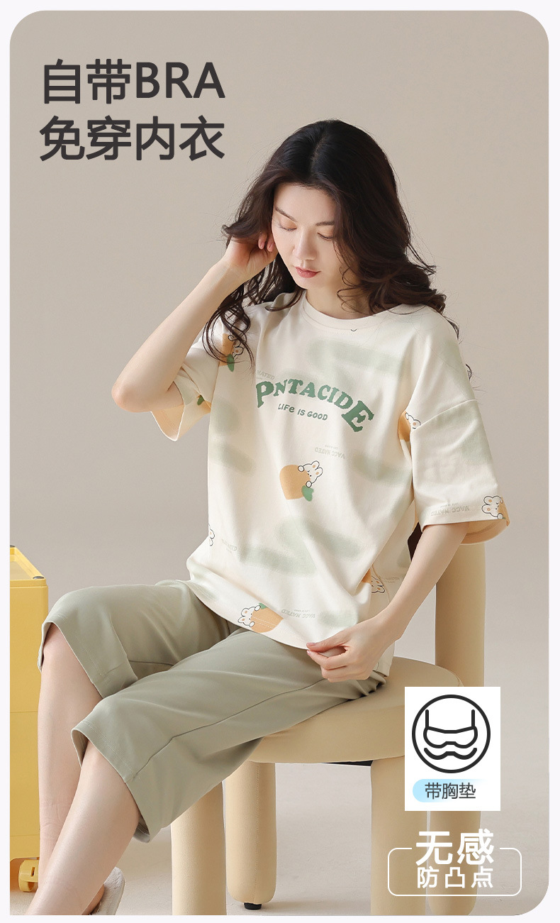 잠옷 숙녀 여름 면화 홈 착용 세트 가슴 패드가있는 귀여운 간단한 7 소매 잠옷 도매 착용스토어 가기