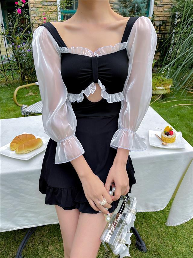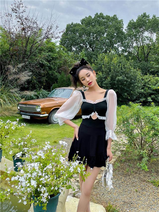 여성용 신형 원피스 수영복, 스커트 스타일, 배 커버, 슬리밍, 가슴 패드, 등이 없는 섹시한 휴가 온천 패션 수영복스토어 가기