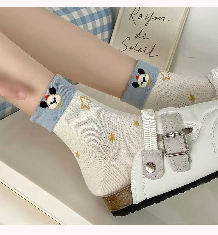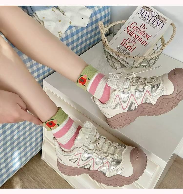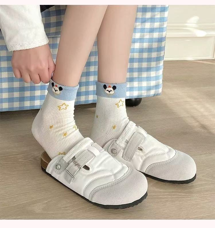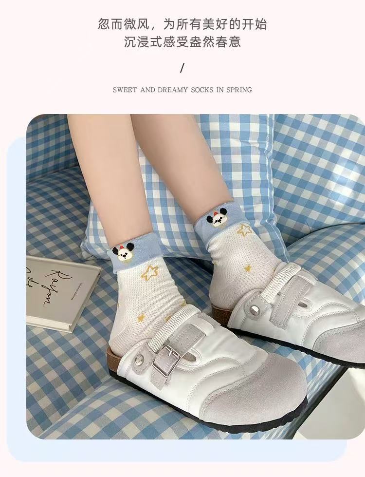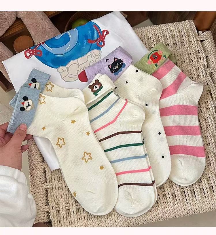 2025 새로운 봄과 여름 얇은 메쉬 양말 여성용 짧은 양말 귀여운 소녀의 만화 줄무늬 여성용 면 양말