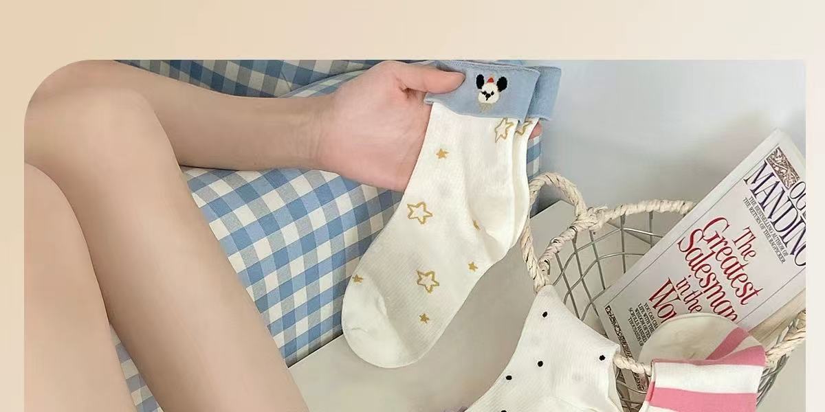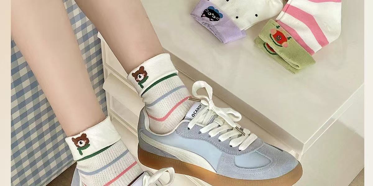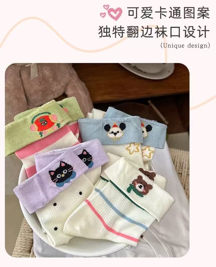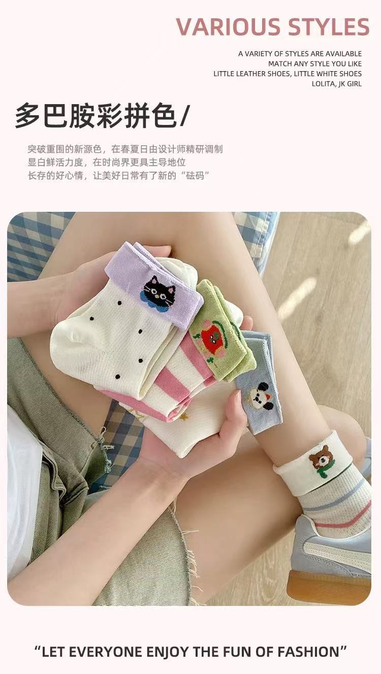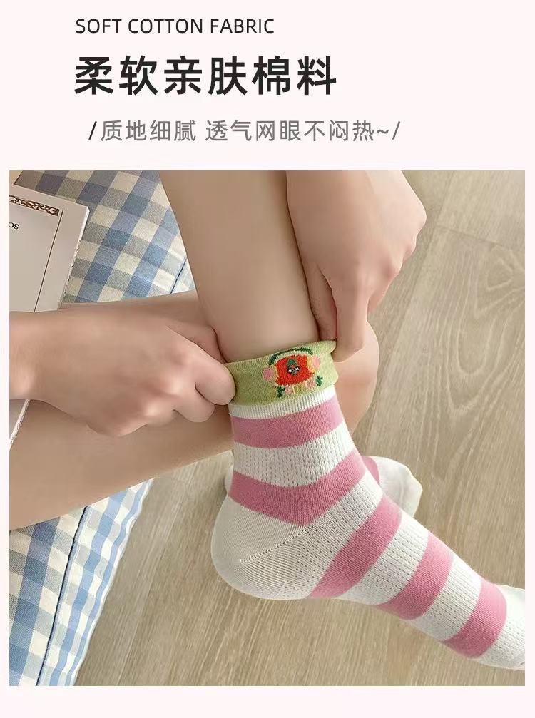 2025 새로운 봄과 여름 얇은 메쉬 양말 여성용 짧은 양말 귀여운 소녀의 만화 줄무늬 여성용 면 양말스토어 가기
