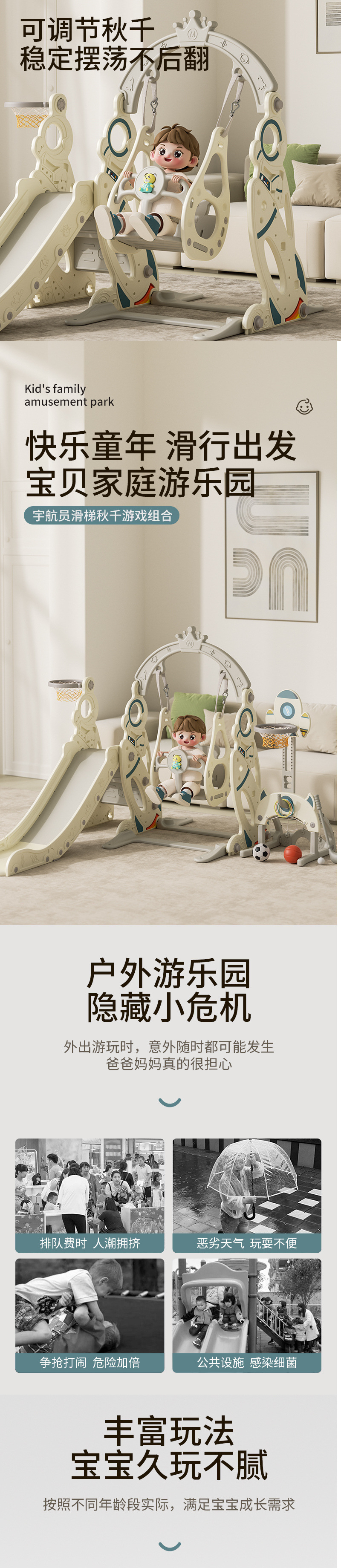 • 우주비행사 슬라이드 그네 7-in-1 (회색) + 볼풀 세트
