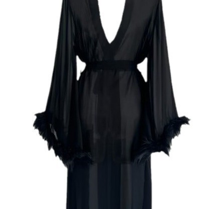 2024 유럽과 미국의 섹시한 속옷 여름 새로운 깃털 긴팔 잠옷 잠옷 편안한 스트랩 여성 홈