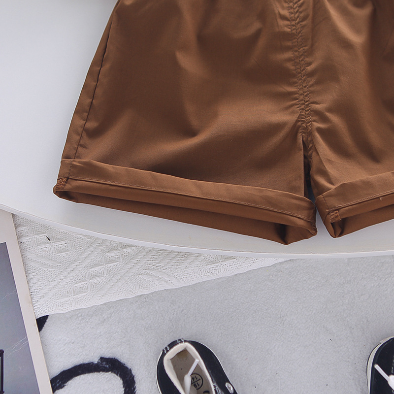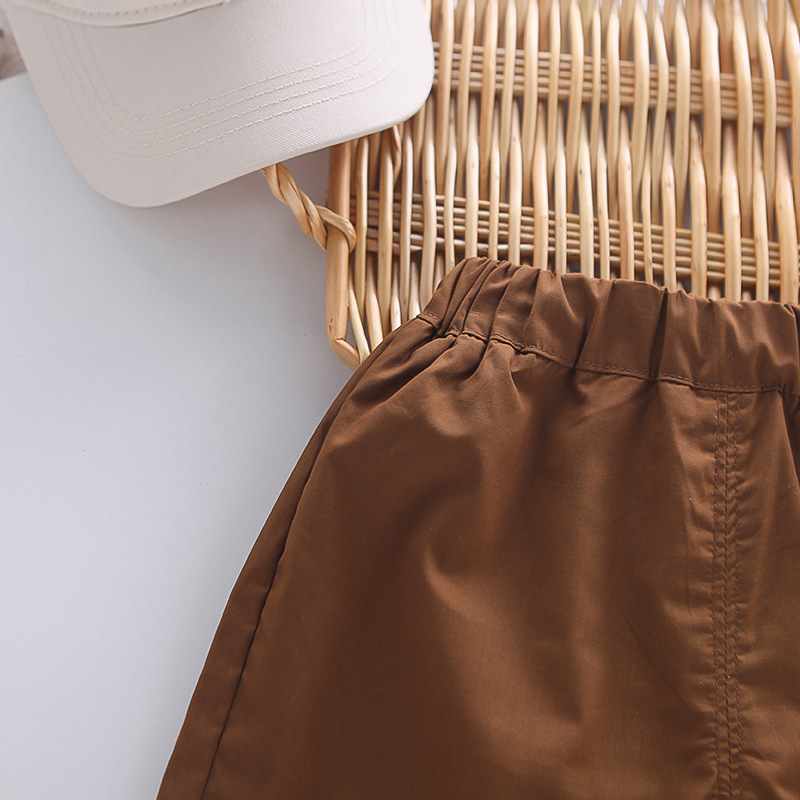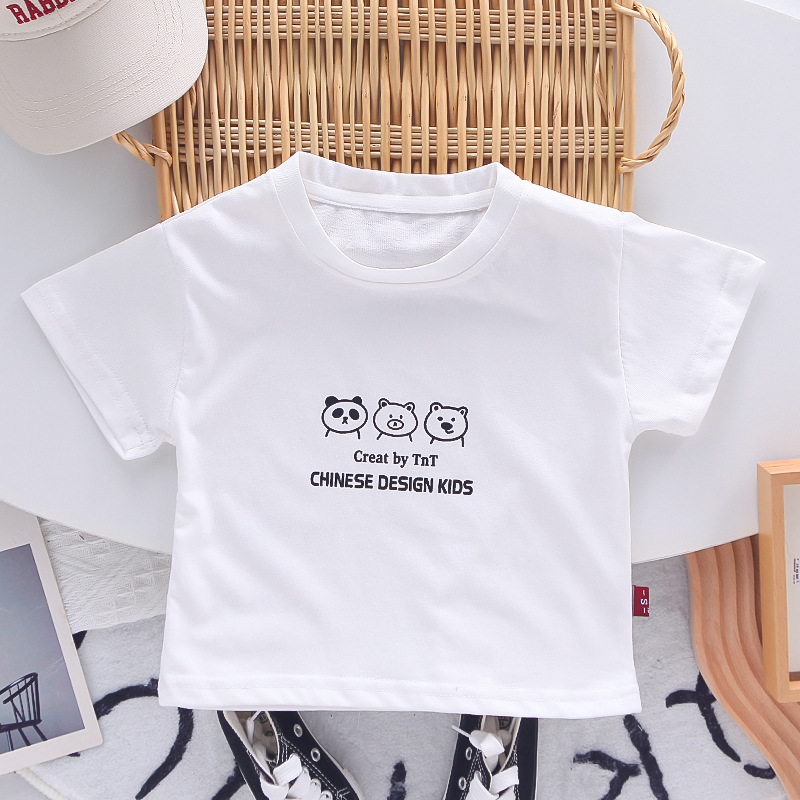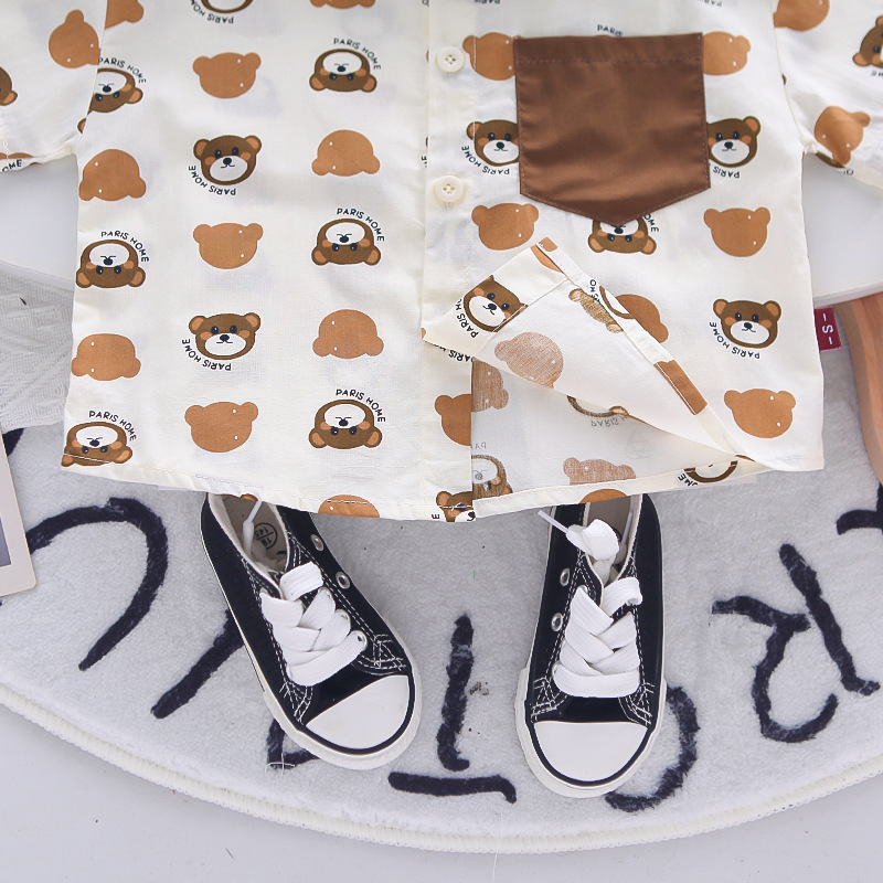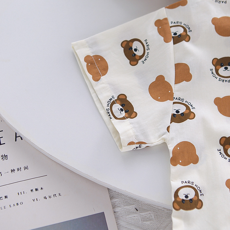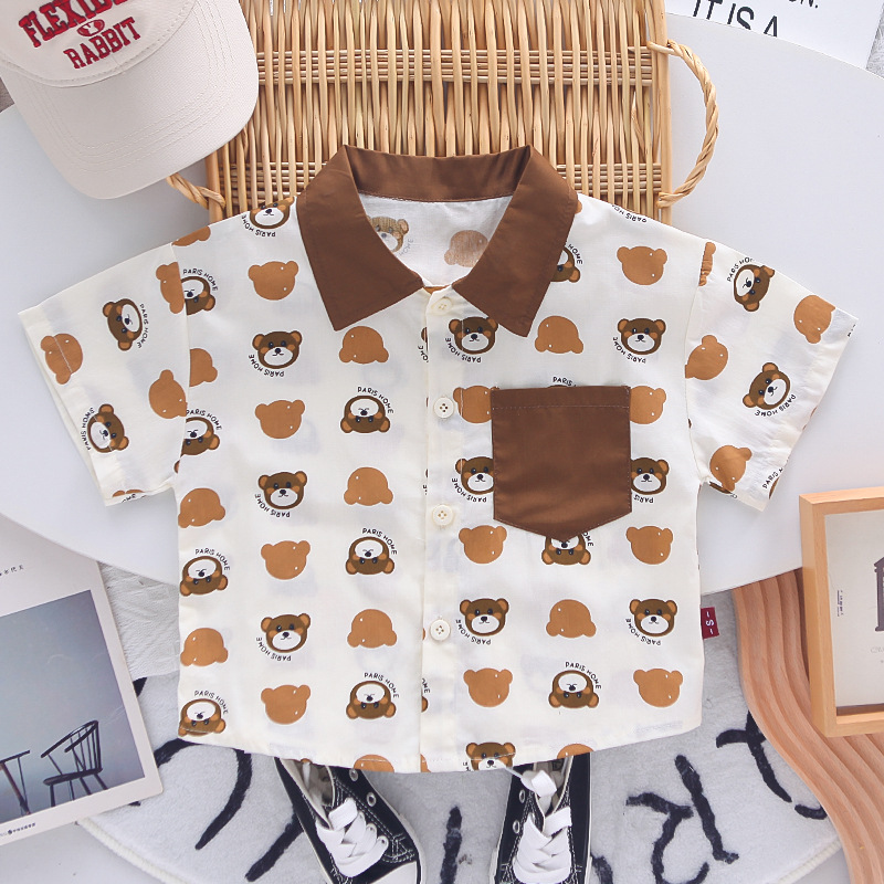 새로운 어린이 소년 여름 스타일 전체 인쇄 곰 머리 셔츠 반팔 3 피스 세트 유행 2025 소년 여름 정장