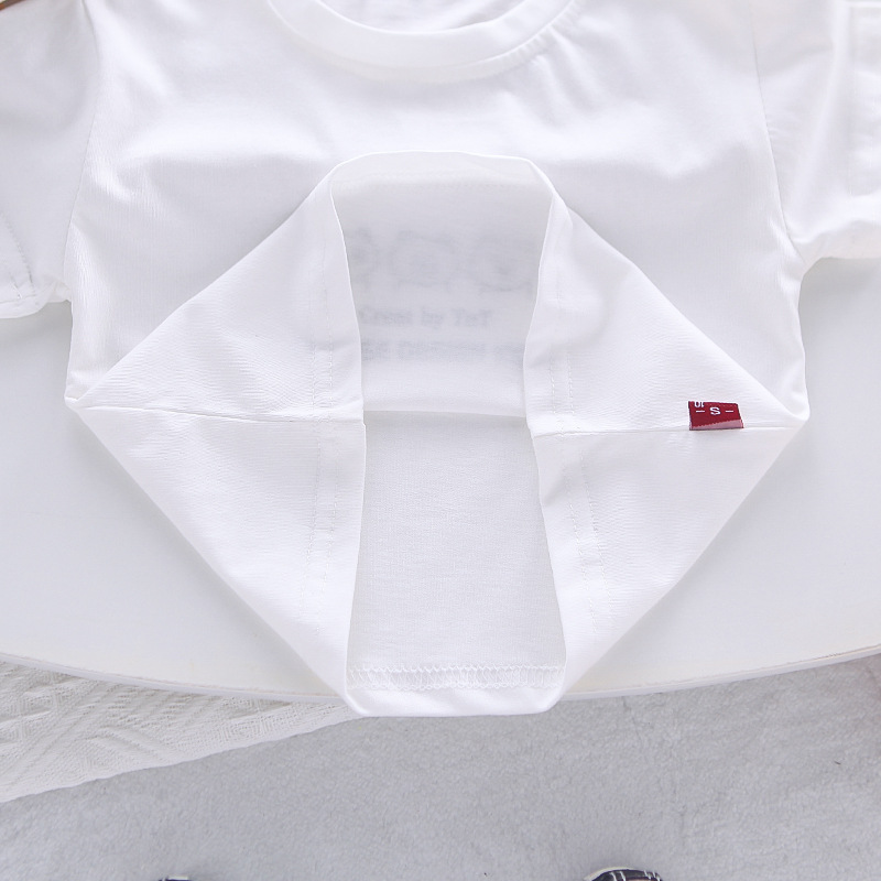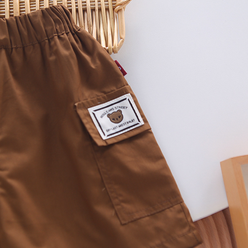 새로운 어린이 소년 여름 스타일 전체 인쇄 곰 머리 셔츠 반팔 3 피스 세트 유행 2025 소년 여름 정장스토어 가기