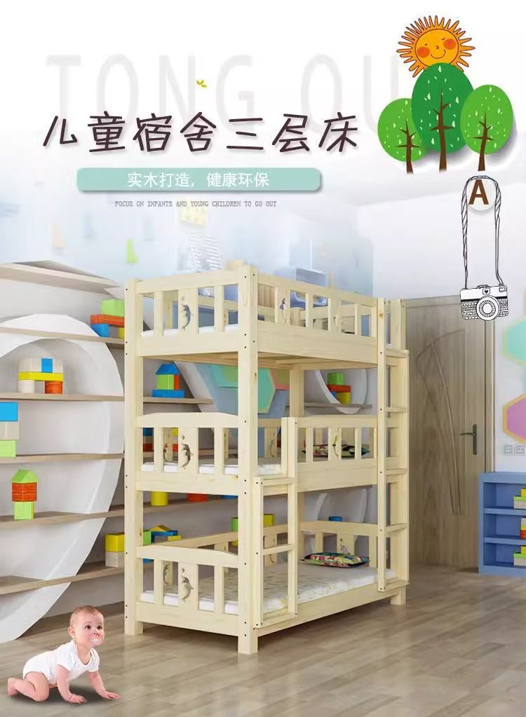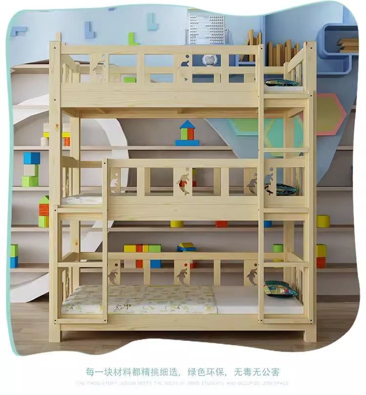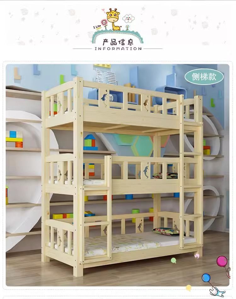 원목 어린이침대, 유치원 3층침대, 소나무 하이앤로우침대, 낮잠교실, 낮잠침대, 학생기숙사 이층침대