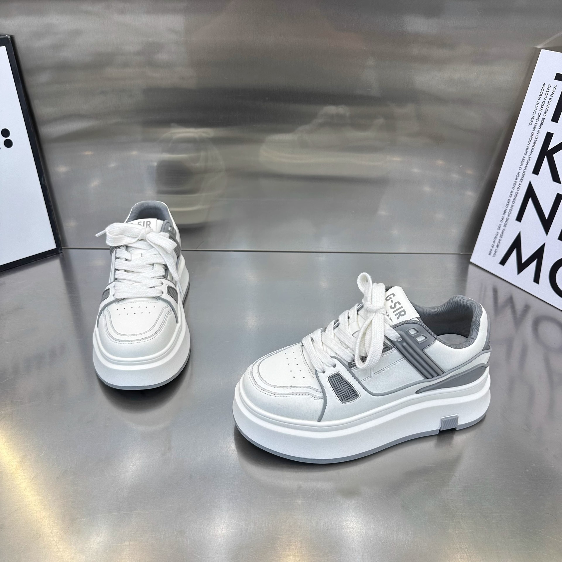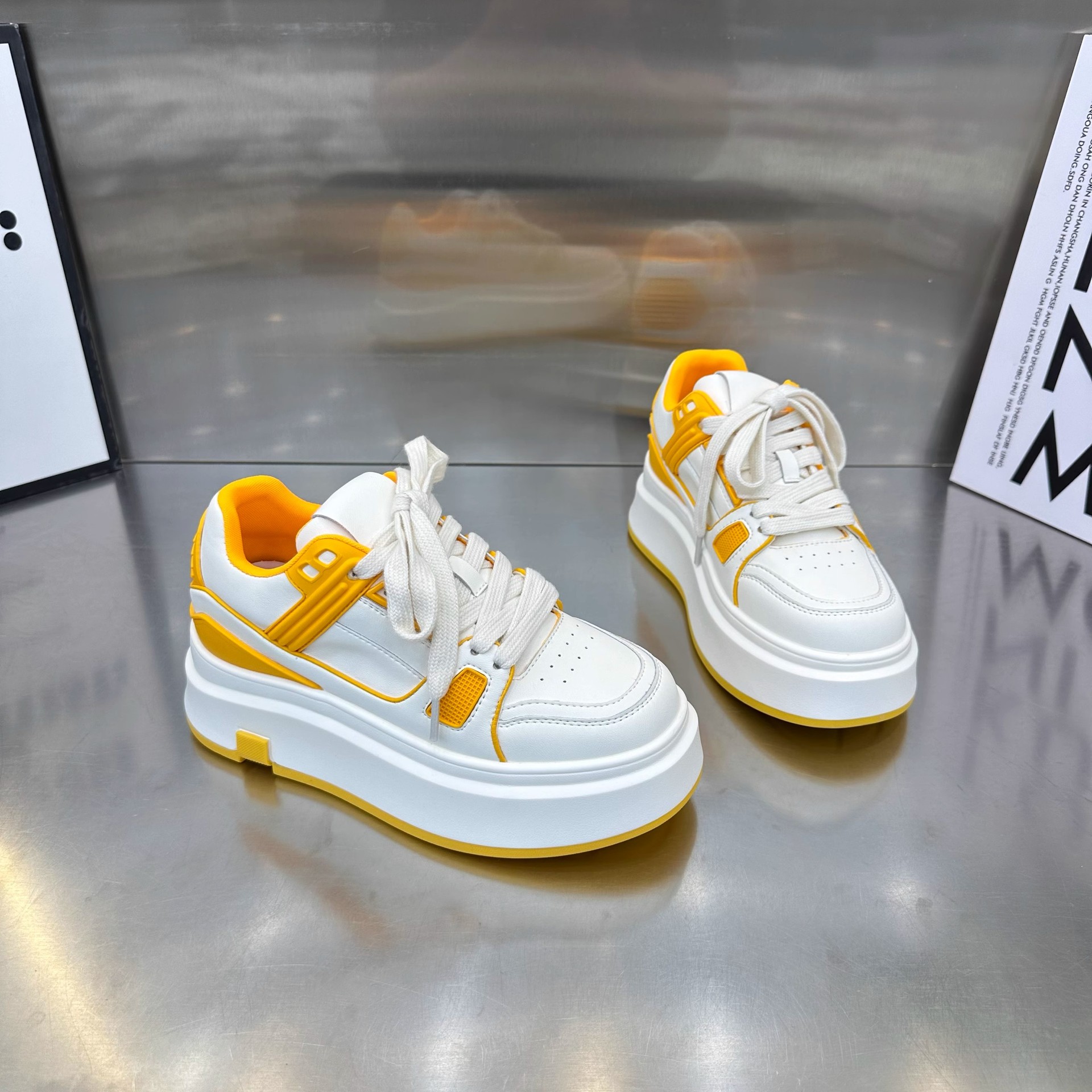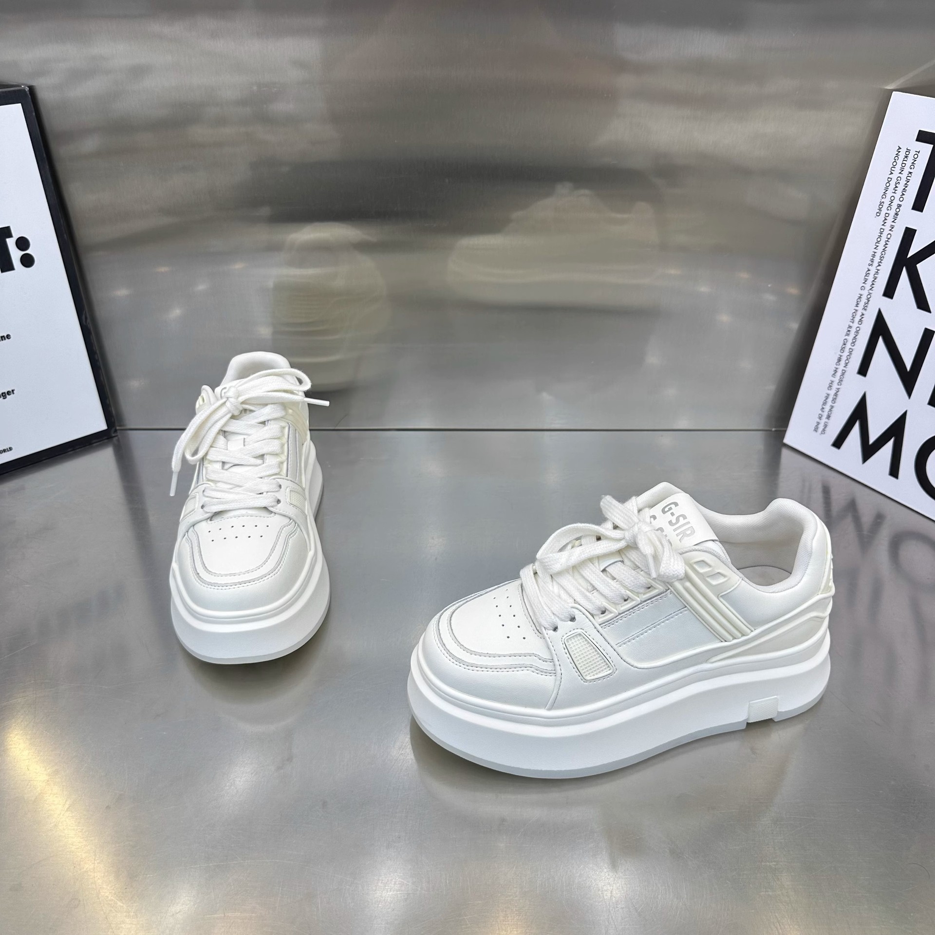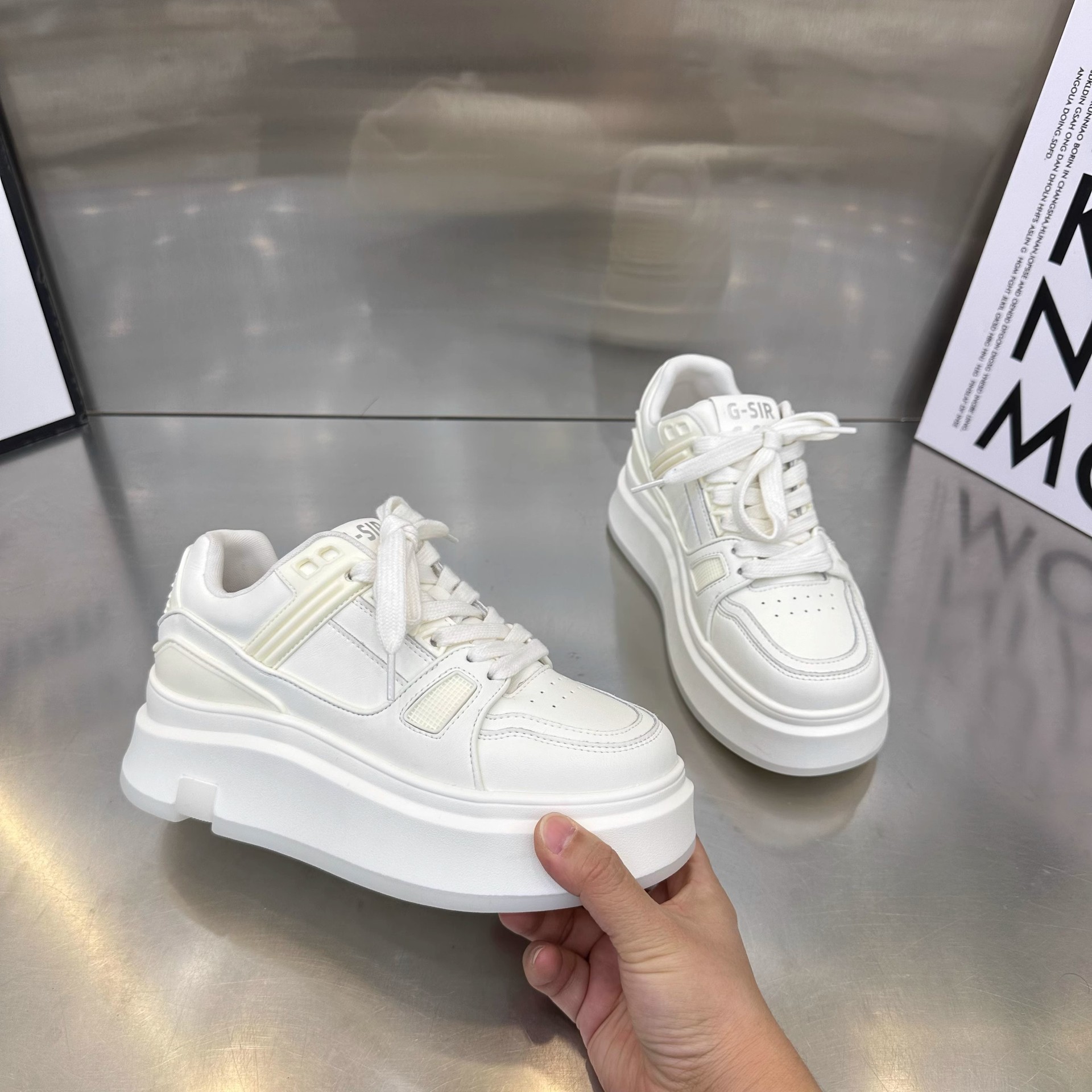 여성을위한 세련된 흰색 신발 2025 봄 새로운 두꺼운 밑창 캐주얼 신발 다목적 경량 레이스 업 운동화 플랫폼 신발