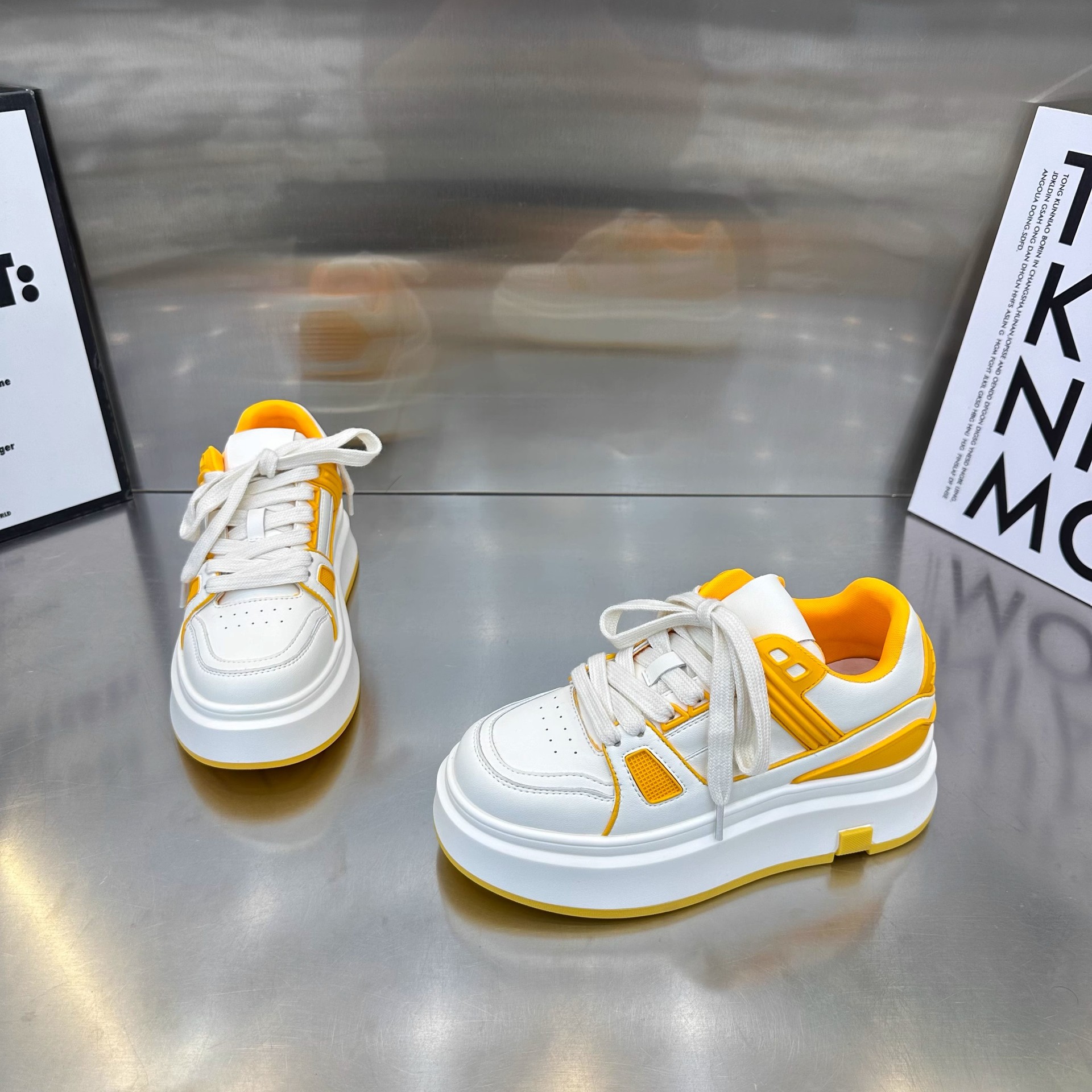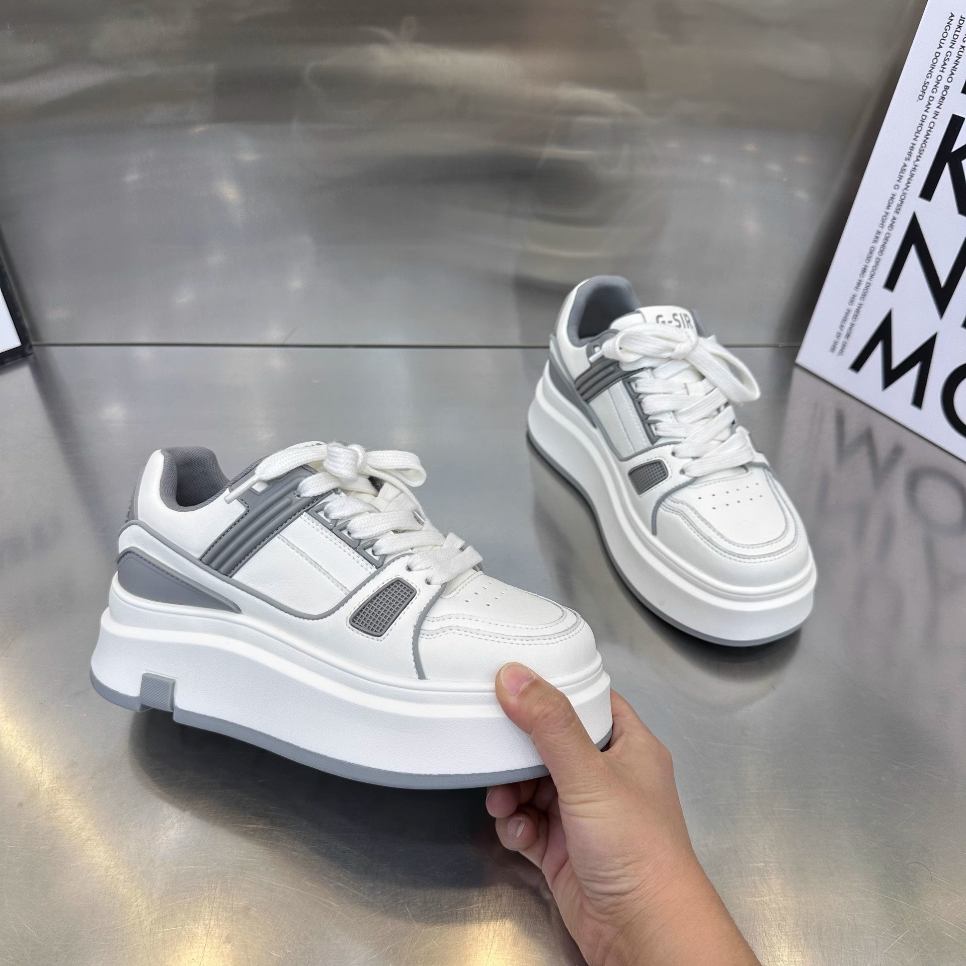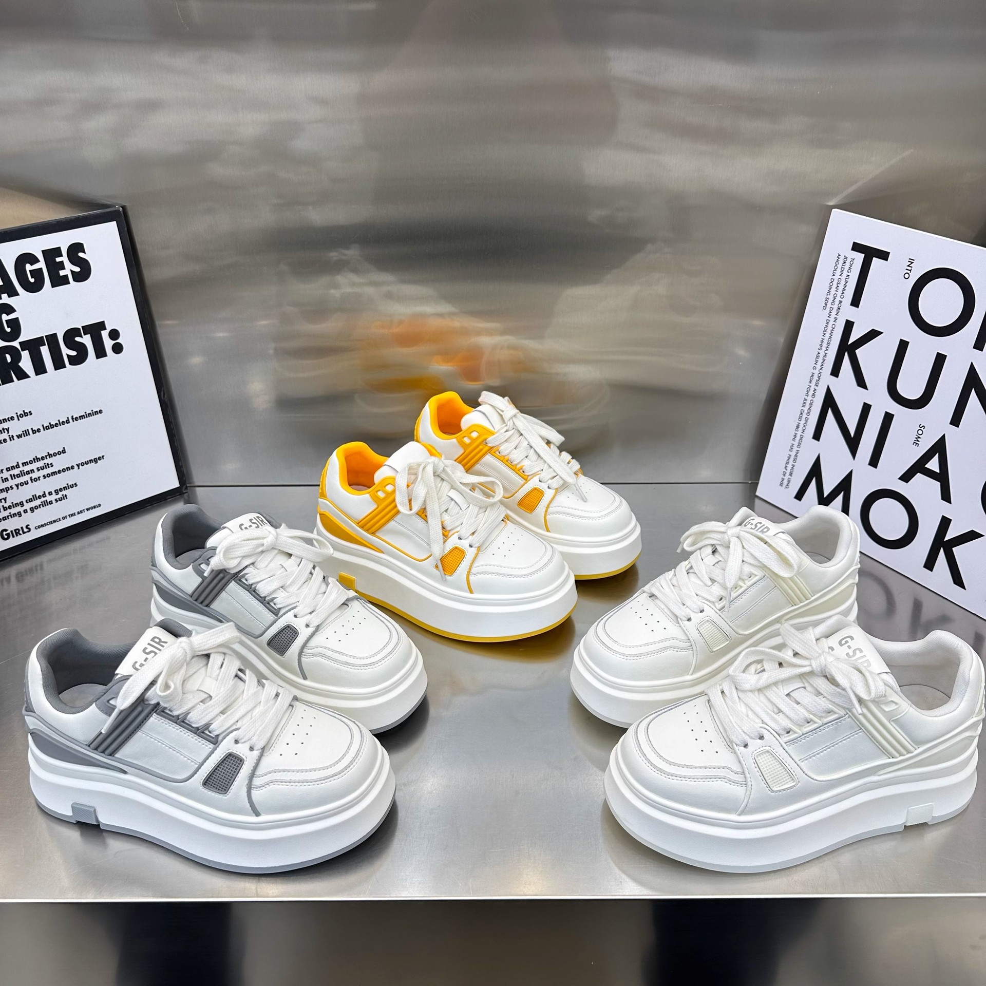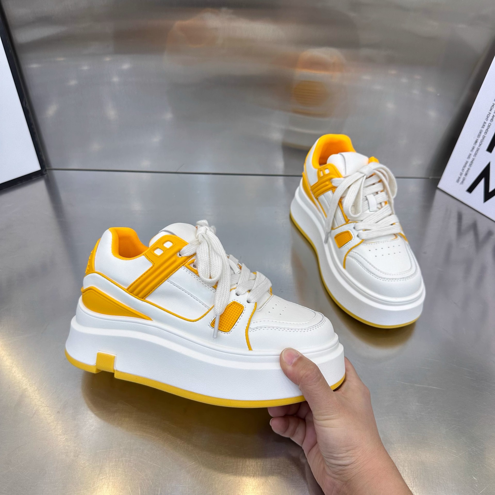 여성을위한 세련된 흰색 신발 2025 봄 새로운 두꺼운 밑창 캐주얼 신발 다목적 경량 레이스 업 운동화 플랫폼 신발