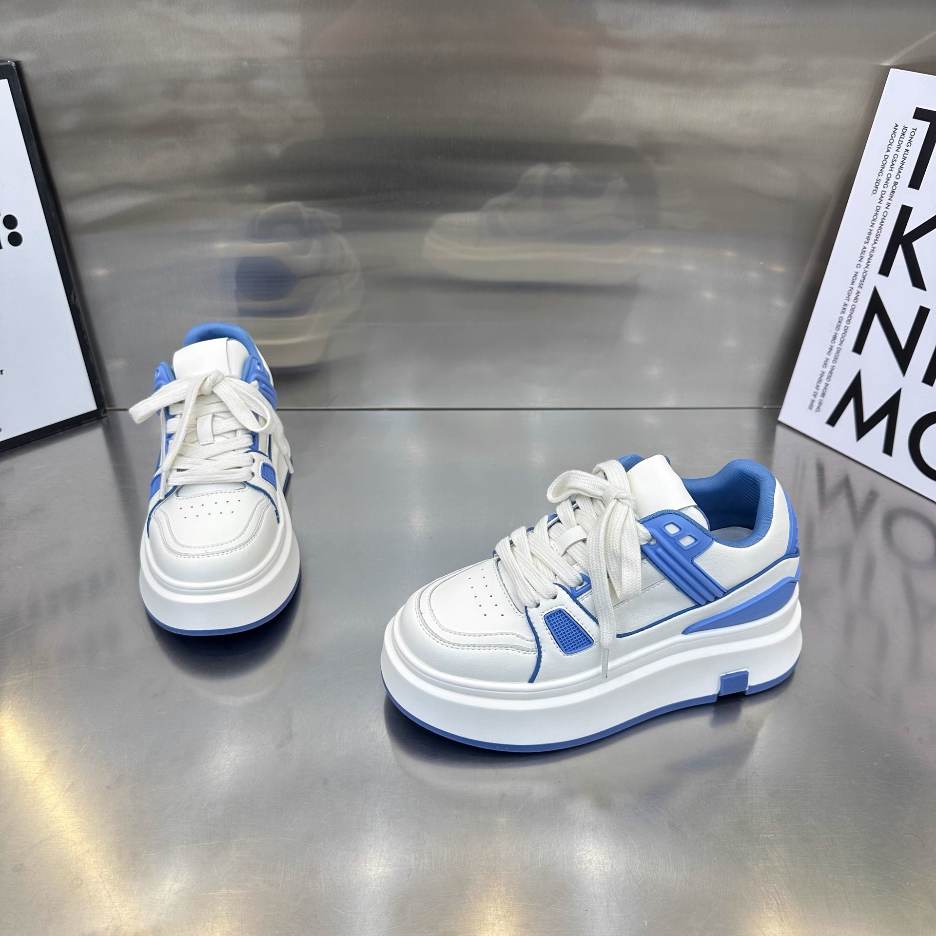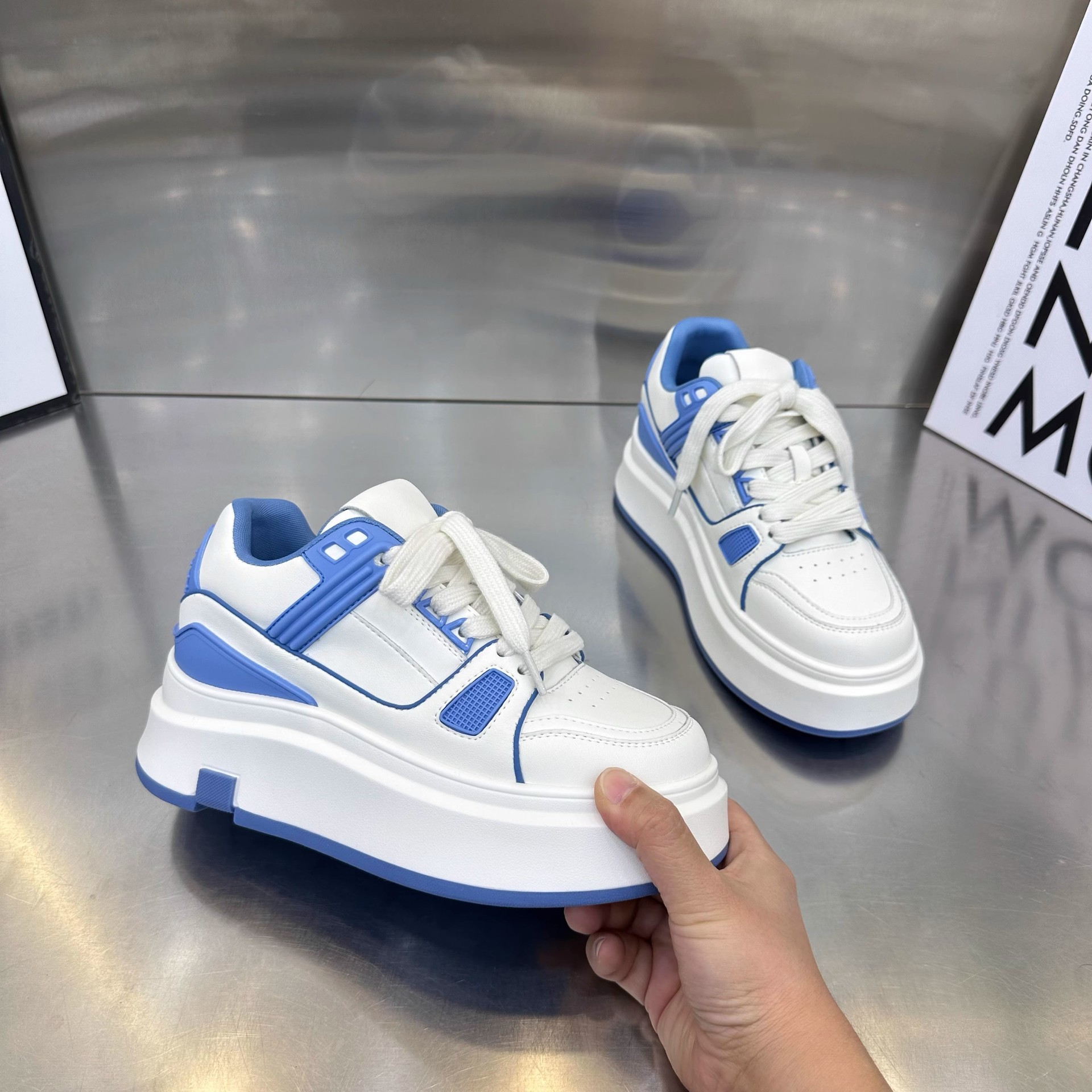 여성을위한 세련된 흰색 신발 2025 봄 새로운 두꺼운 밑창 캐주얼 신발 다목적 경량 레이스 업 운동화 플랫폼 신발스토어 가기