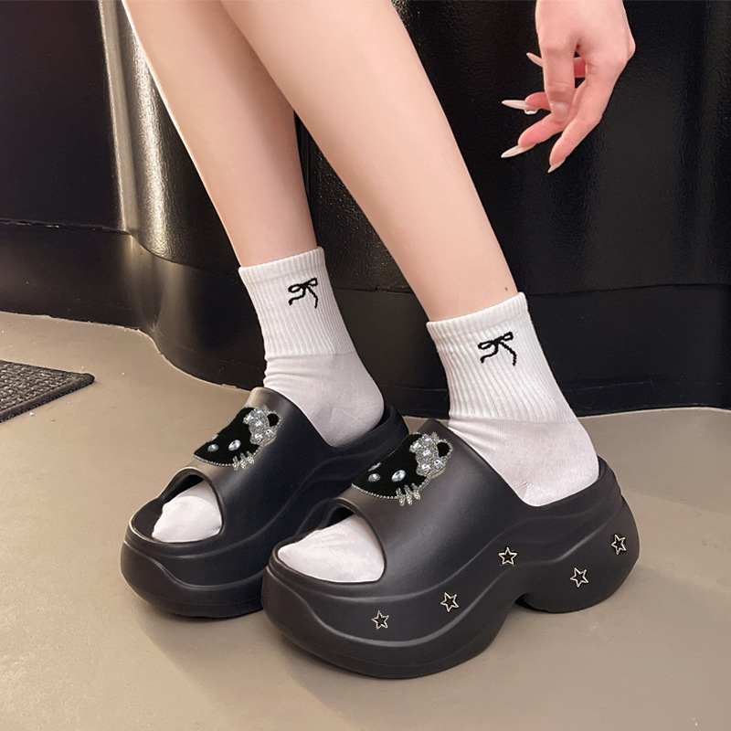 여성을위한 두꺼운 밑창 슬리퍼 여름 새로운 스타일 증가 미끄럼 방지 2025 새로운 실내 및 실외 착용 작은 사람들을위한 부드러운 밑창 슬리퍼스토어 가기