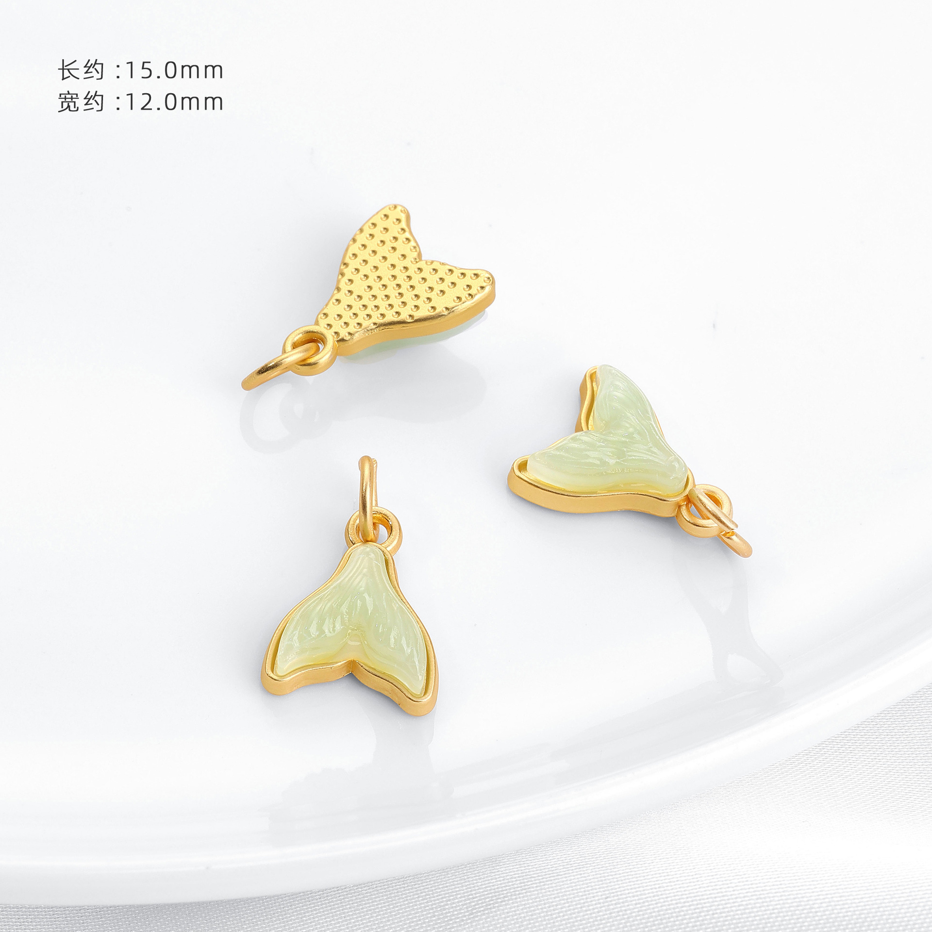 • 5 # 매트 골드 고래 꼬리 옥 펜던트 12mmx15mm