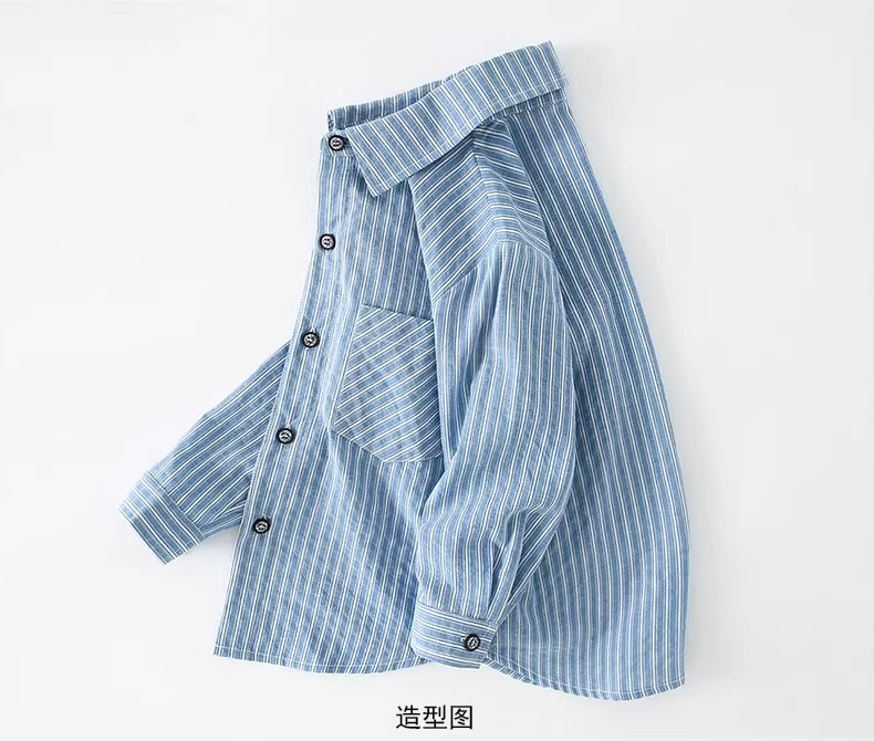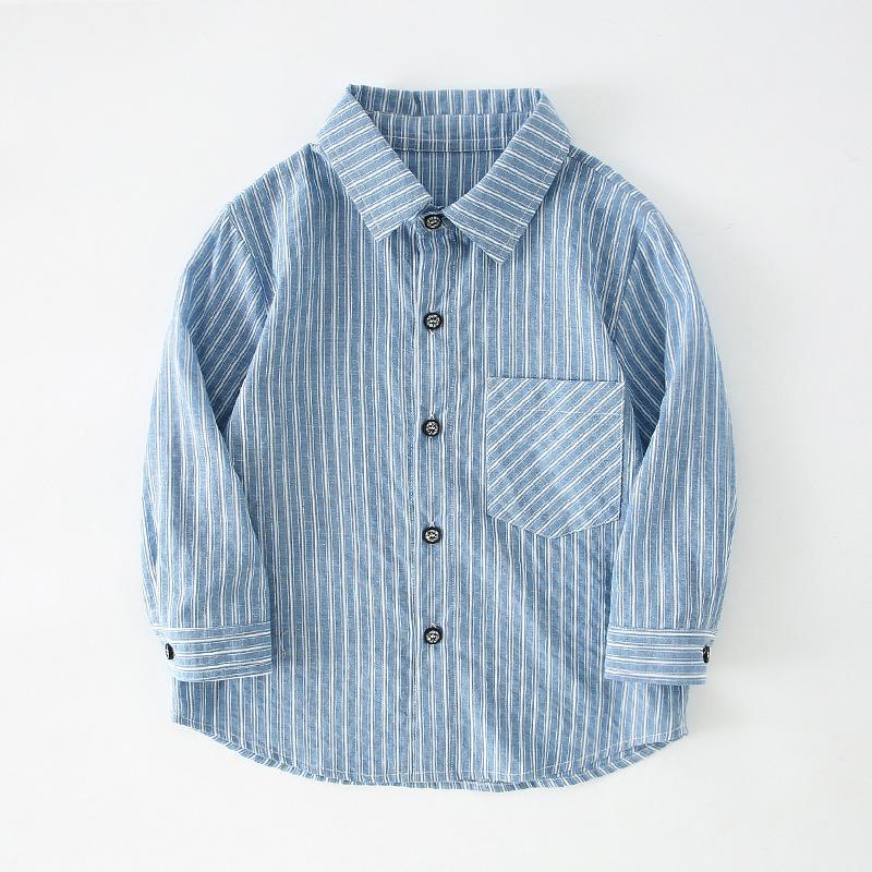 소년 셔츠 긴팔 봄, 가을 2025 새로운 스타일 레드 스타일 봄 캐주얼 재킷 어린이 파란색 줄무늬 셔츠스토어 가기