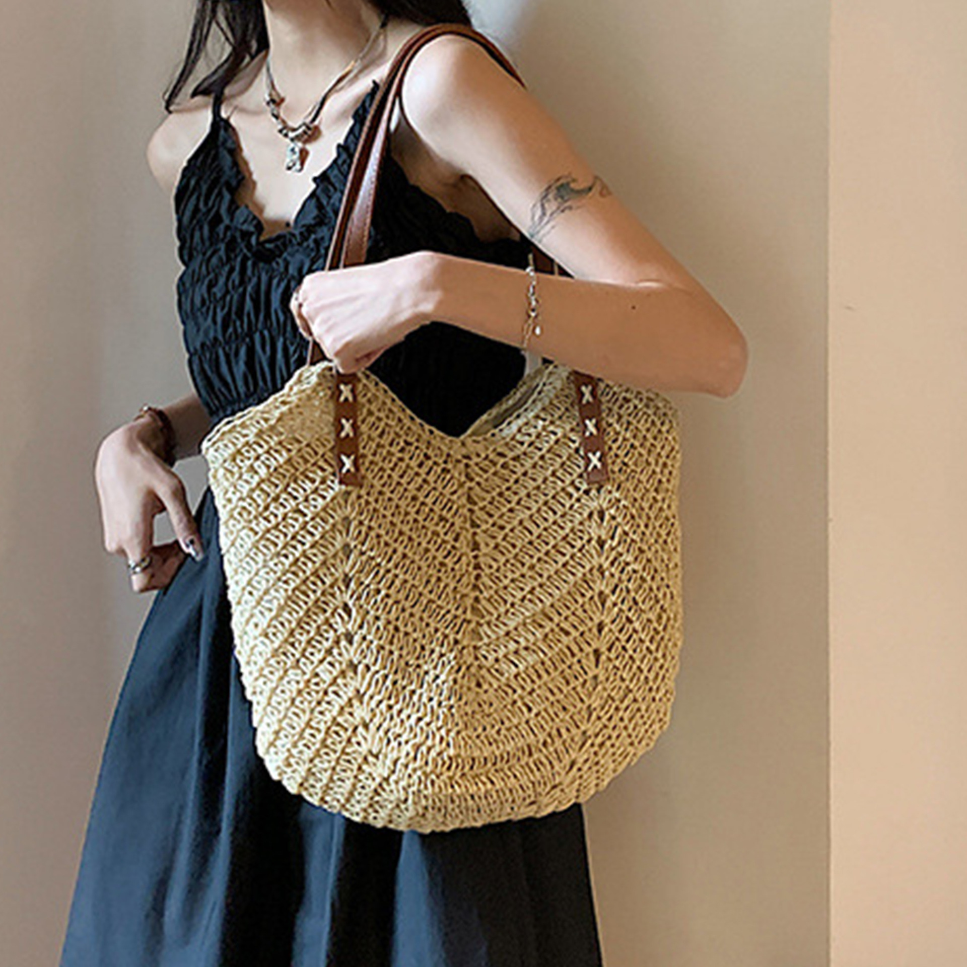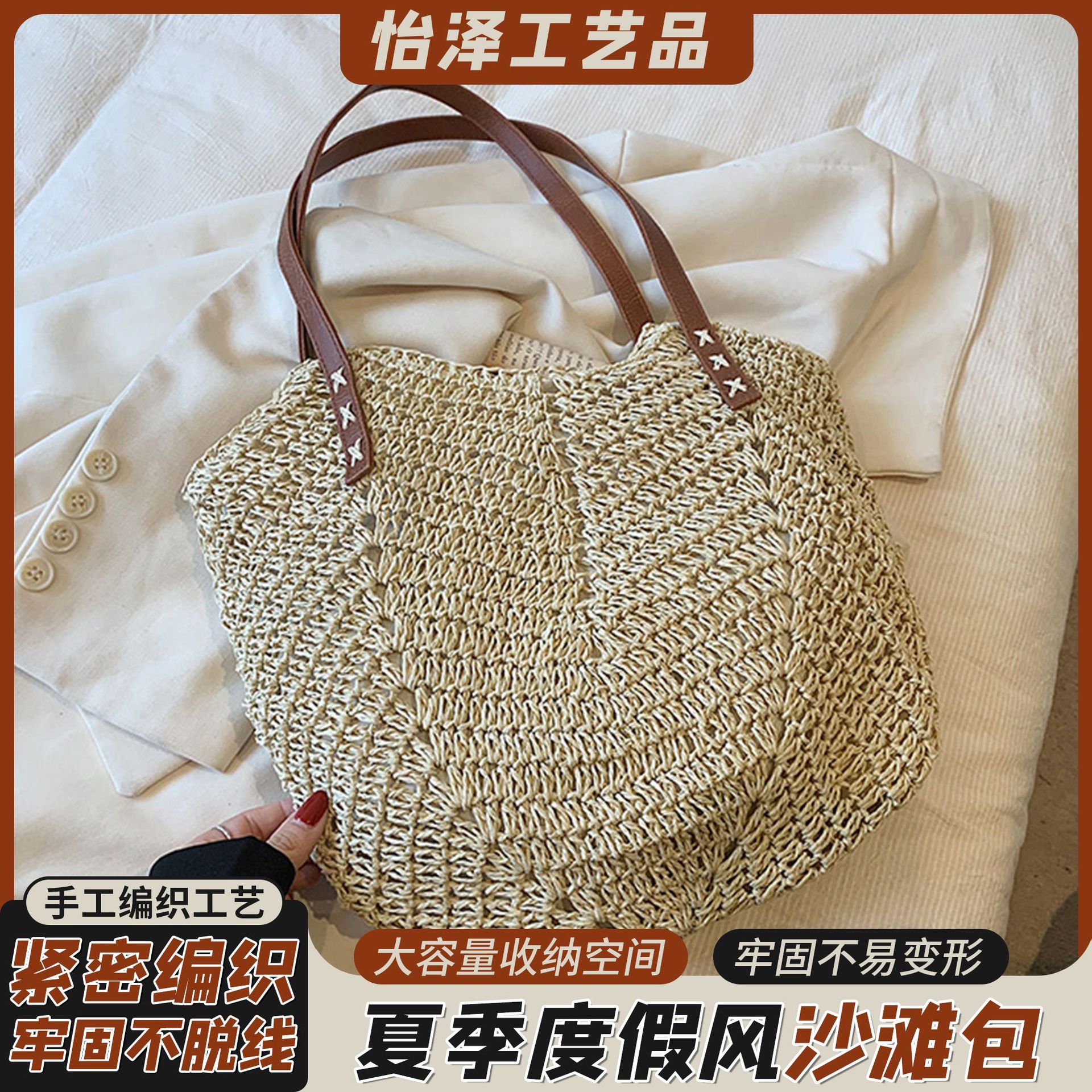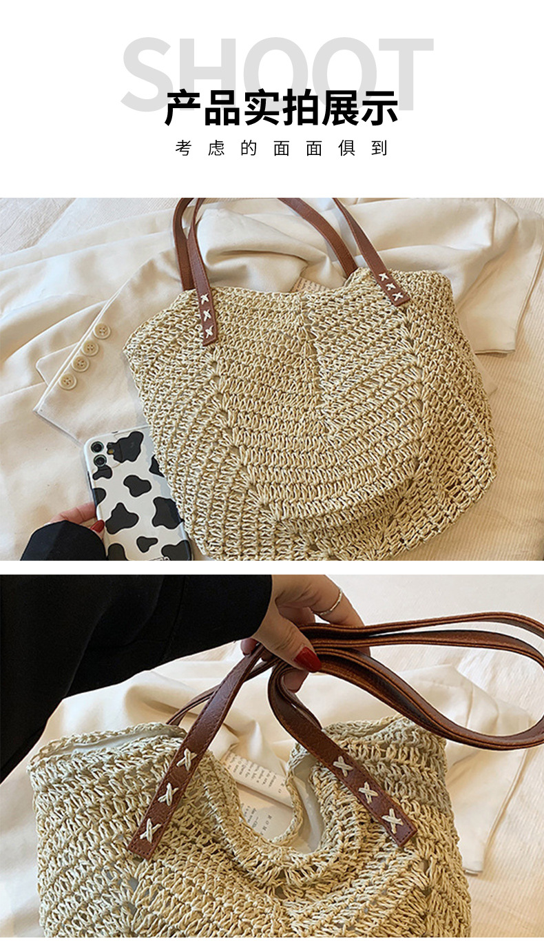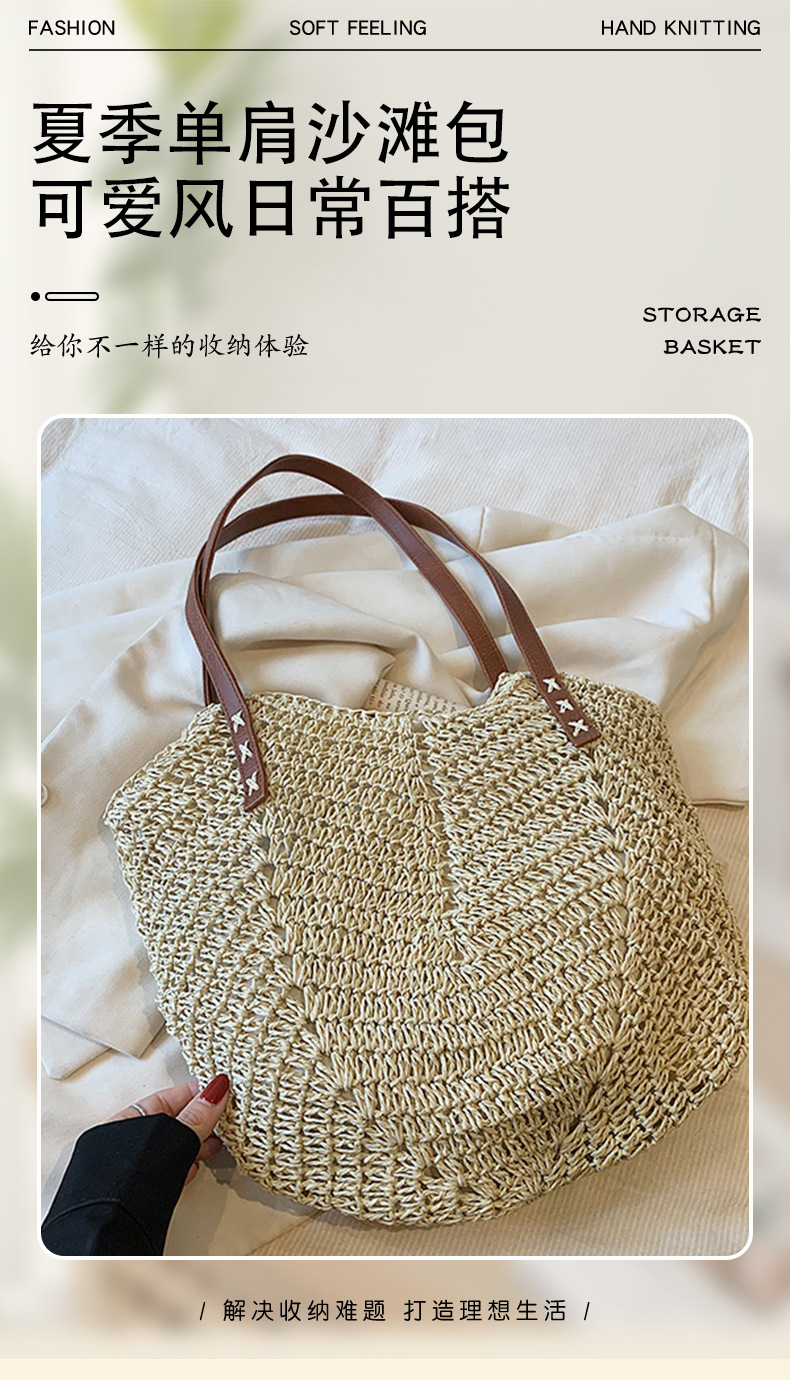 밀짚 가방, 비치 백, 핸드백, 짠 가방, 숄더백, 휴가 토트 백, 심플하고 다재다능한 패션 제조업체 도매스토어 가기