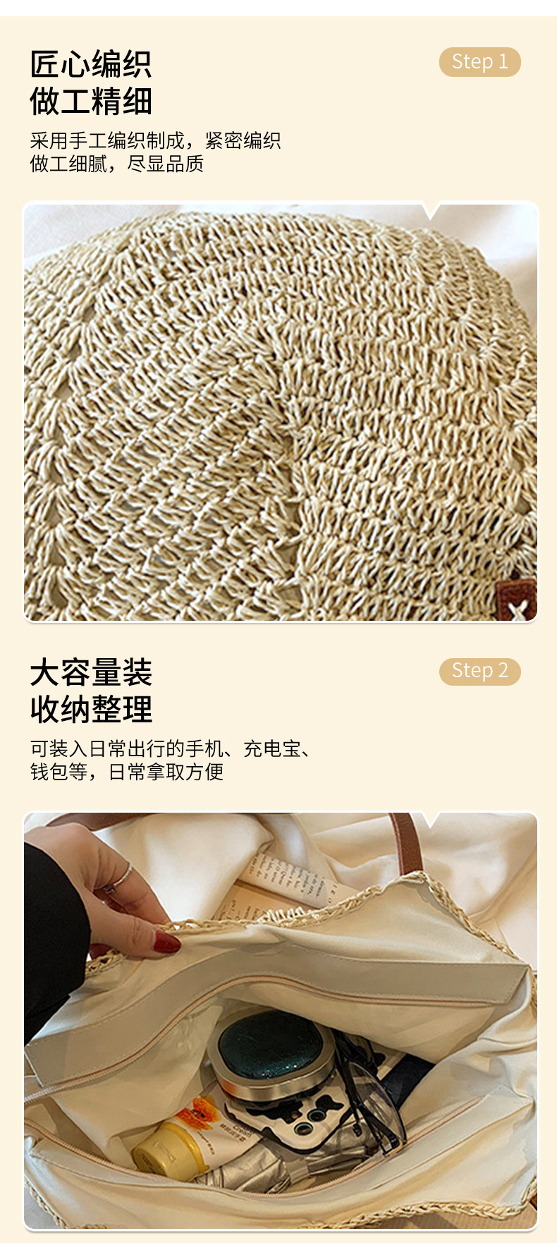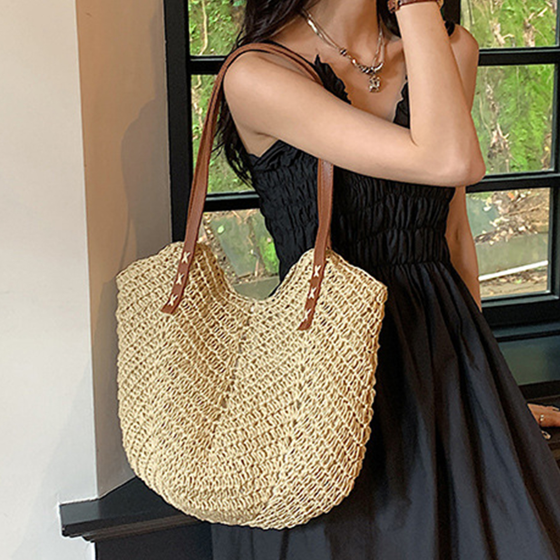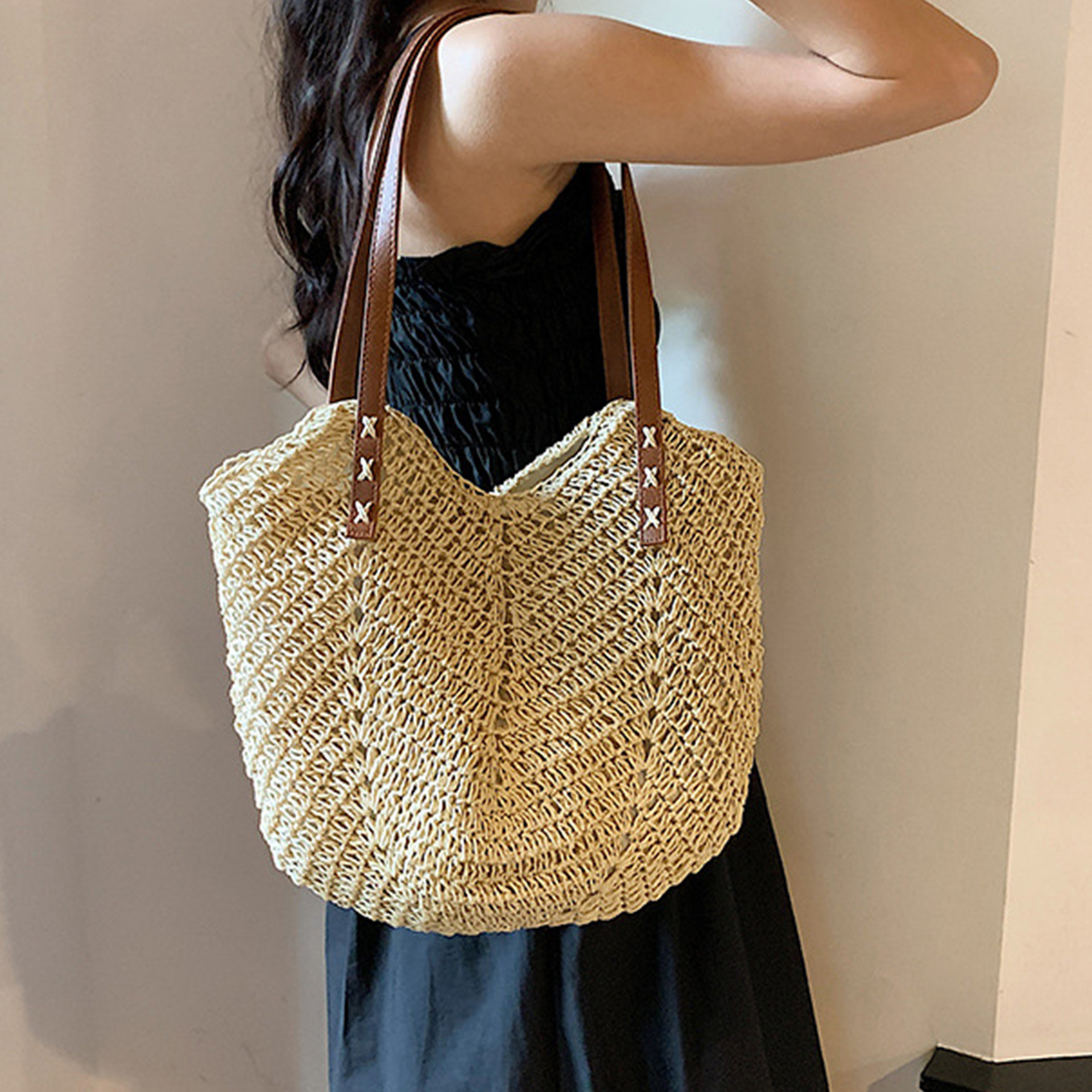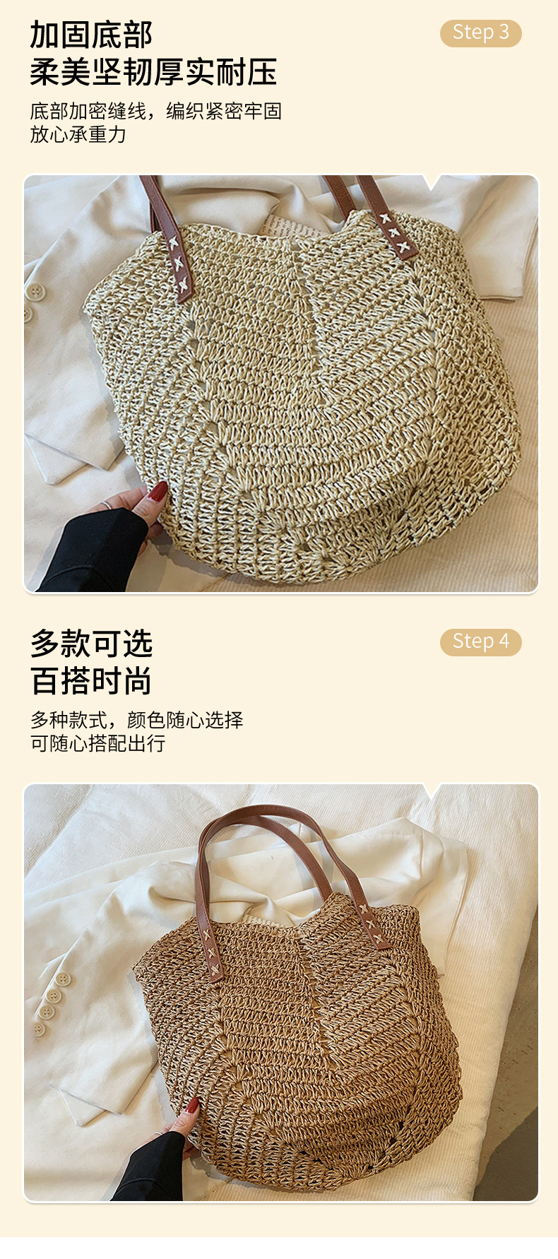밀짚 가방, 비치 백, 핸드백, 짠 가방, 숄더백, 휴가 토트 백, 심플하고 다재다능한 패션 제조업체 도매스토어 가기