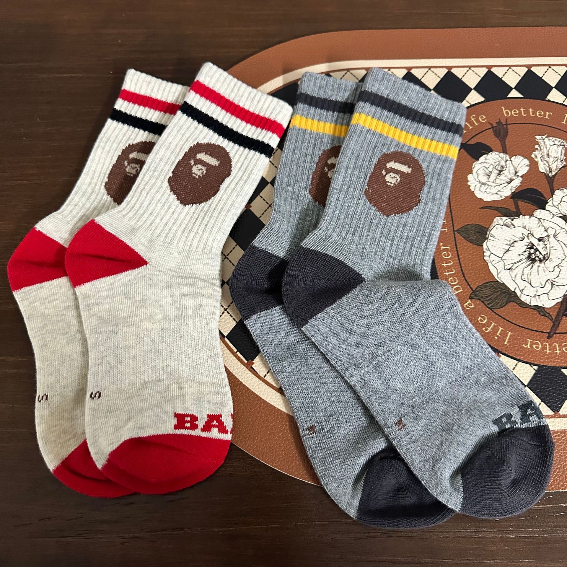 HS 반환 없음 변경 없음 2025 원숭이 양말 높은 배럴 스포츠 양말 유행 브랜드 만화 소년과 소년의 아이 양말 자수
