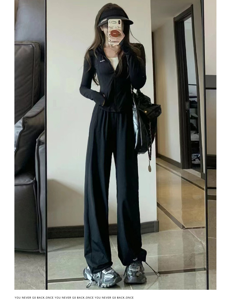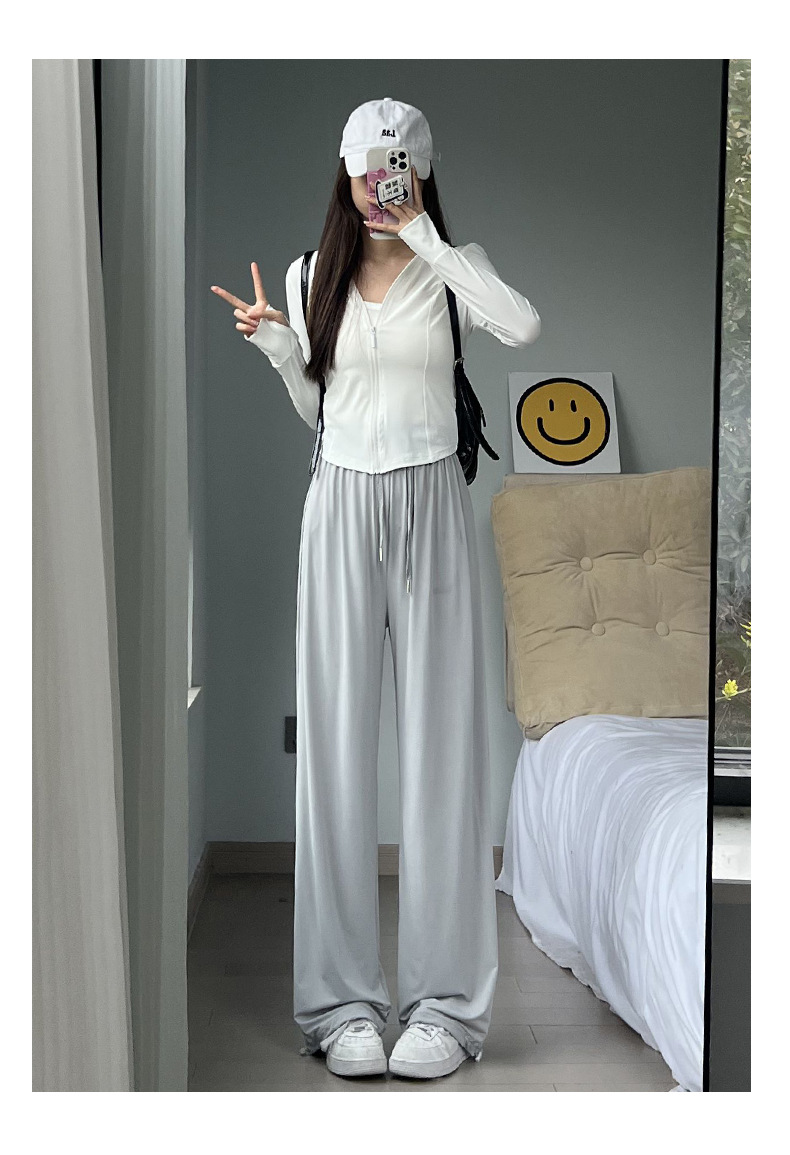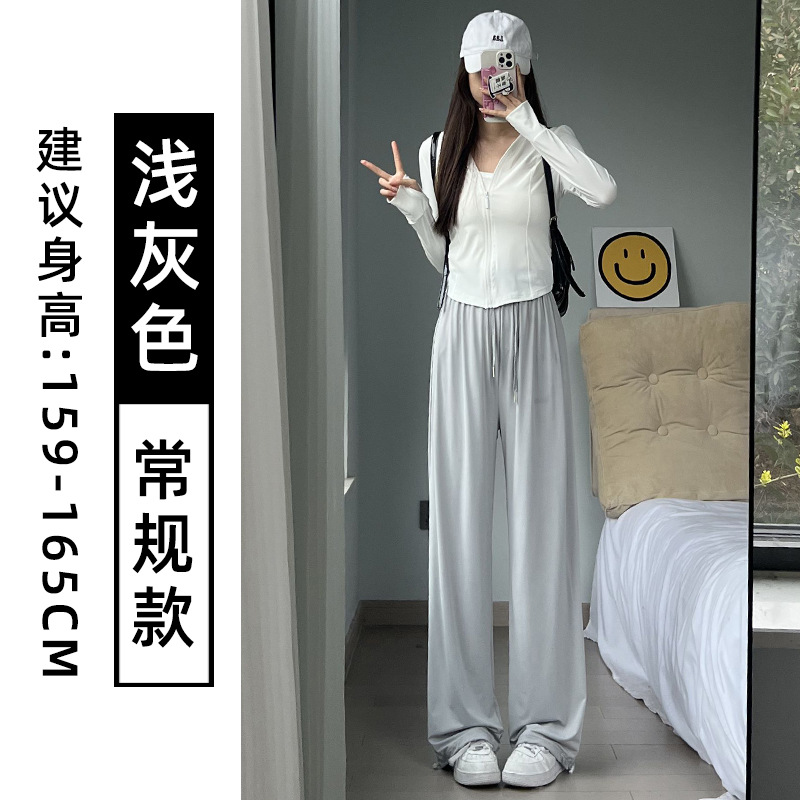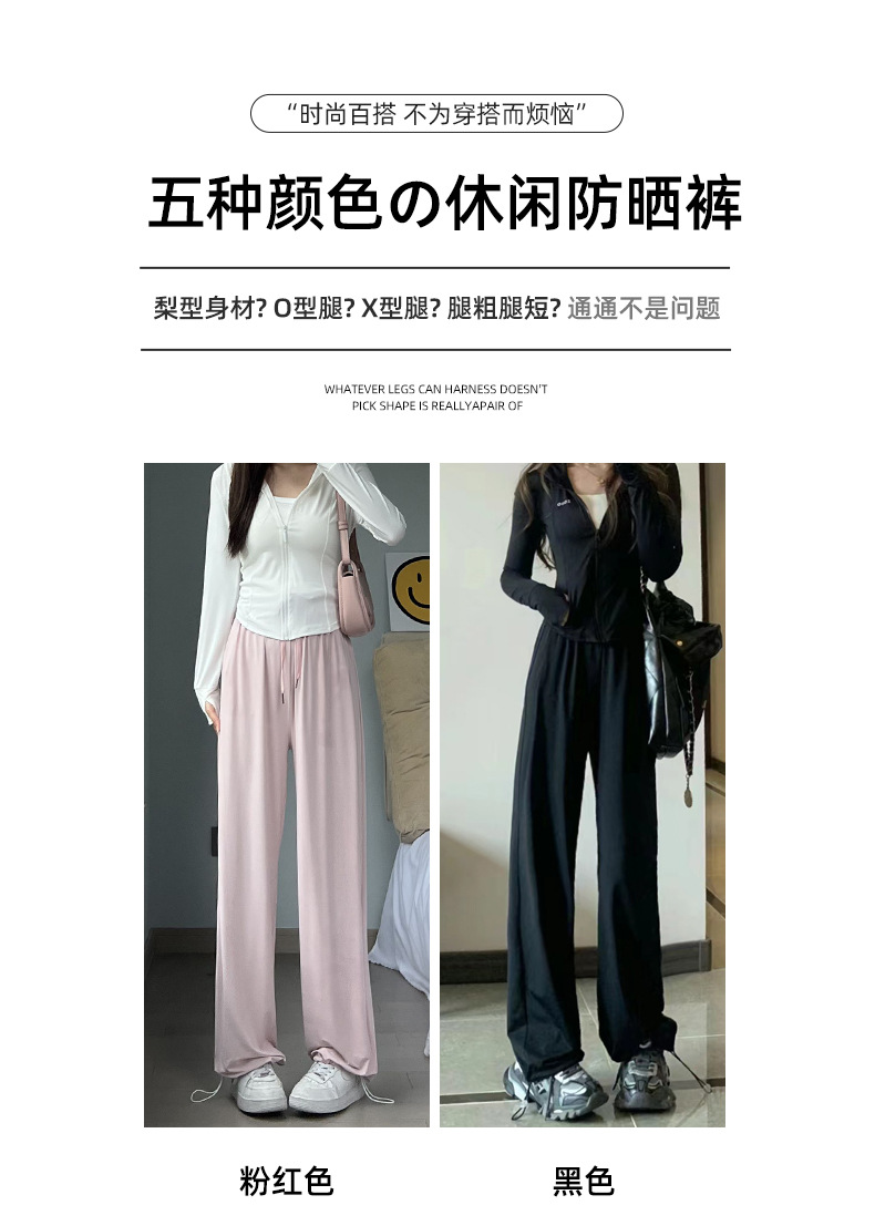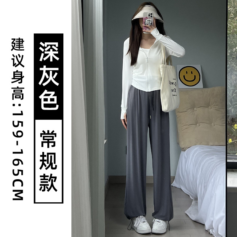 黑色防晒裤女夏2025新款高腰垂感直筒休闲阔腿裤抽绳冰丝运动裤子스토어 가기