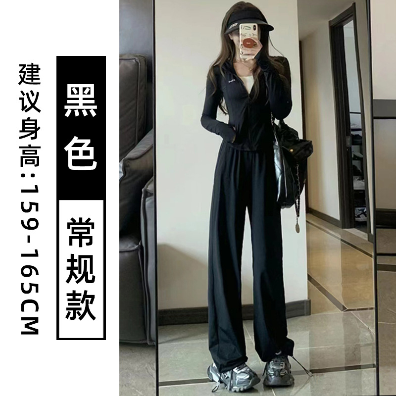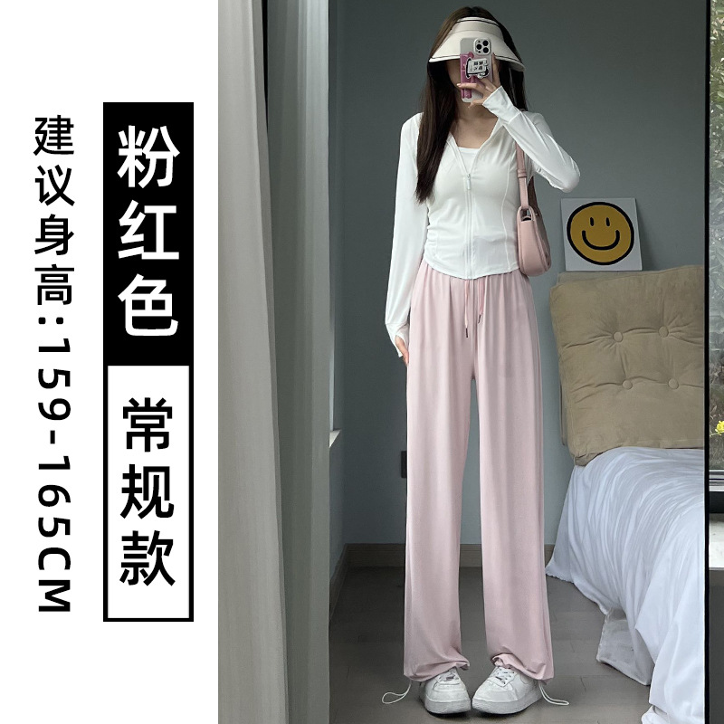 黑色防晒裤女夏2025新款高腰垂感直筒休闲阔腿裤抽绳冰丝运动裤子