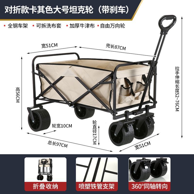• 캠퍼밴은 견고하고 내구성이 뛰어납니다. + 접이식 테이블] - 대형 10inch 탱크 휠(더블 브레이크) 카키