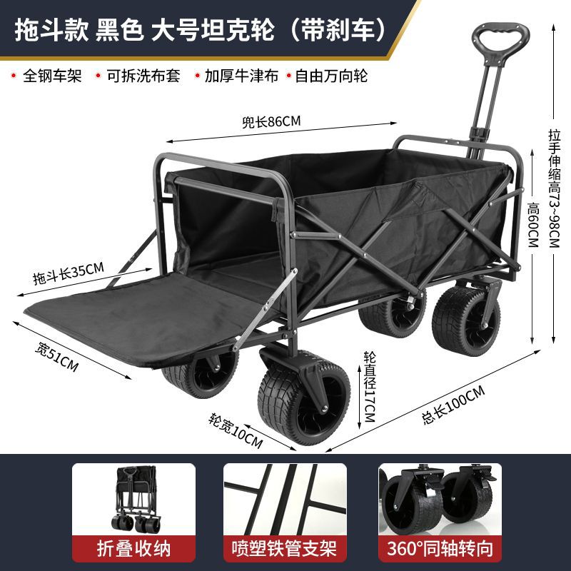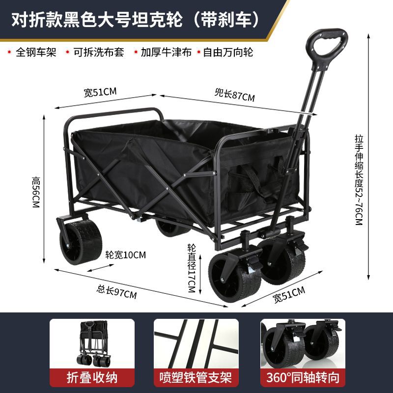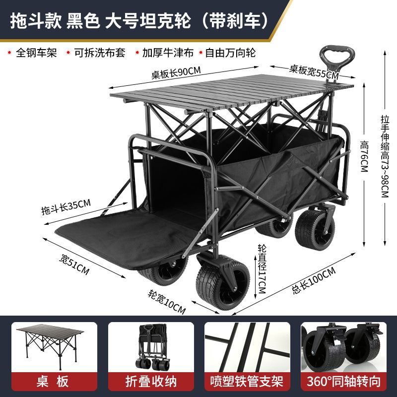 • 캠퍼밴은 견고하고 내구성이 뛰어납니다. + 접이식 테이블] - 대형 10inch 탱크 휠(더블 브레이크) 블랙