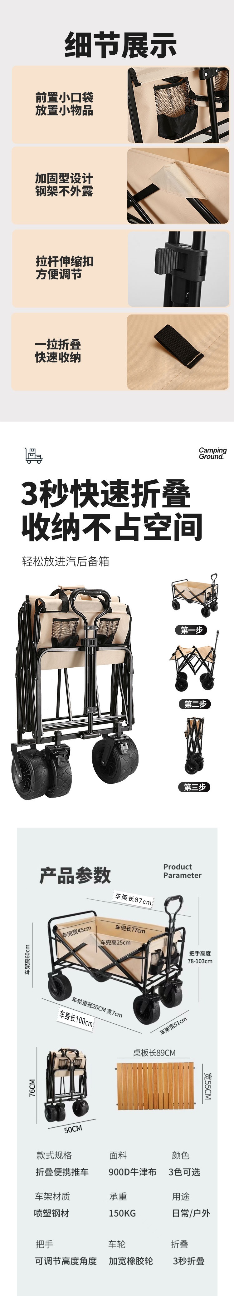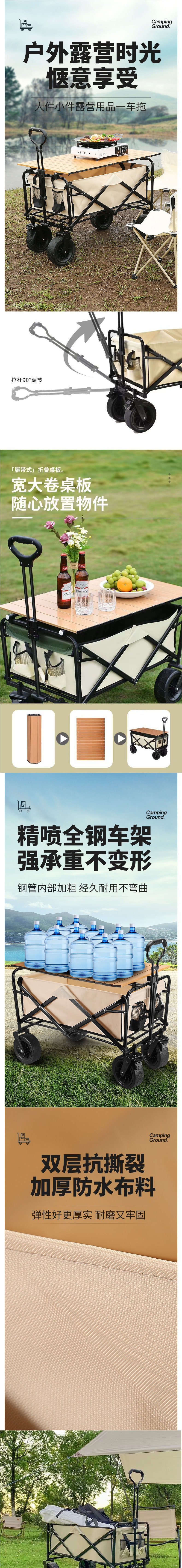 • 캠퍼밴은 견고하고 내구성이 뛰어납니다. + 접이식 테이블] - 후면 개방형 - 대형 10inch 탱크 휠(더블 브레이크) 카키