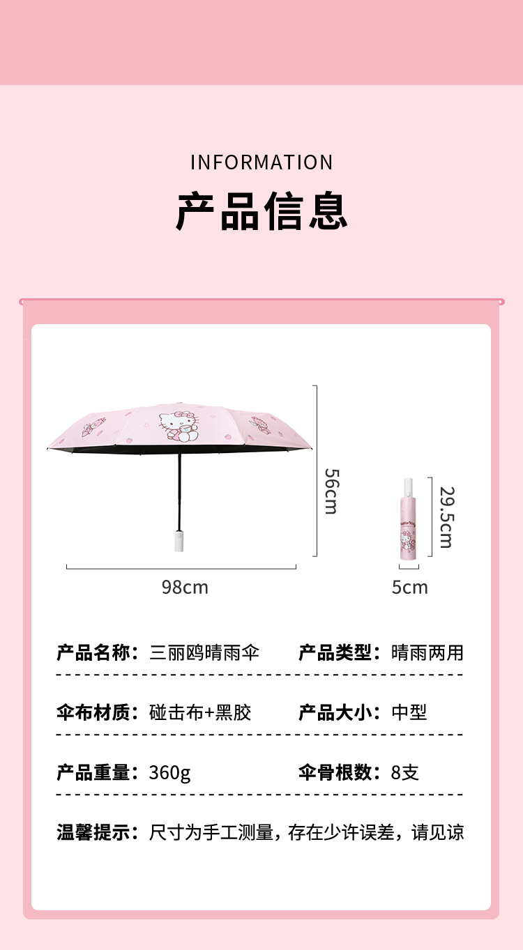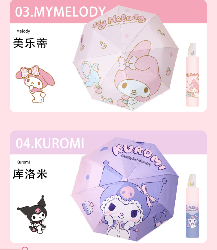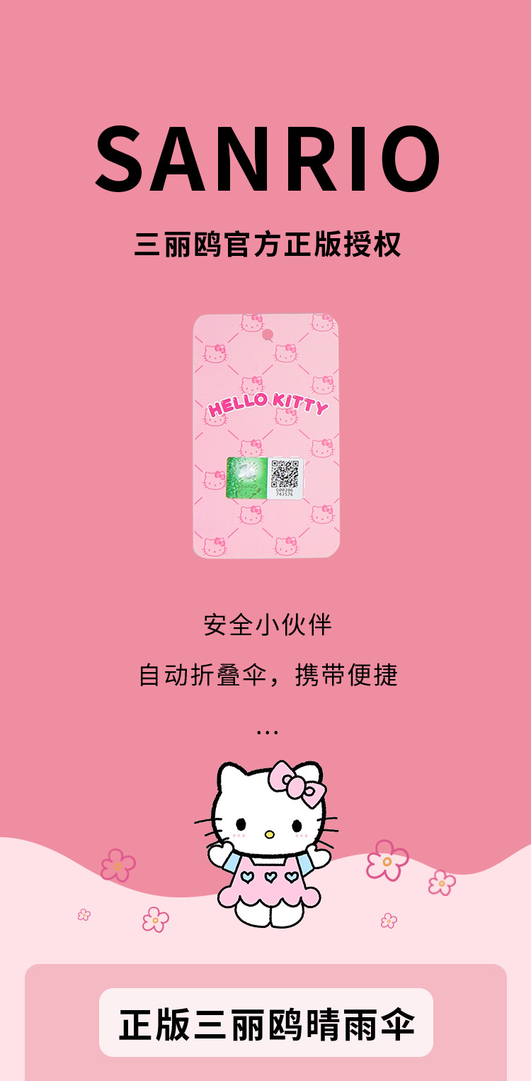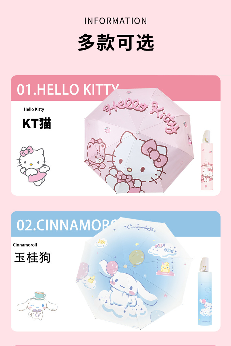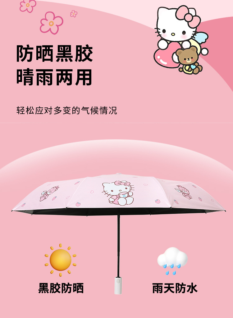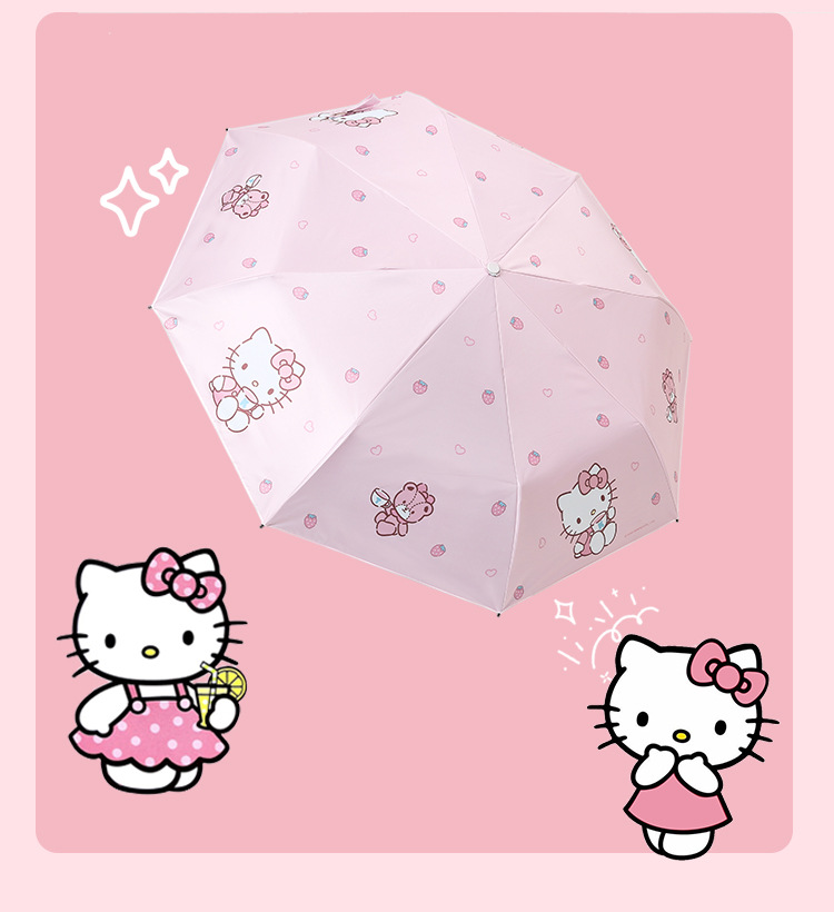 정품 산리오 어린이 안전 반동 자동 우산 헬로 키티 선 우산 초중고 학생용