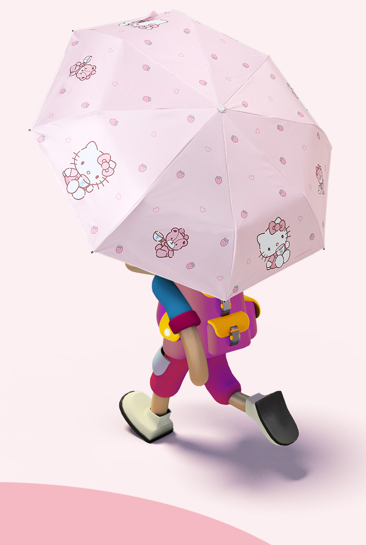 정품 산리오 어린이 안전 반동 자동 우산 헬로 키티 선 우산 초중고 학생용스토어 가기