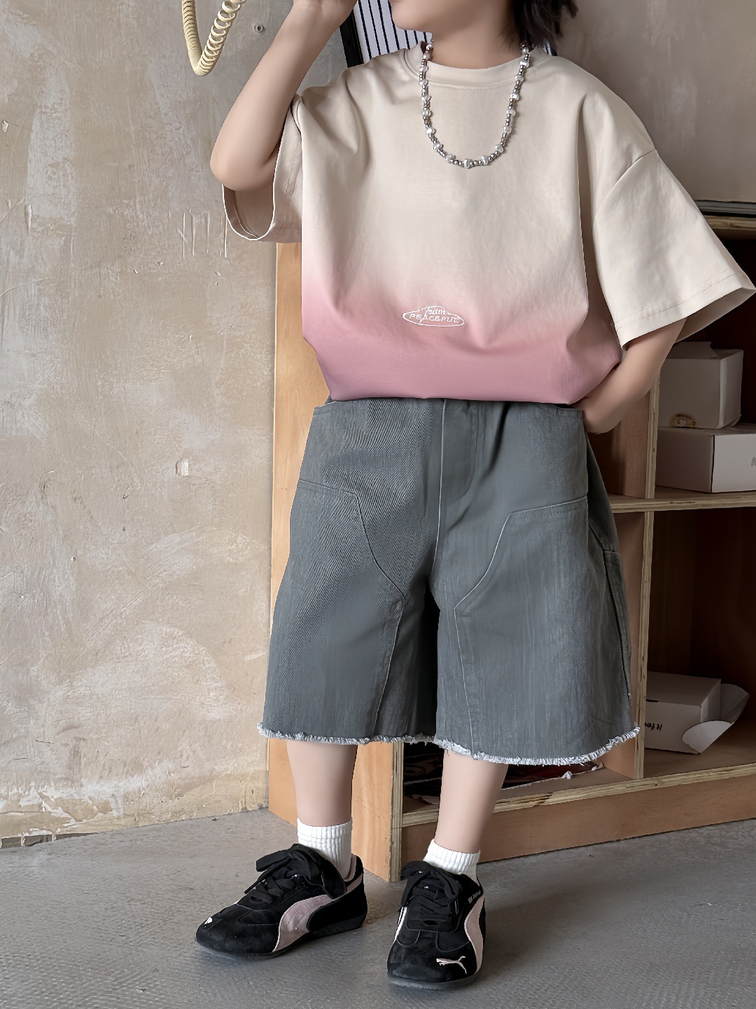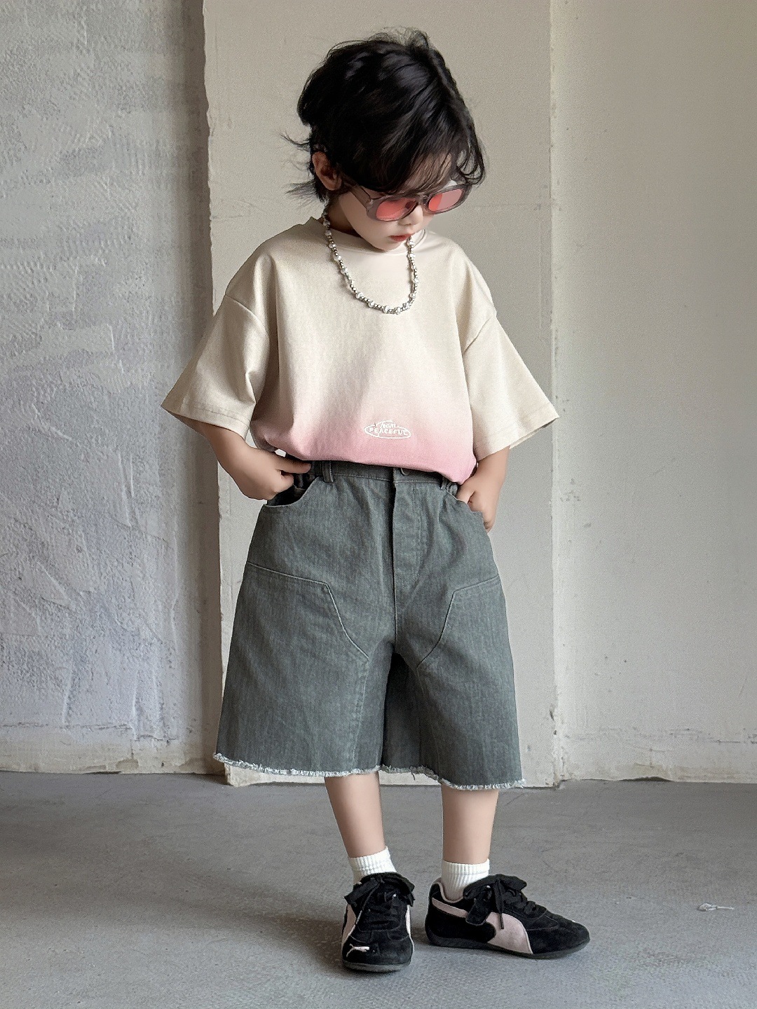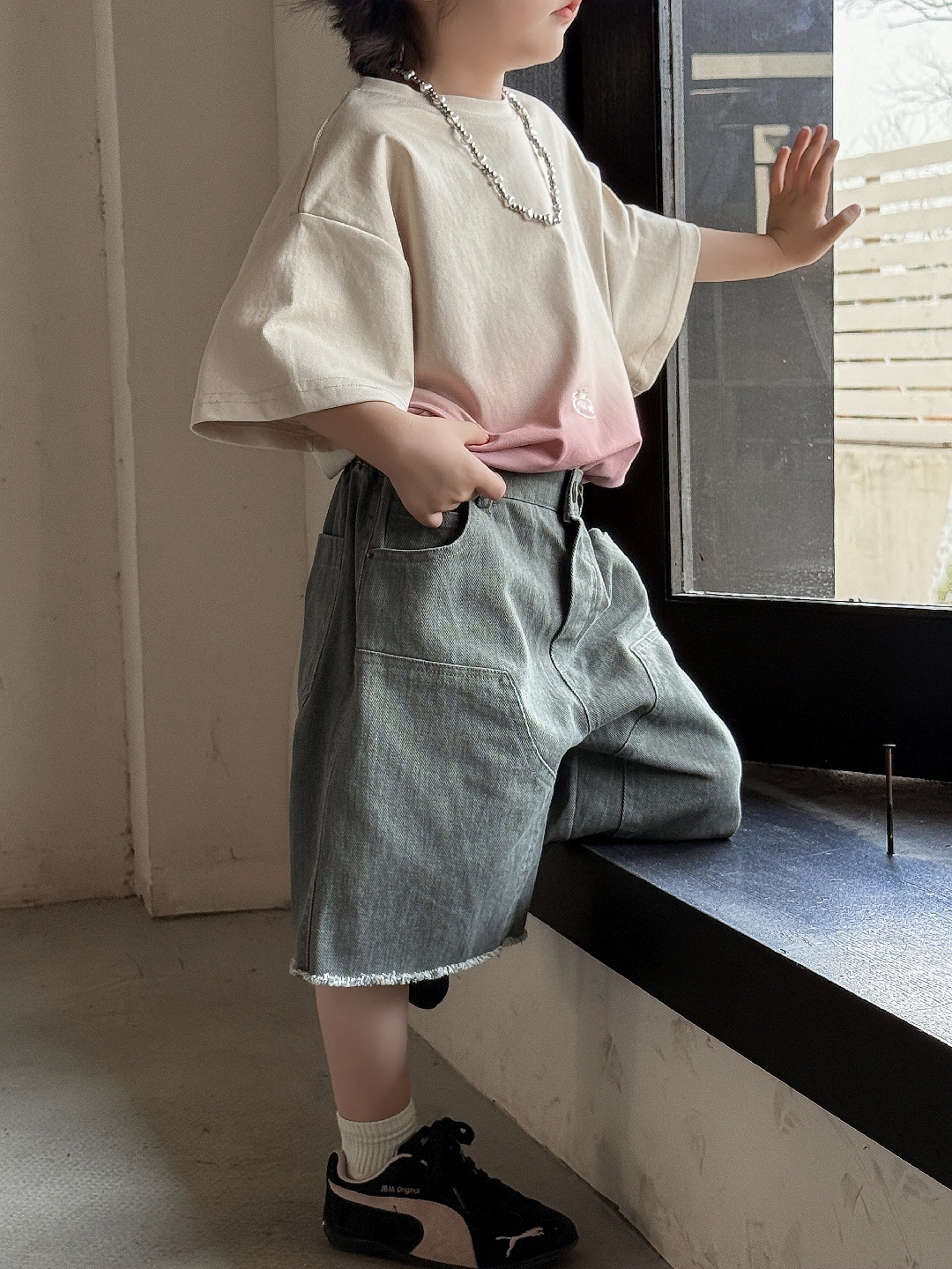 2025 년 여름 소년 새로운 소년 레트로 데님 슬리밍 느슨한 캐주얼 와이드 레그 반바지 유행 프라이드 컬러