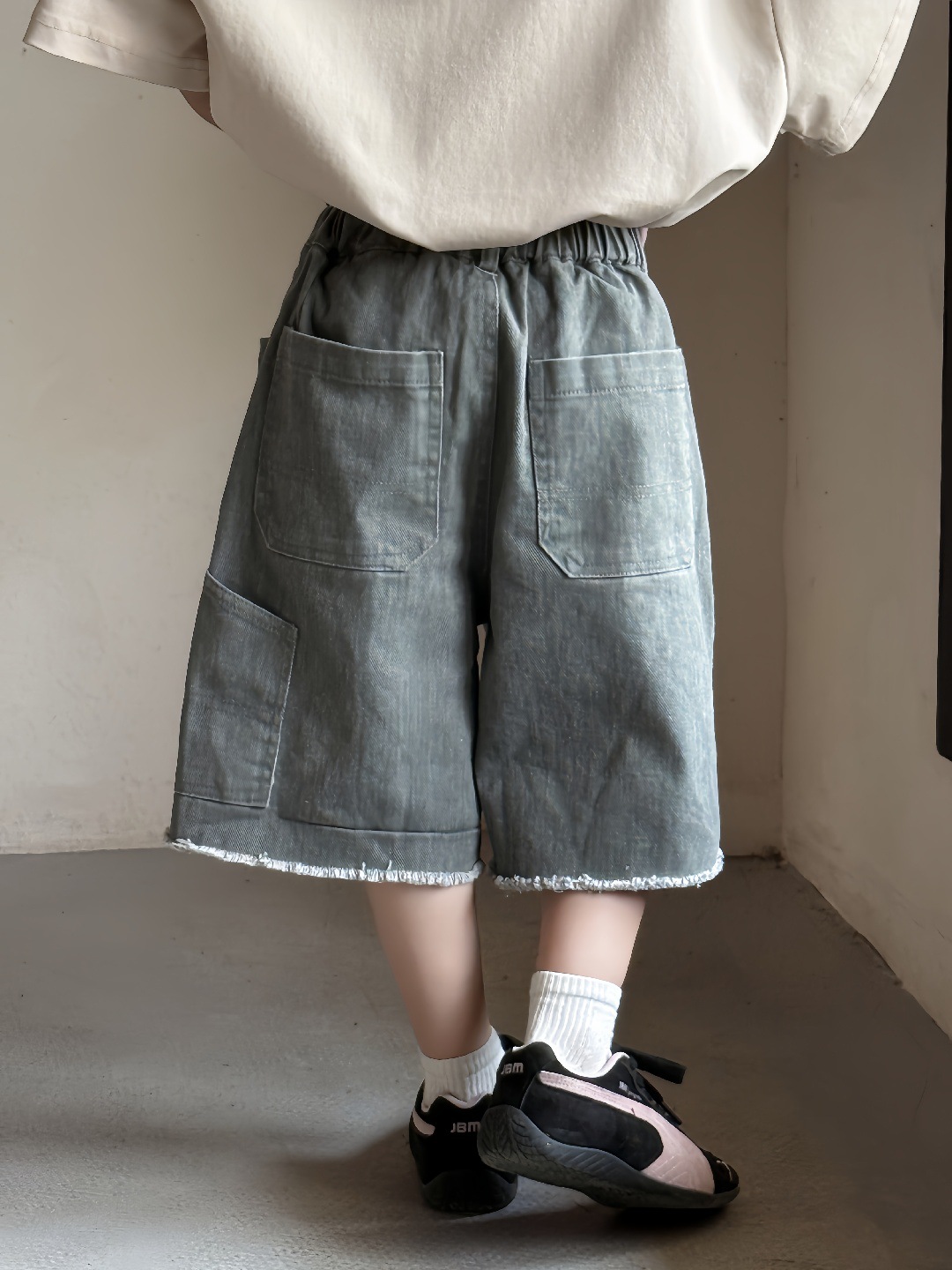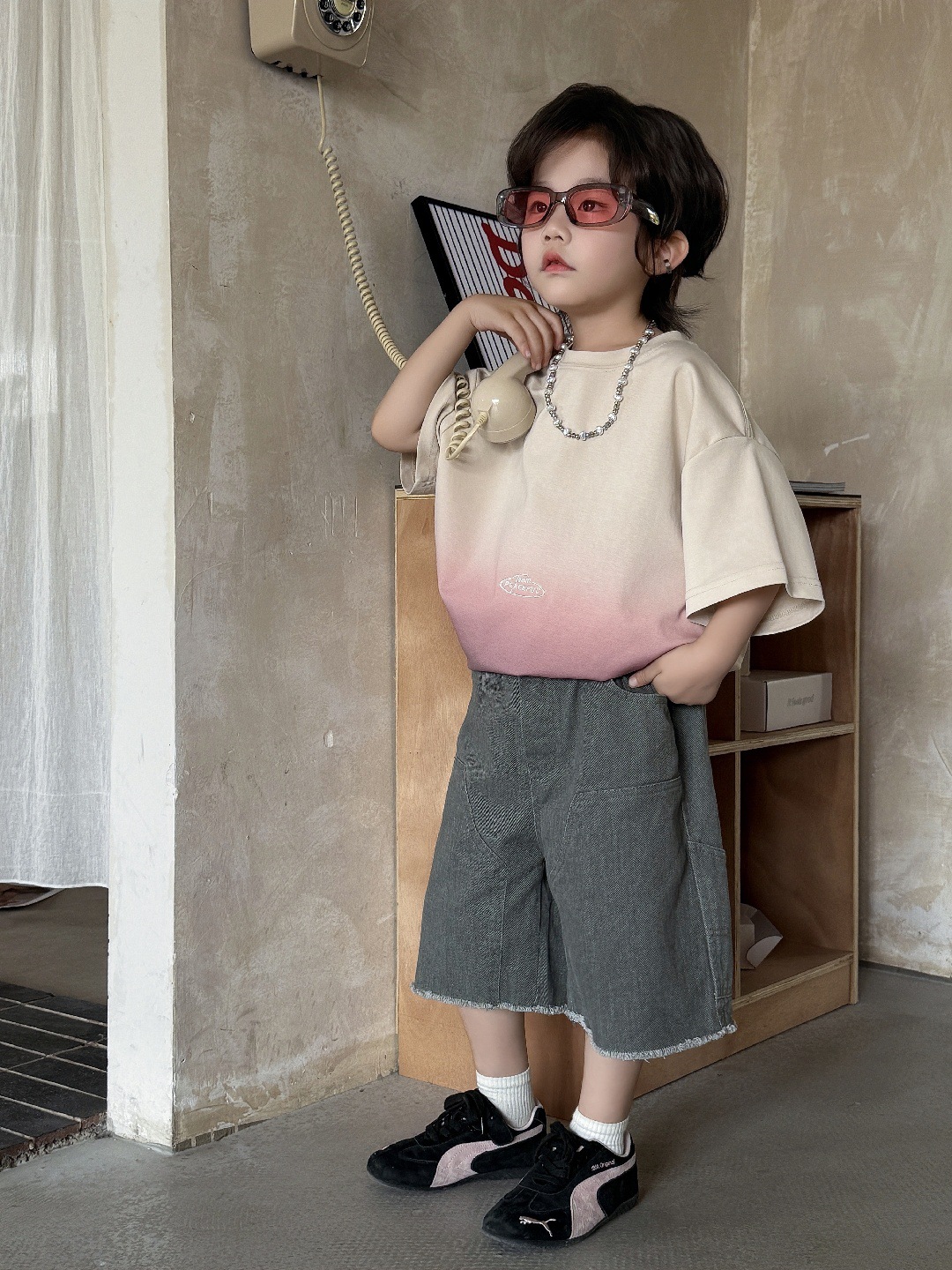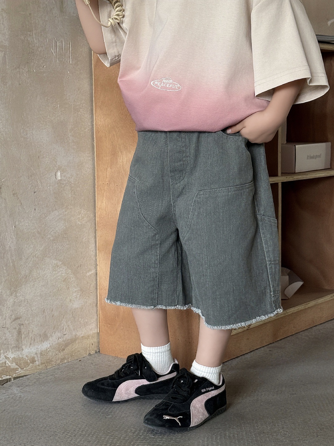 2025 년 여름 소년 새로운 소년 레트로 데님 슬리밍 느슨한 캐주얼 와이드 레그 반바지 유행 프라이드 컬러