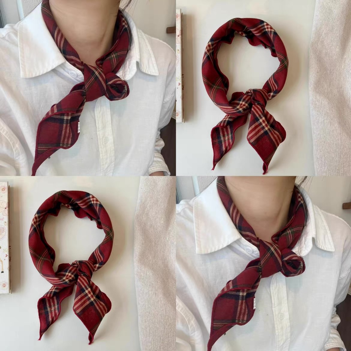 국경을 넘는 일본과 한국의 새로운 면화 및 리넨 플레이드 봄 및 가을 삼각형 스카프 여성의 목가적 스타일 스카프 다기능 액세서리스토어 가기