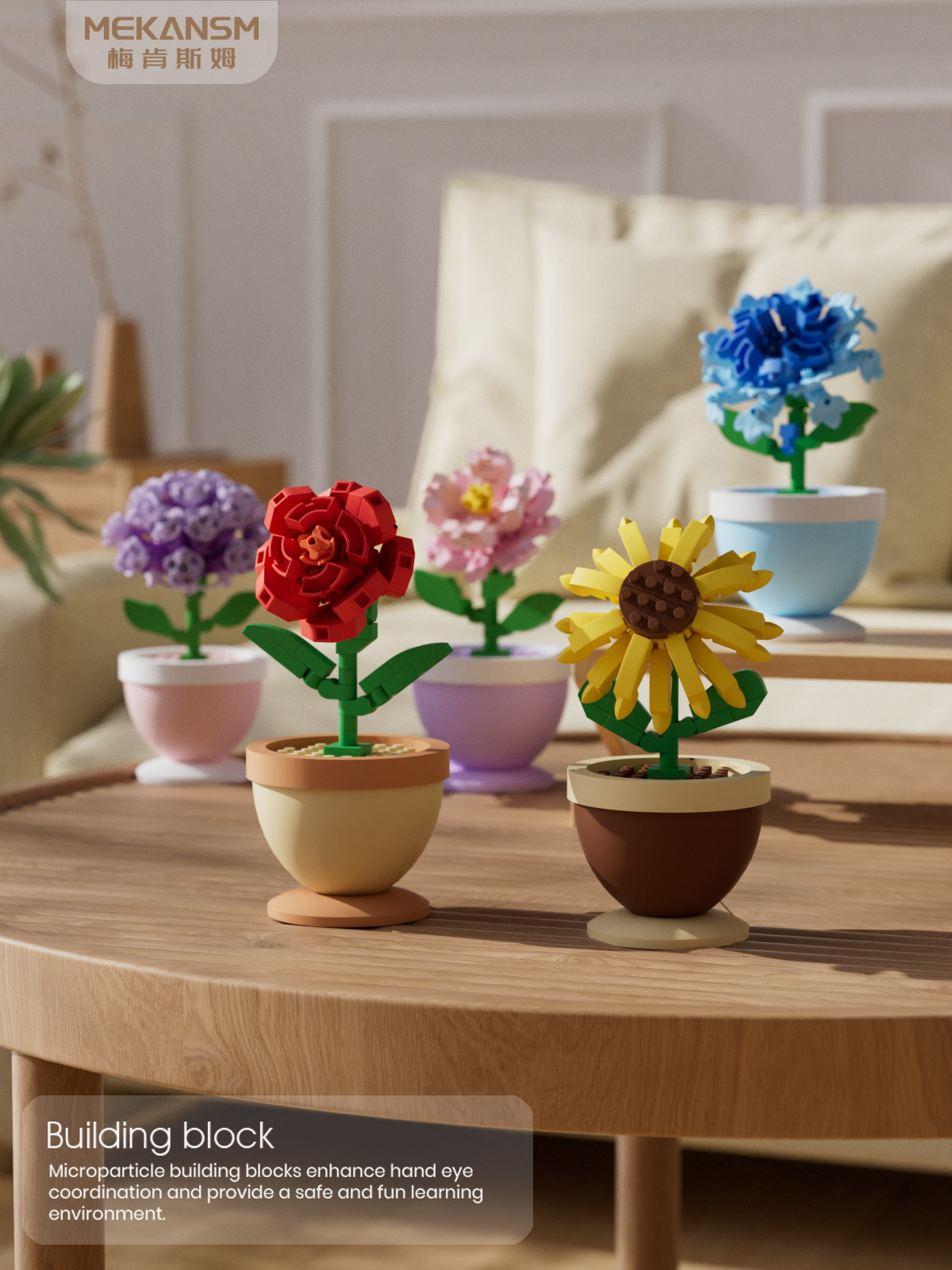 레고 로즈 해바라기 화분 영원한 꽃 건물 블록 장식품 어린이 교육 장난감 소녀의 어린이 날 선물