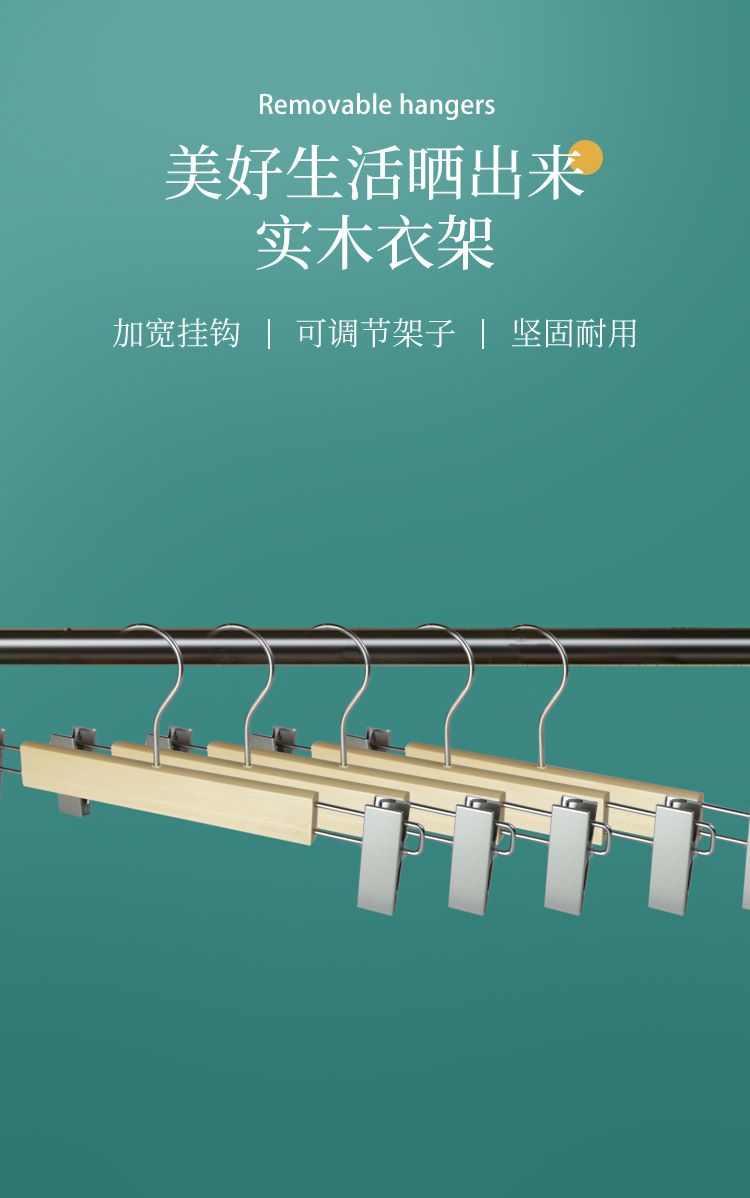 단단한 나무 바지 걸이, 미끄럼 방지 및 흔적 없음, 가정용 다기능 두꺼운 바지 클립, 성인 및 어린이용 나무 바지 클립, 나무 바지 걸이
