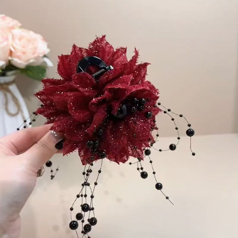 머리 볼륨을 보여주는 태슬 샤크 클립, 다재다능한 밝은 실크 플라워 클립, 새로운 스타일, 새로운 우아한 모자
