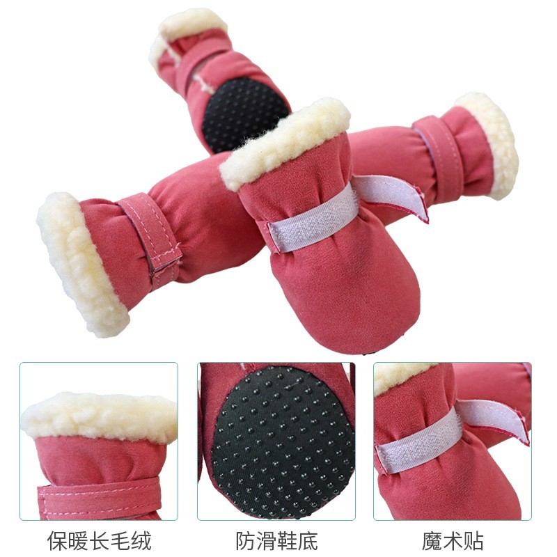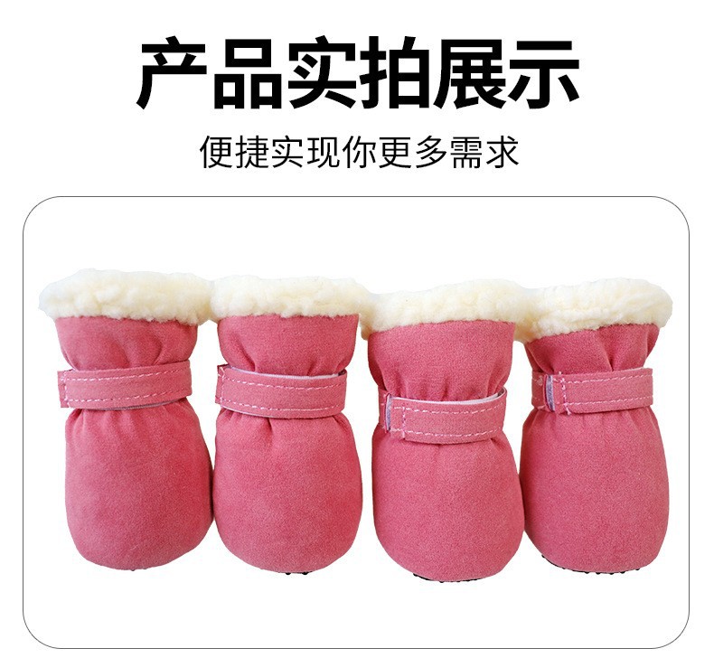 애완 동물 용품 겨울 인기 신발 및 부츠 캔디 컬러 플러스 벨벳 두꺼운 따뜻한 미끄럼 방지 개 신발 제조 업체 현장 도매스토어 가기