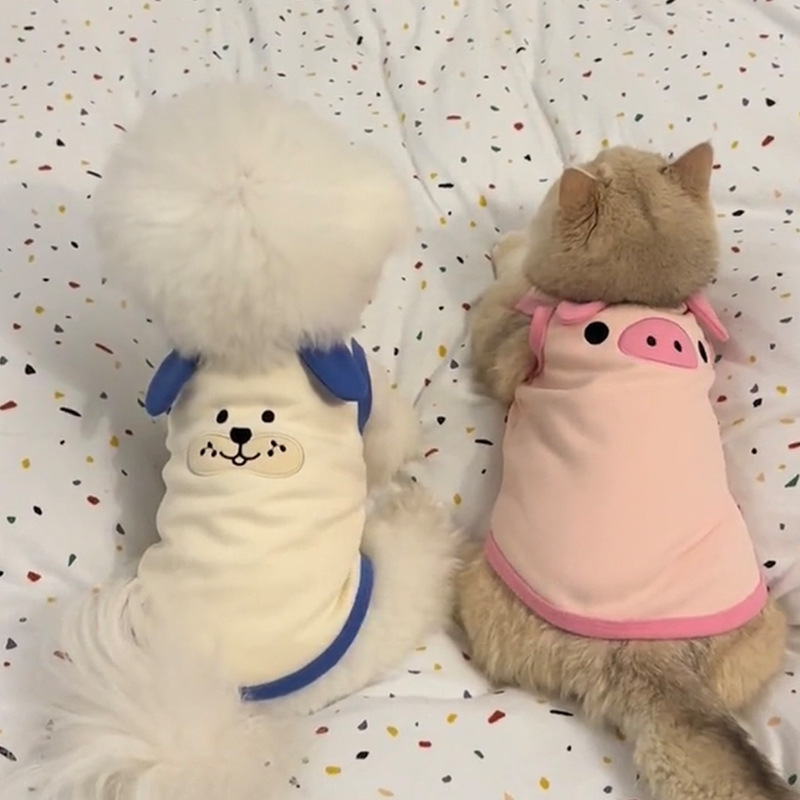 고양이 옷, 봄과 가을 한국식 귀여운 기능 골드 그라데이션 브리티시 쇼트 래그돌 고양이와 개 여름 조끼스토어 가기
