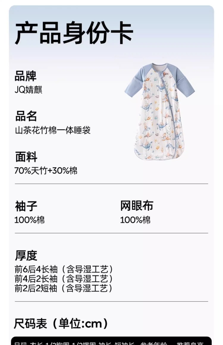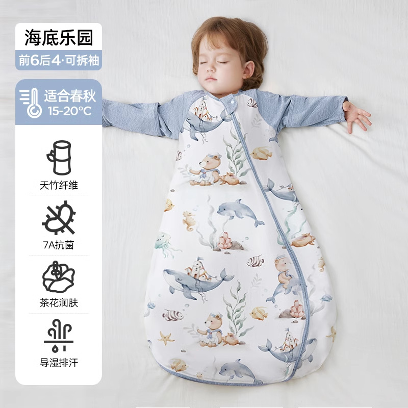 Jing Qi 아기 슬리핑 백 봄과 여름 동백 대나무 코튼 신생아 어린이 슬리핑 백 안티 놀라운 사계절 유니버설스토어 가기