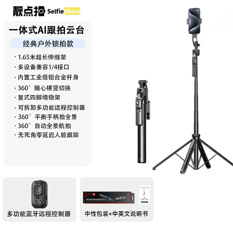 • 【C17-블랙- 1.63m 】테트라포드+블루투스 리모컨+1/4 커넥터+360 ° 회전 클립 + 지능형 추적 + 알루미늄 합금 막대