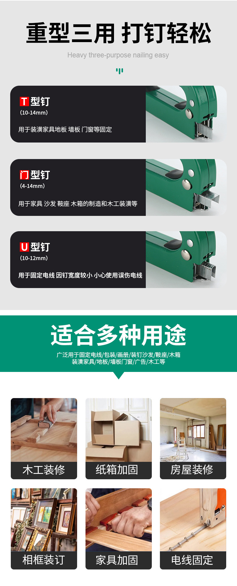 무거운 의무 다기능 네일 건 가정용 목공 수동 네일 건 네일 건 3 대 1 사진 프레임 광고 천 네일 건