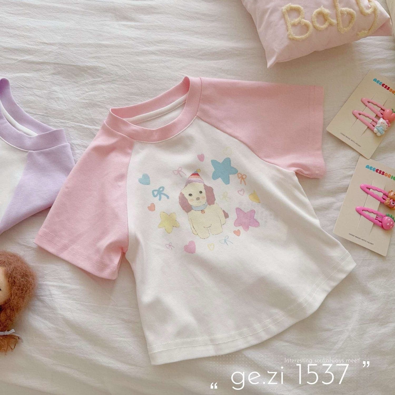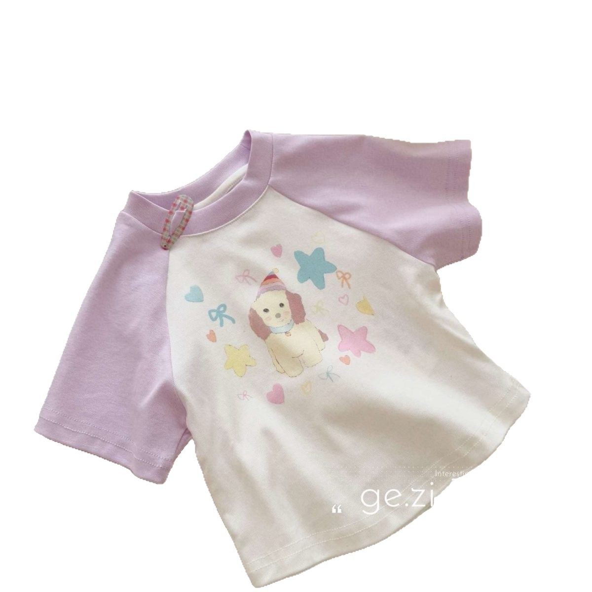 100 코튼 걸스 반팔 티셔츠 만화 만화 패치 워크 어린이 아기의 올 매치 탑 느슨한 여름 원피스스토어 가기
