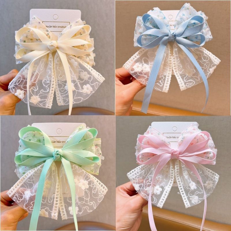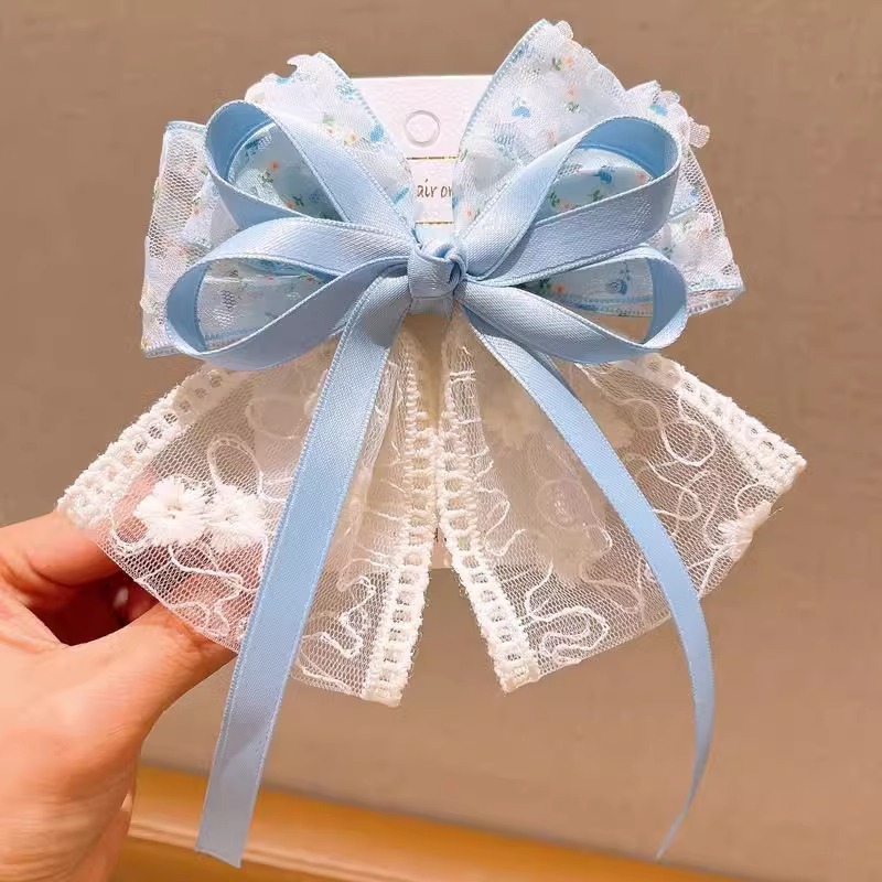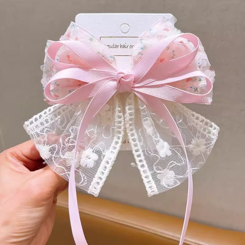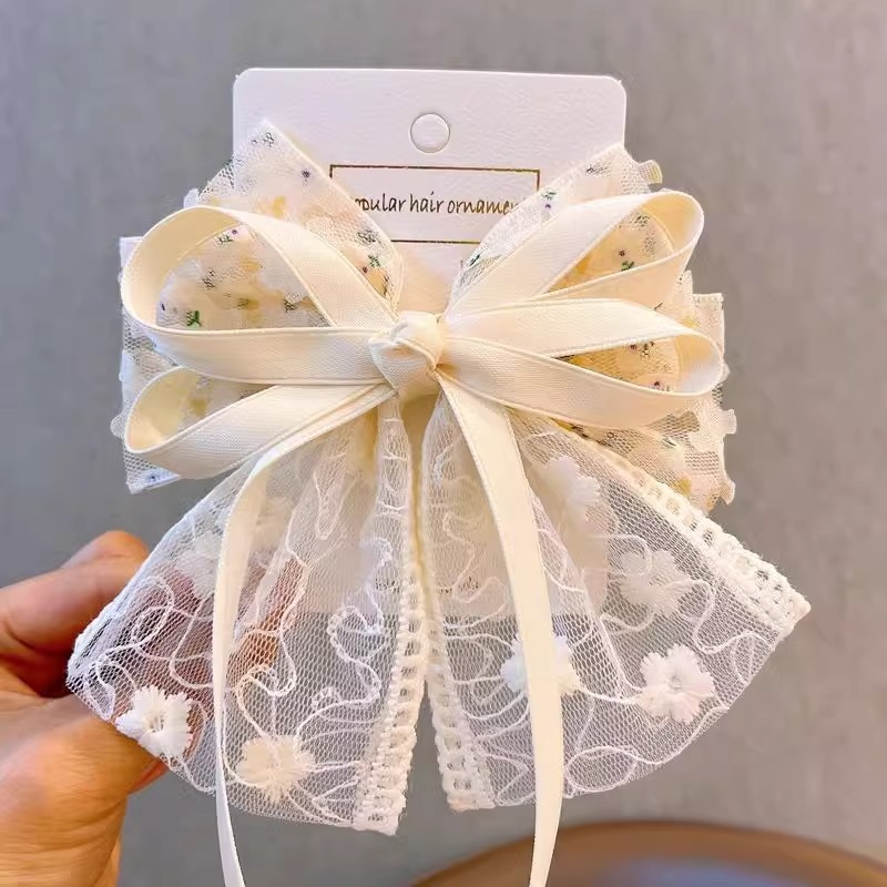 어린이 헤어 액세서리 한국 화이트 레이스 리본 활 헤어핀 걸스 우아한 탑 클립 어린 소녀 헤어핀 헤드웨어