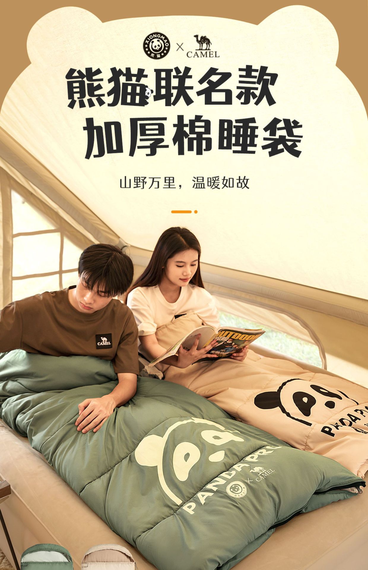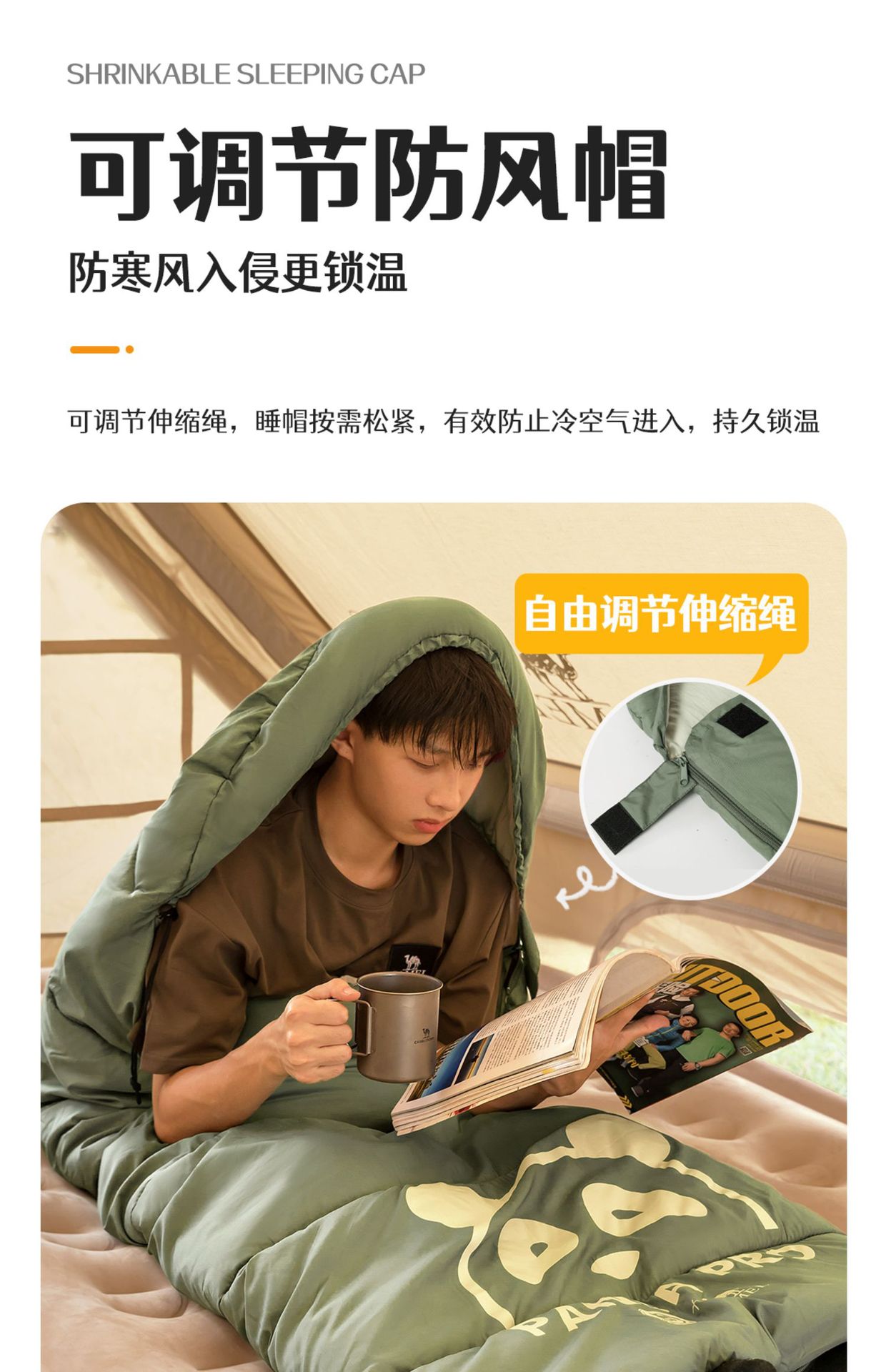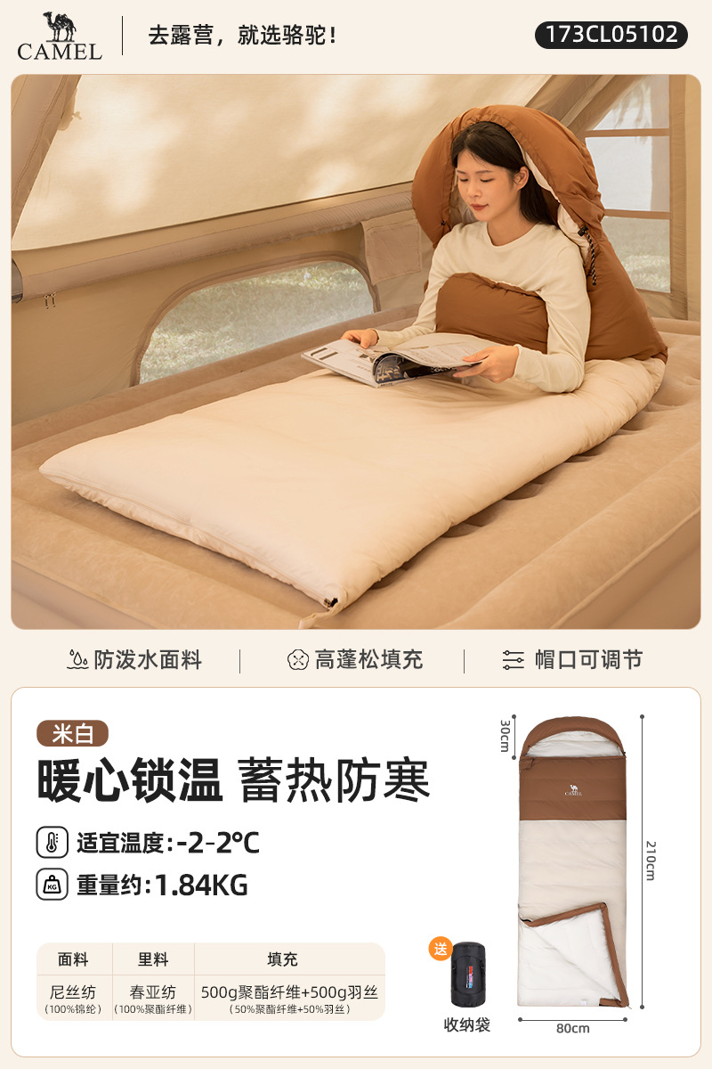 겨울철 두꺼워서 추위와 따뜻함을 유지하는 카멜 성인용 침낭, 야외 캠핑용 오피스 낮잠 침낭
