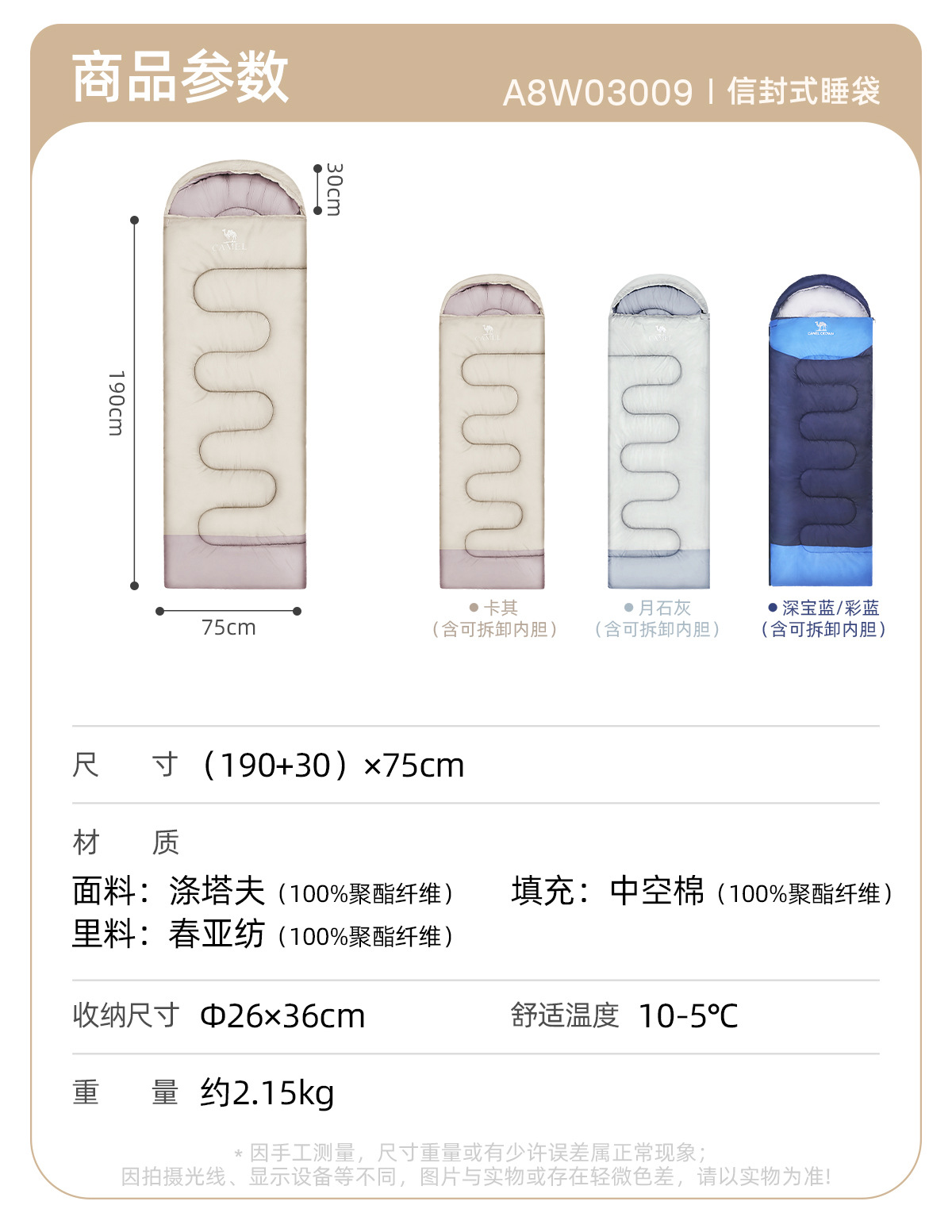 • 두껍고 따뜻한 2.15kg 카키라이트