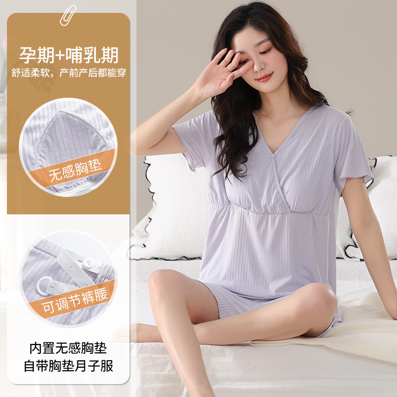 5050 모달 산후복 반팔반바지 수유복 수유복 브라프리 임산부 티셔츠 산후
